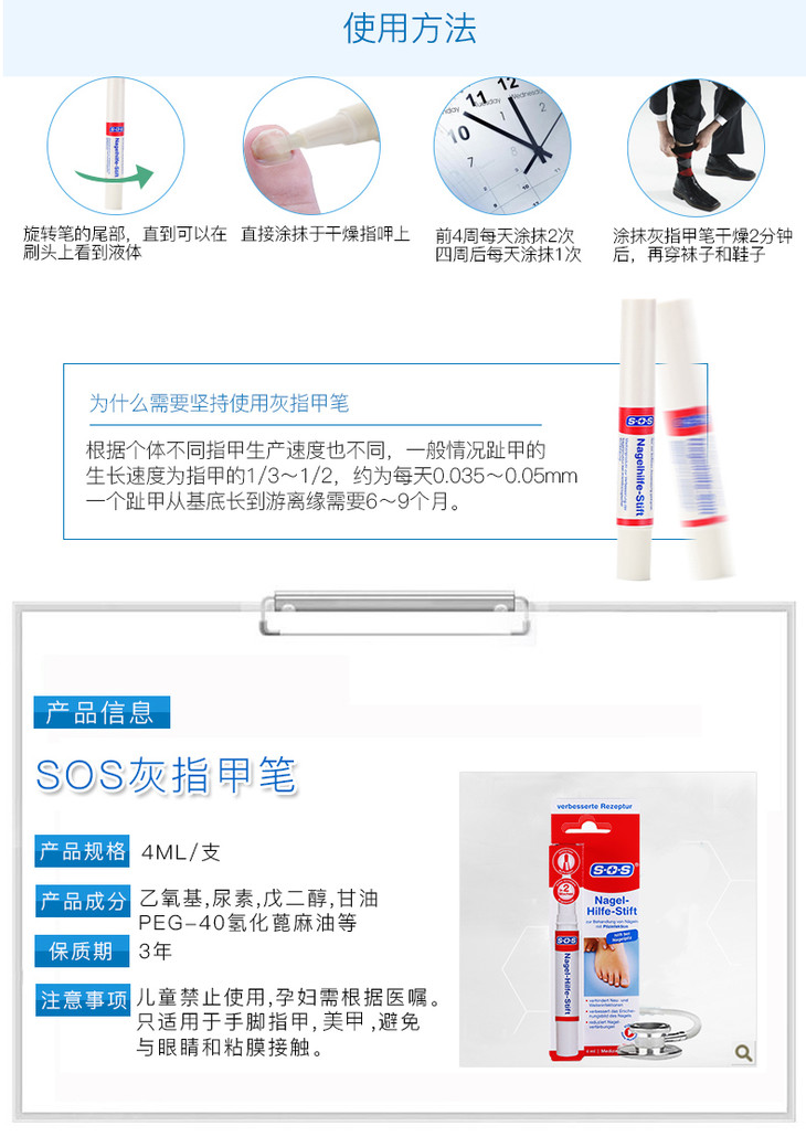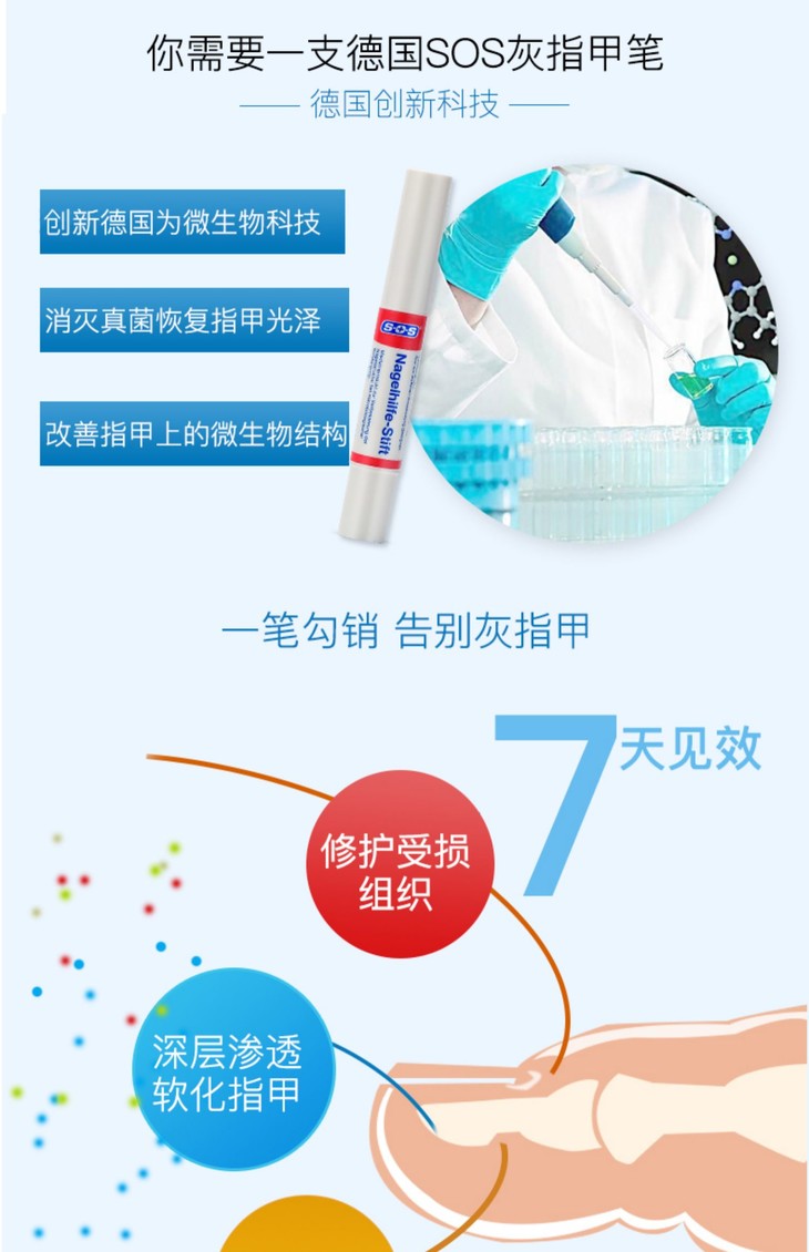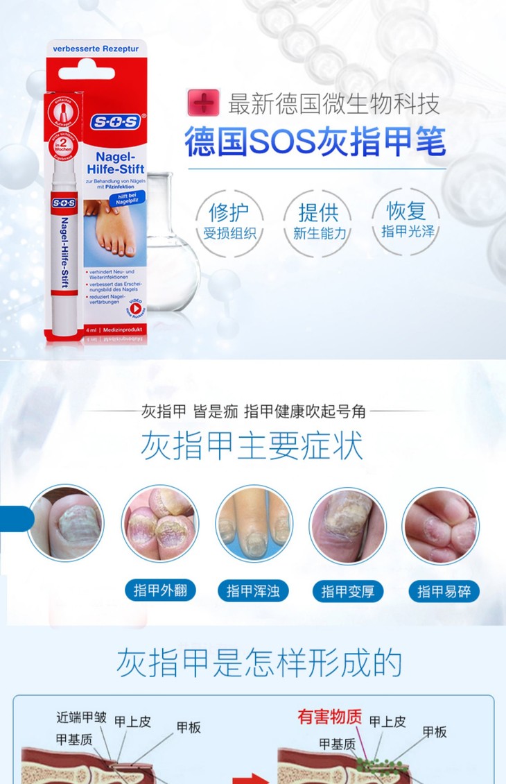 【德国SOS灰指甲笔】德国微生物科技,修护受损组织,恢复指甲光泽