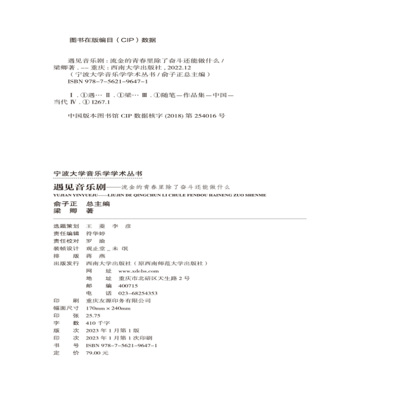 *书名:遇见音乐剧——流金的青春里除了奋斗还能做什么 | *ISBN:978-7-5621-9647-1 |