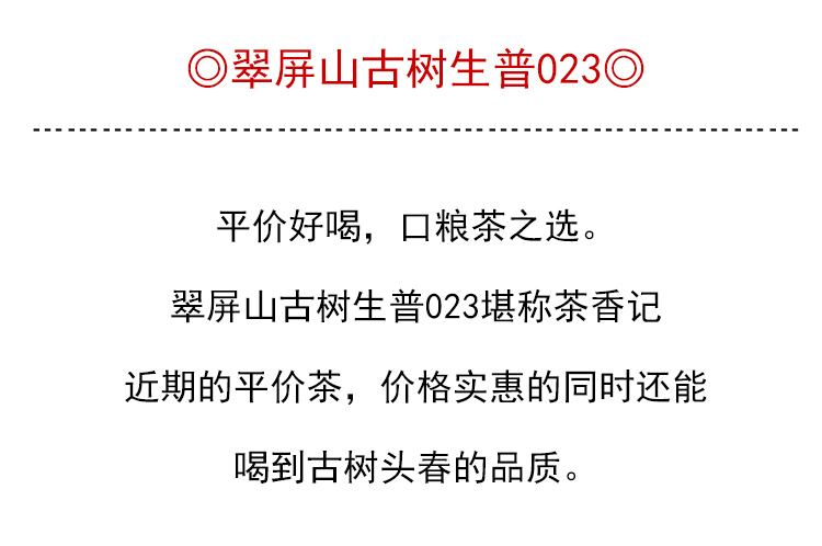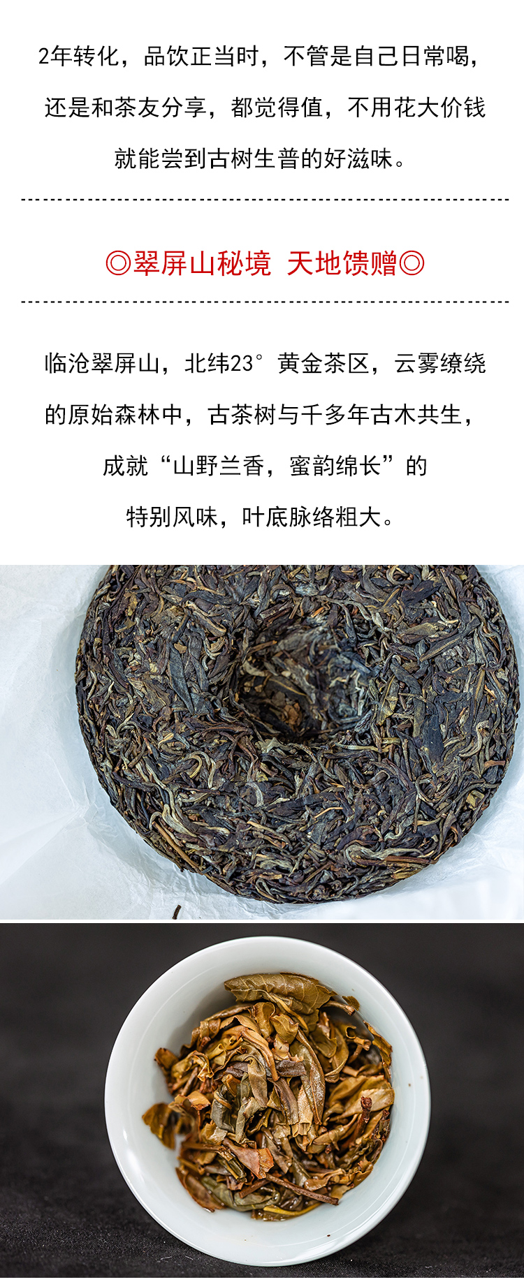 茶香记翠屏山古树生普023普洱茶古树头春实惠平价香甜顺滑品质稳定