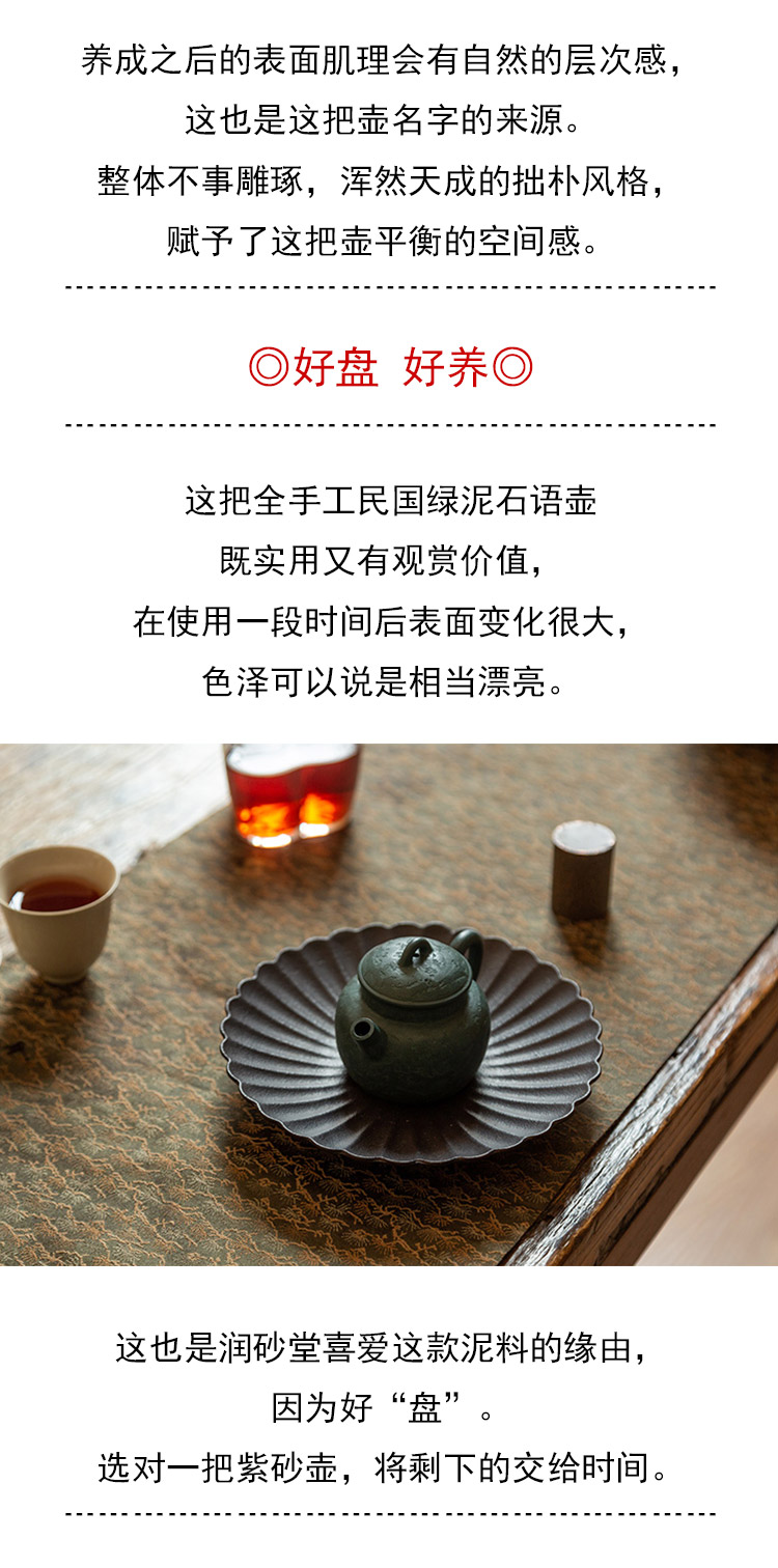 茶香记 紫砂壶 全手工民国绿泥 石语壶 民国绿泥 全手工制作 好盘好养 经典器型