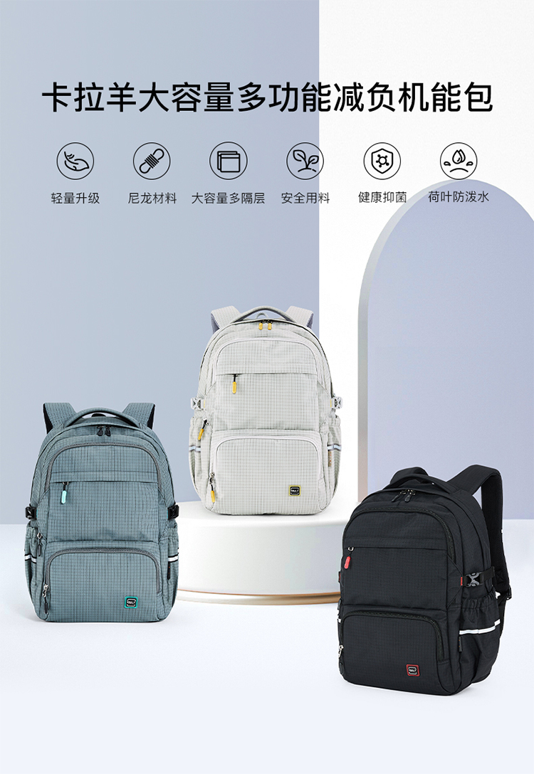 卡拉羊大学中学生减负书包电脑背包轻便双肩包格调CX5497+CX5496