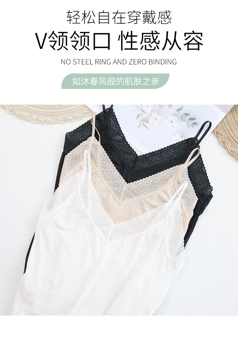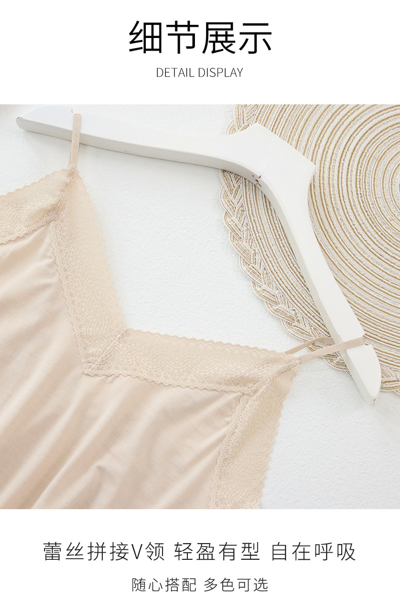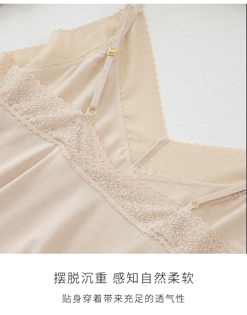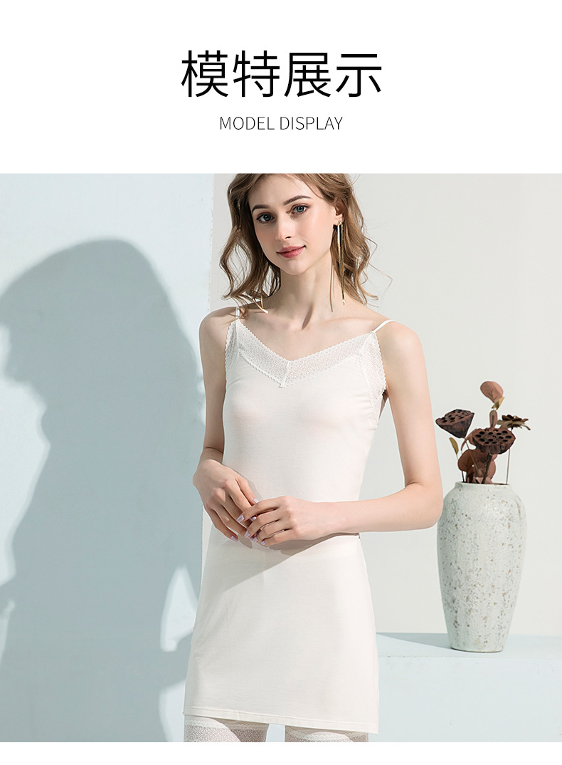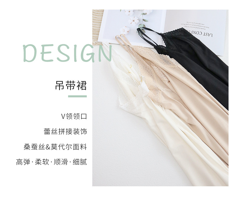 TG-TG03S187 真丝莫代尔吊带裙 蕾丝V领桑蚕丝宽松打底裙睡裙弹力长款