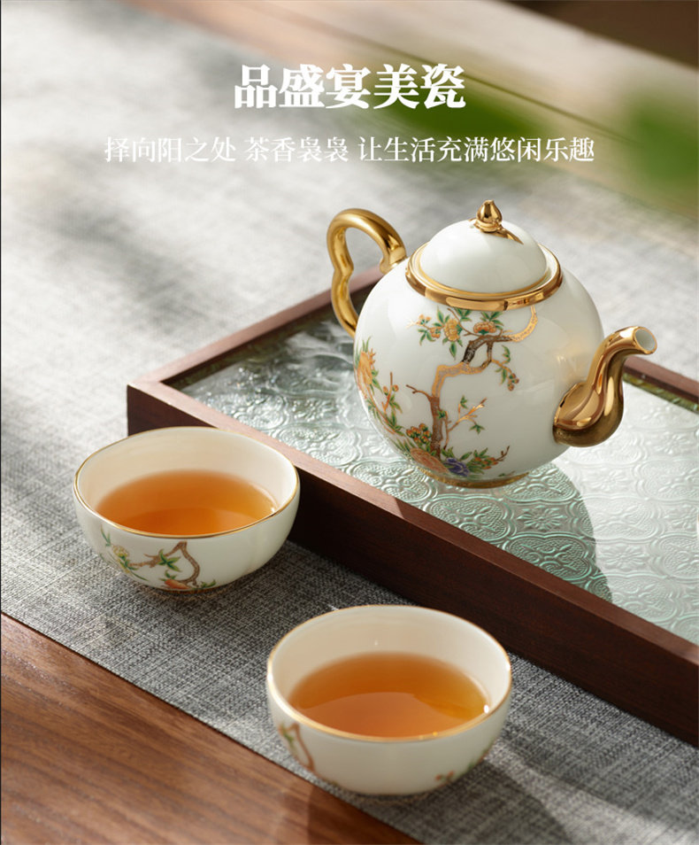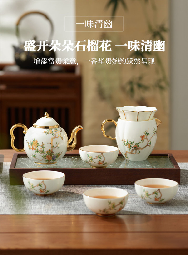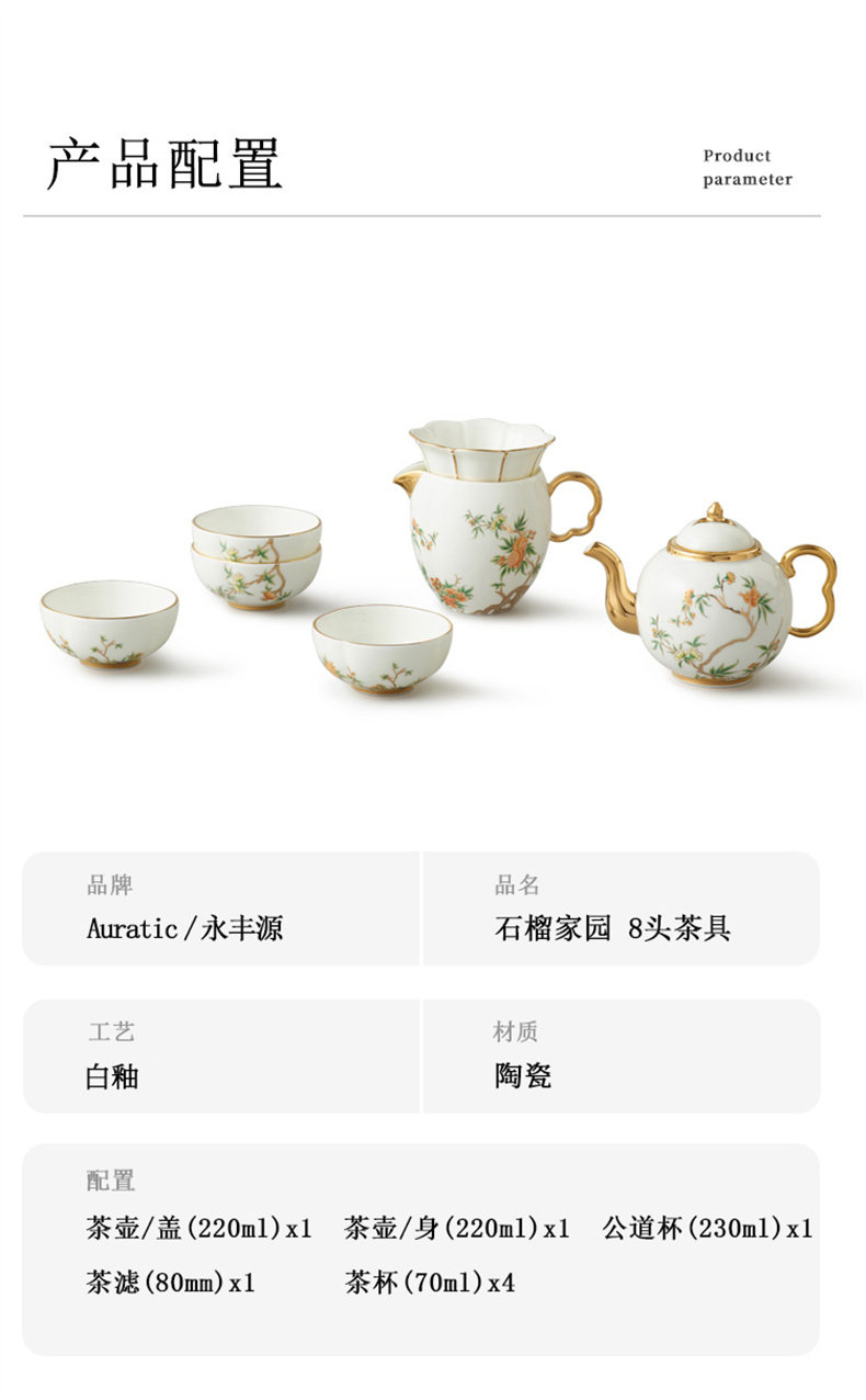 【彼达思】永丰源夫人瓷石榴家园8头茶具4人位 茶礼高端轻奢商务送礼家居自用下午茶礼盒