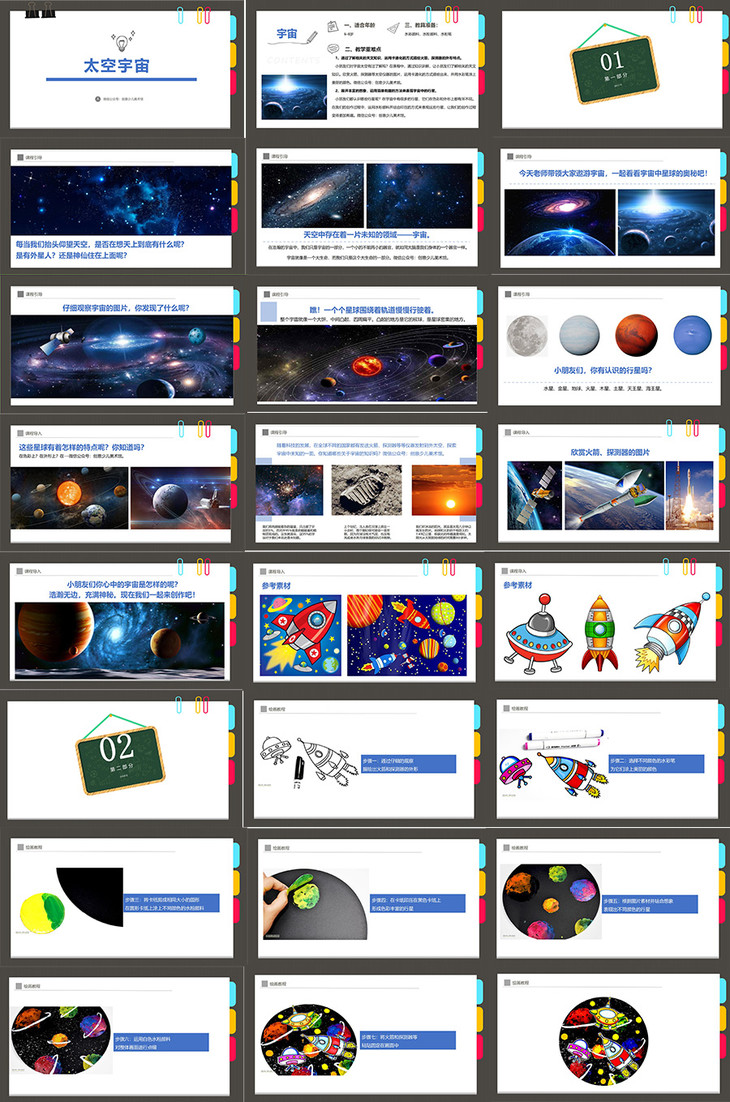 2、展开丰富的想象,运用简单有趣的方法来表现宇宙中的行星。
