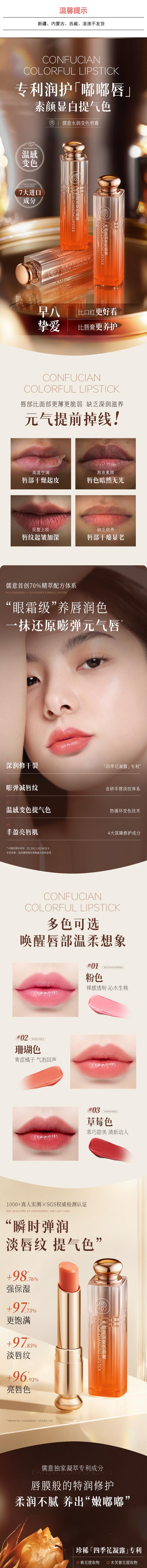 儒意 水润变色唇膏(03草莓色)3.2g 6974232269471
