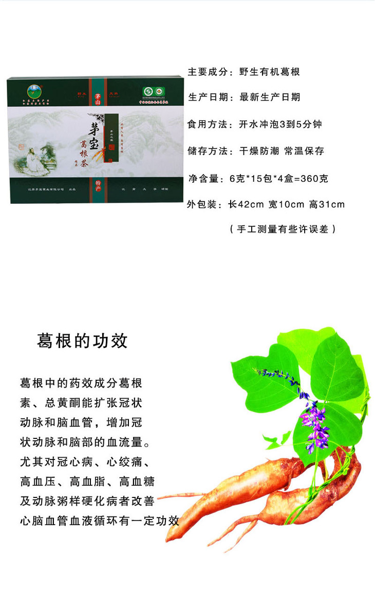 茅宝葛根茶 茅山特产 野生天然葛根茶 葛根丁 360g 礼盒装 精品 包邮