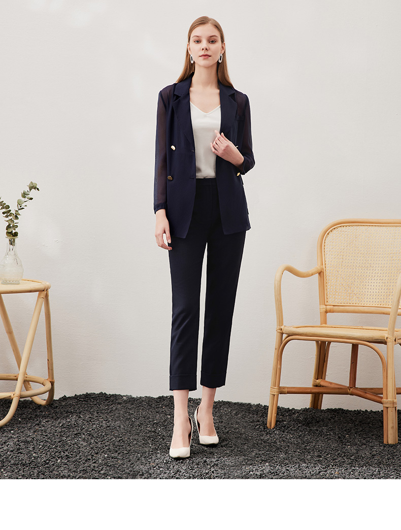 VIMAGE纬漫纪秋款气质翻领双排扣风衣外套女短款时尚经典VA2104109