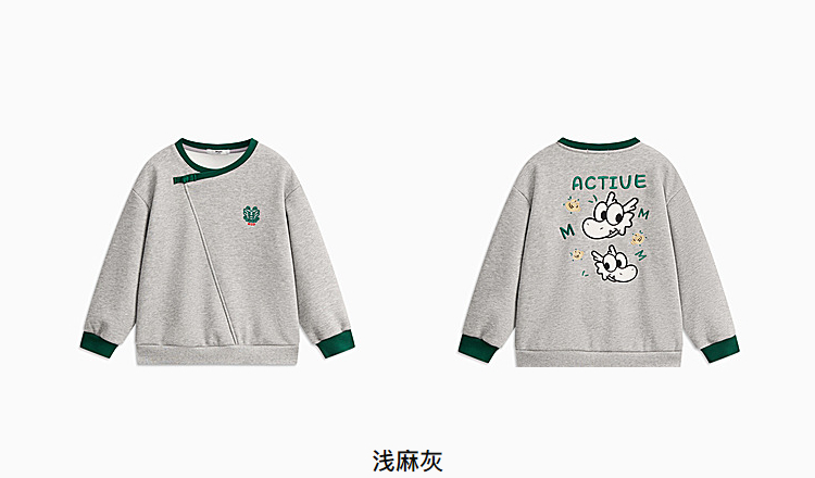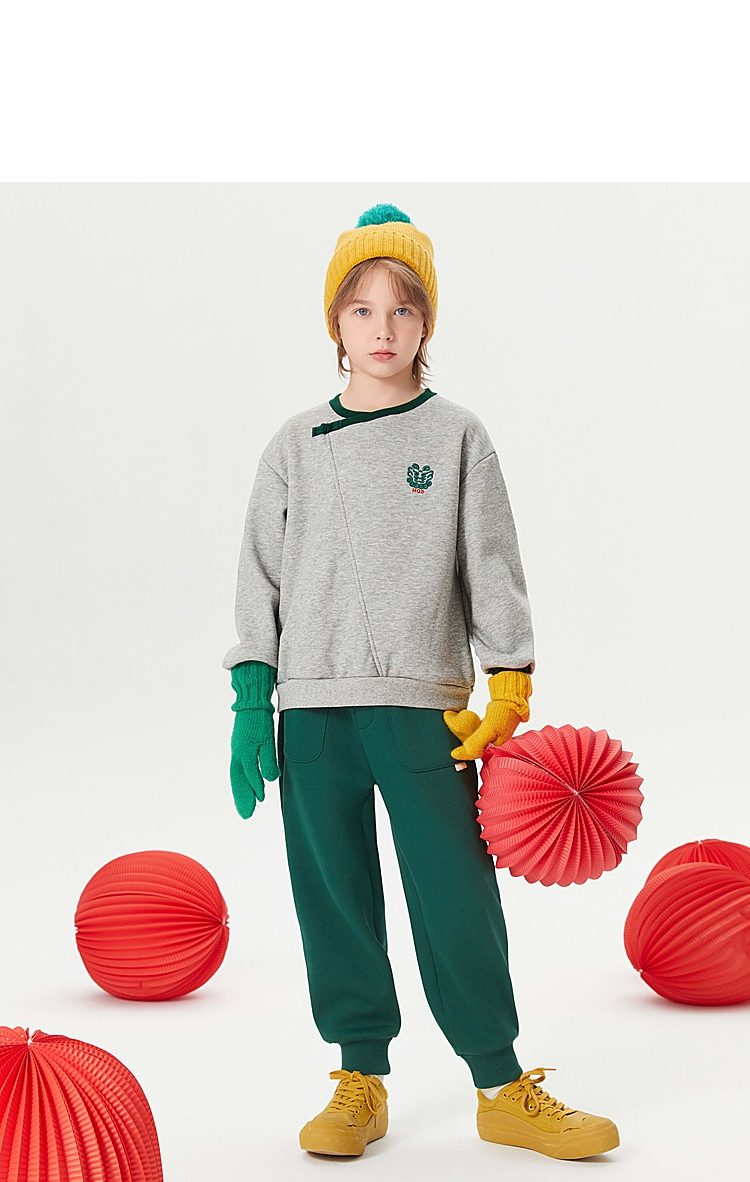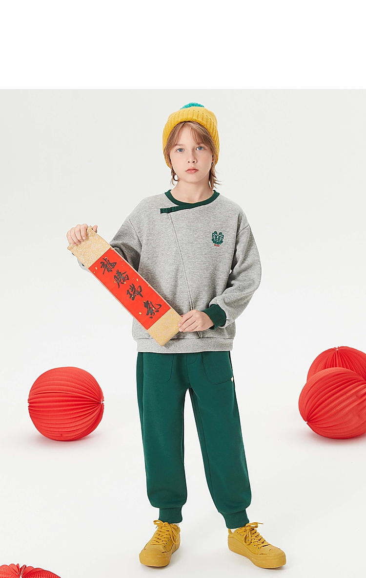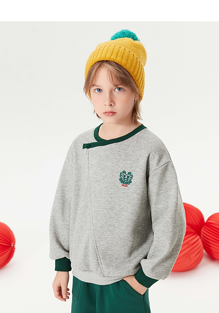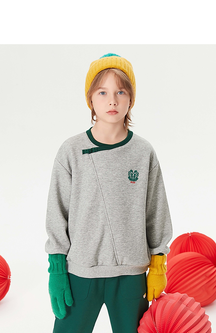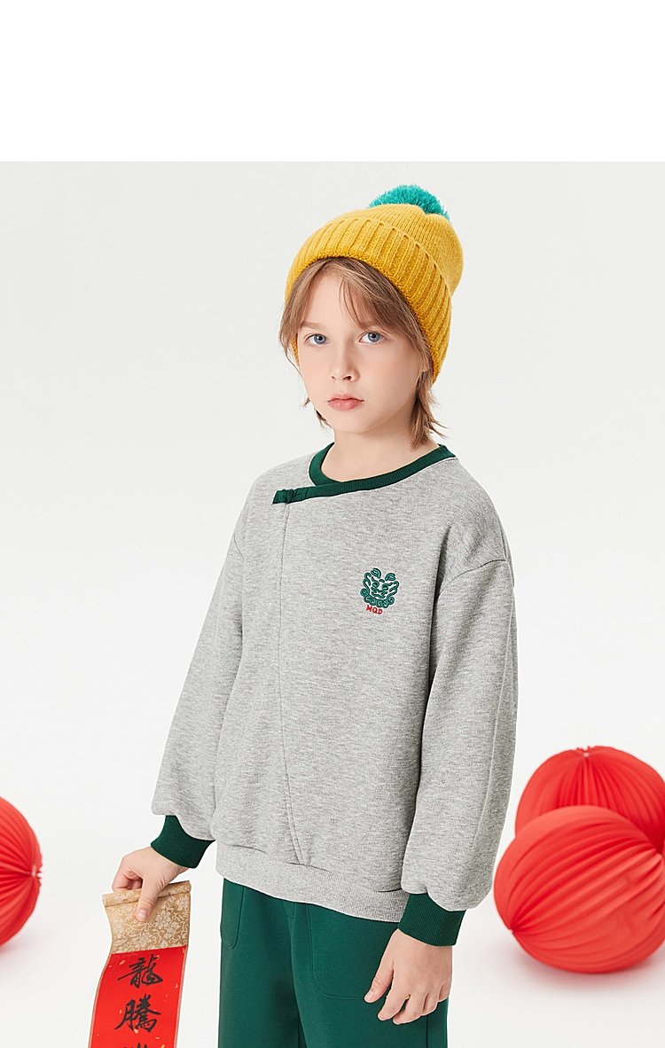 【MQD】【新中式】童装男大童冬新款撞色贴布绣加绒卫衣