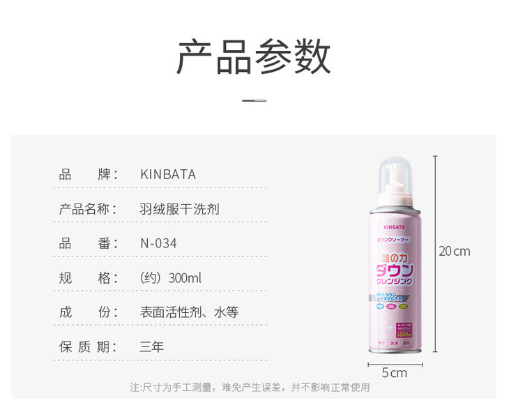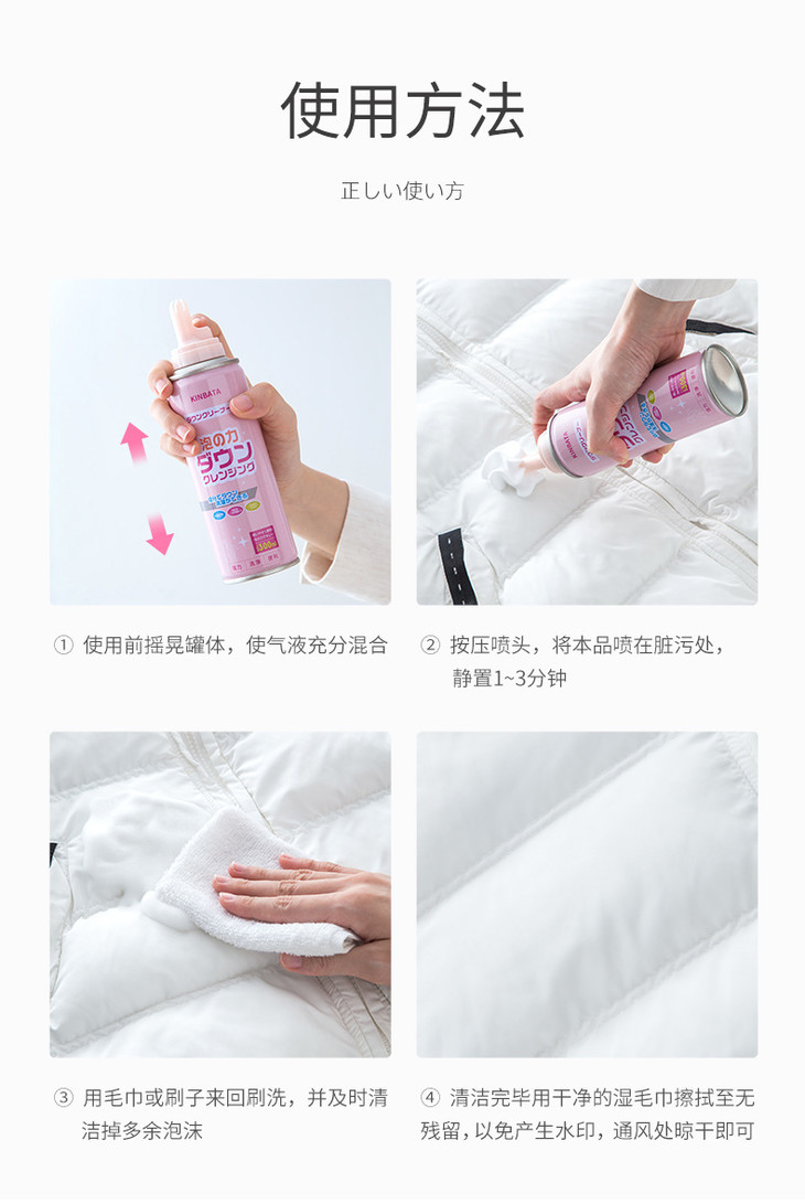 【2瓶装】日本KINBATA羽绒服干洗剂 免水洗家用清洗喷雾免洗去污渍清洁油渍