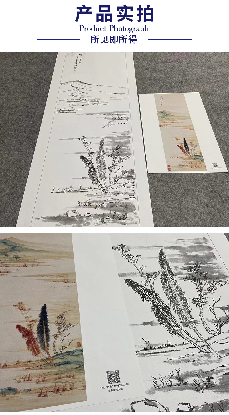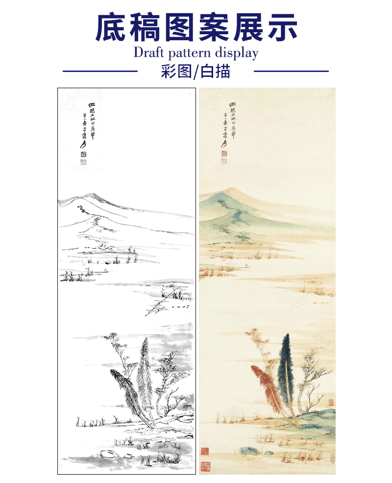 张大千竖幅工笔山水白描底稿-QD17