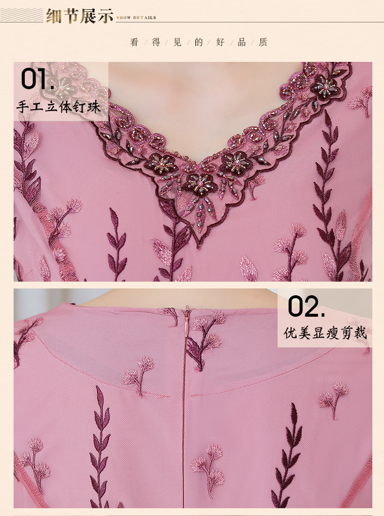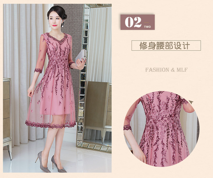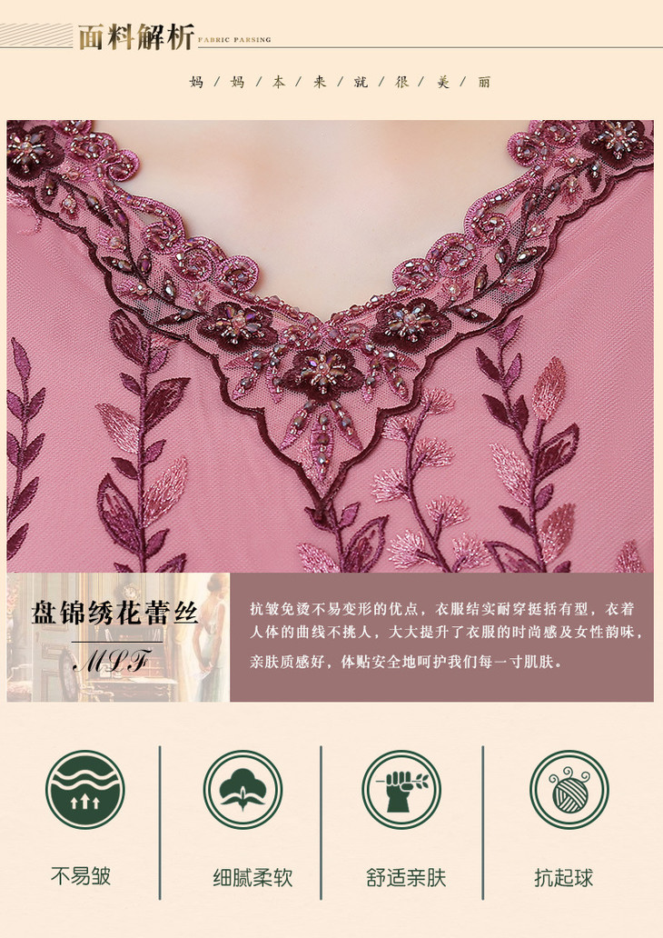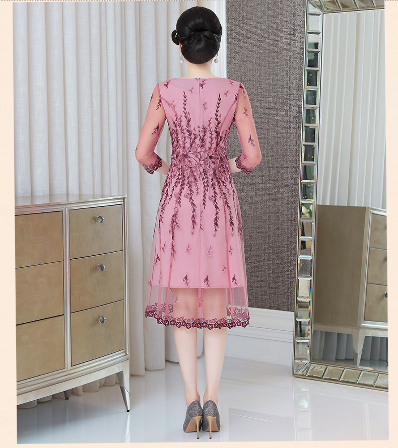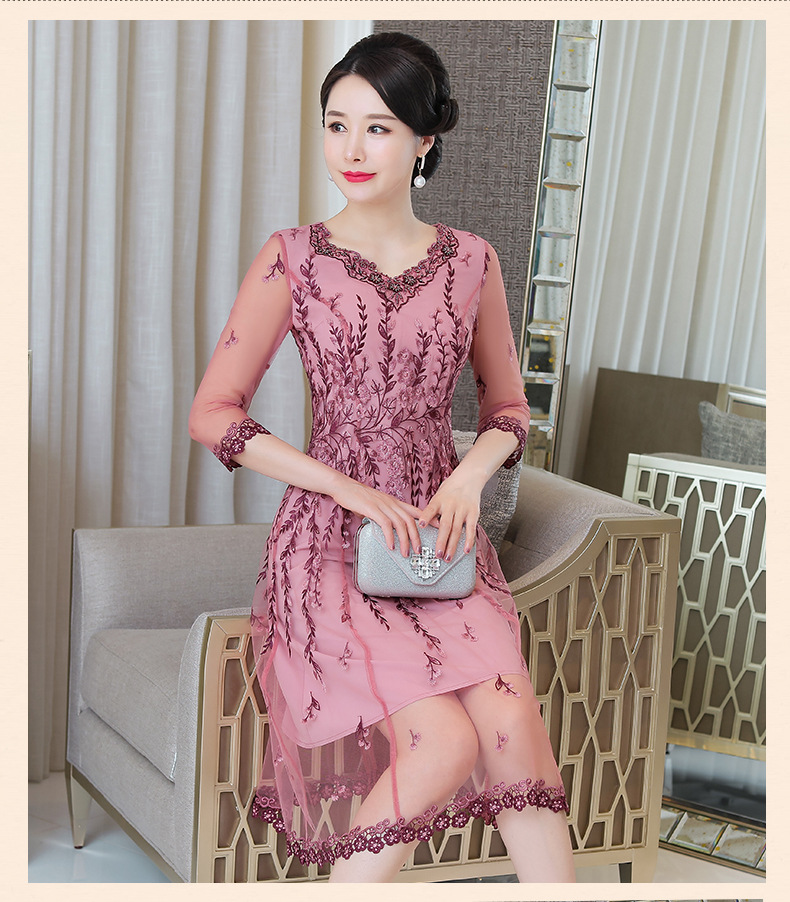 MLY-60805A初秋婚宴高贵中式绣品蕾丝七分袖连衣裙