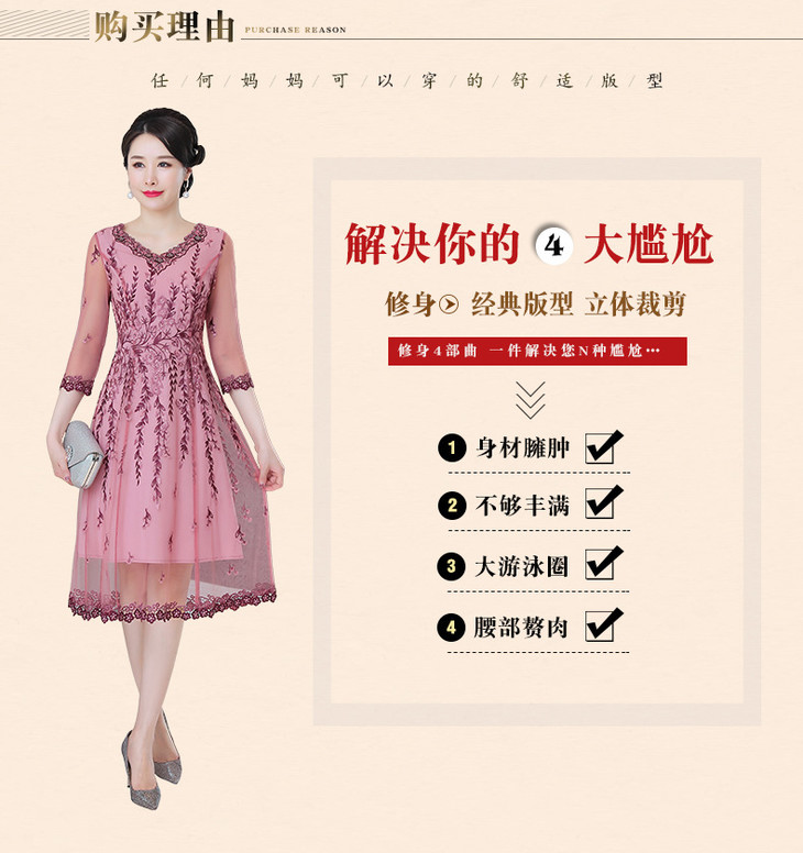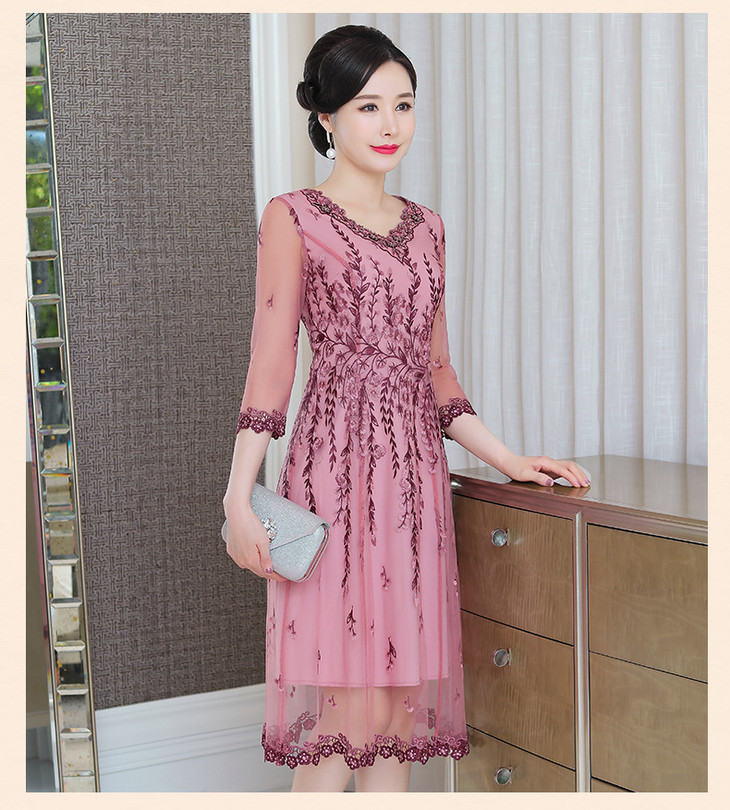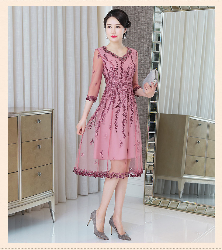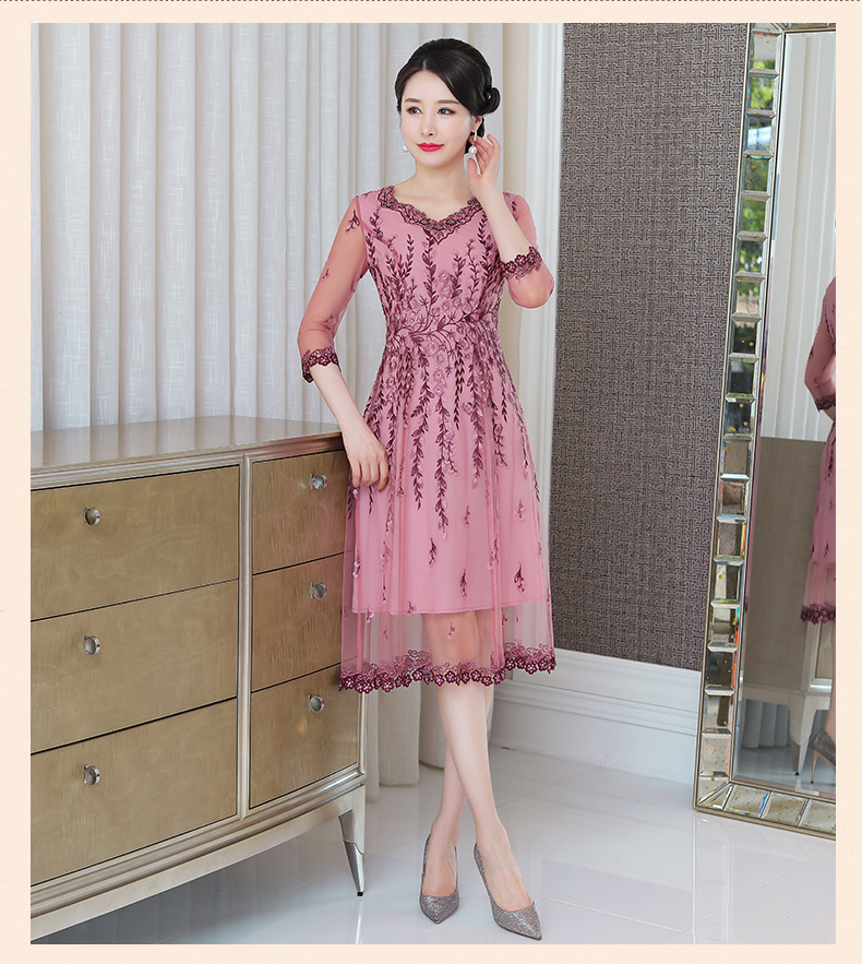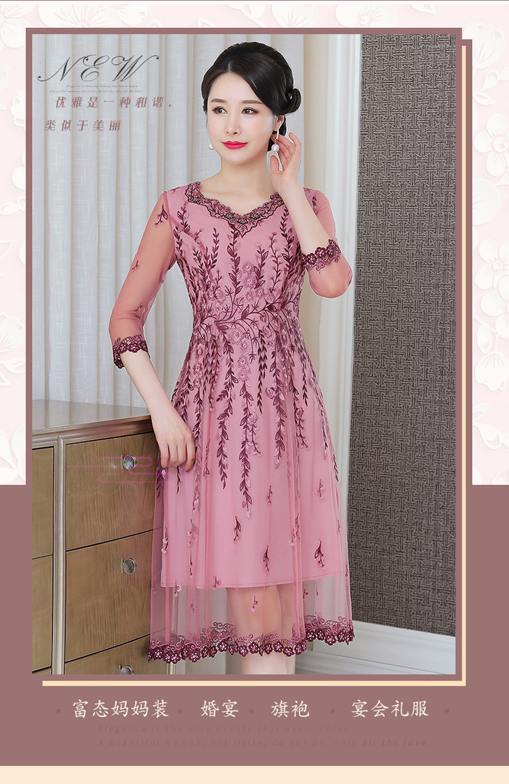 MLY-60805A初秋婚宴高贵中式绣品蕾丝七分袖连衣裙
