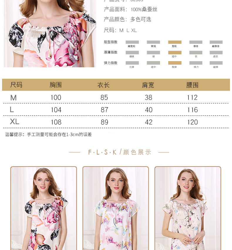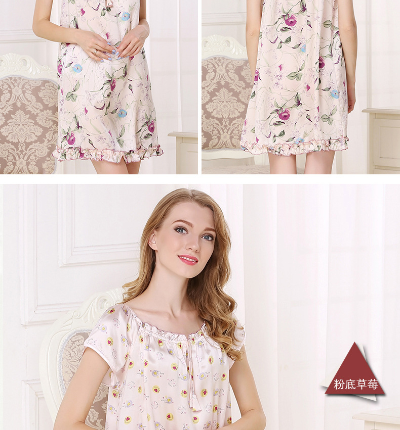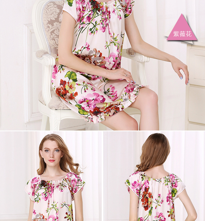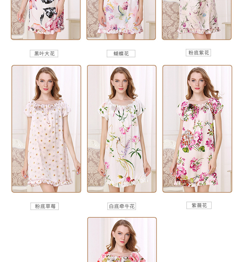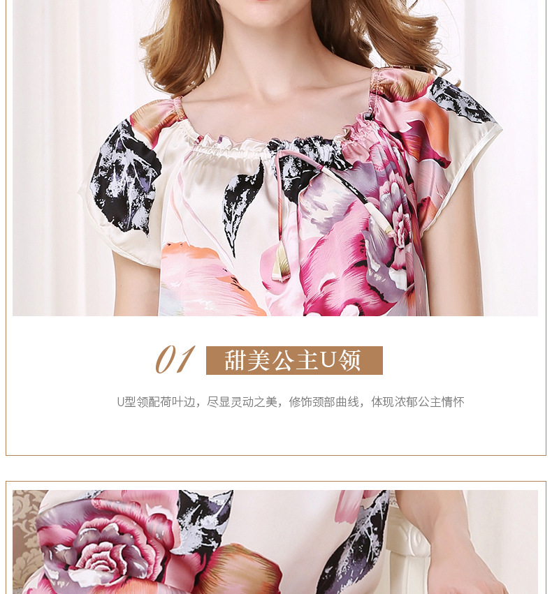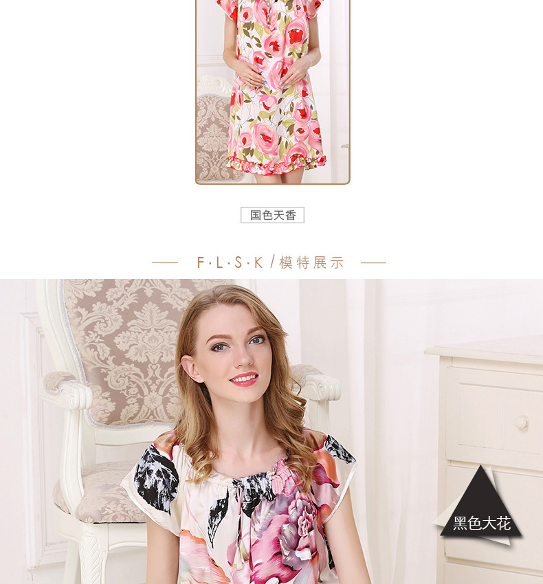 SK-S2509真丝睡衣女夏短袖桑蚕丝睡裙中裙大码宽松丝绸家居服S2509
