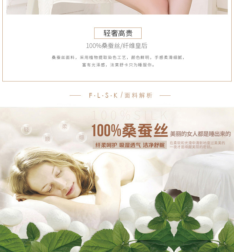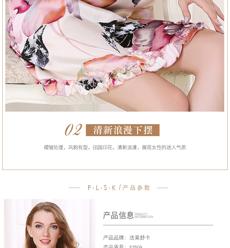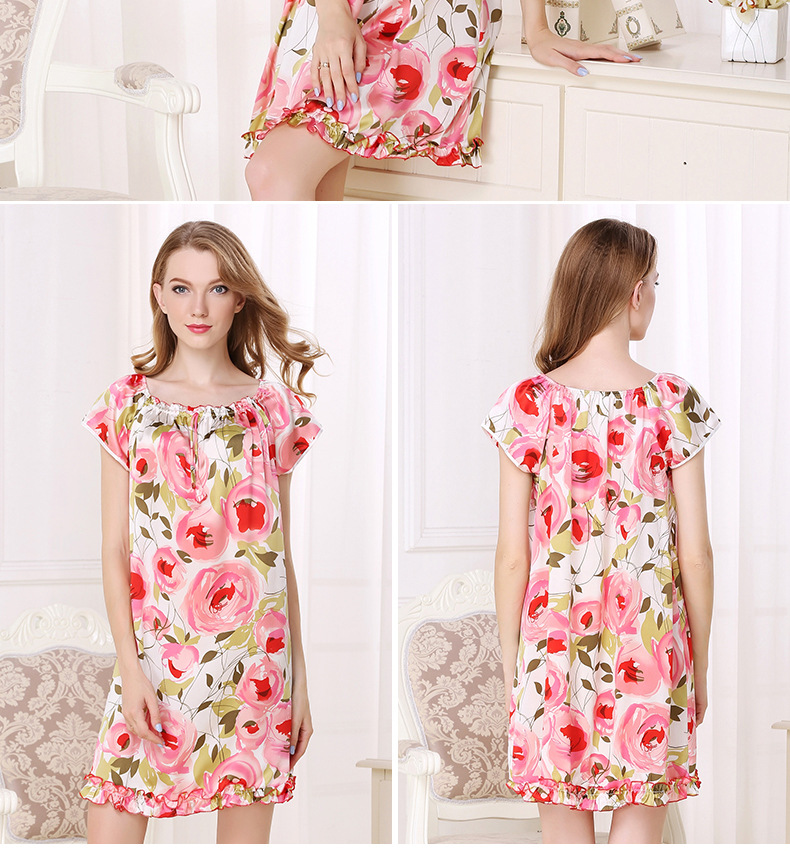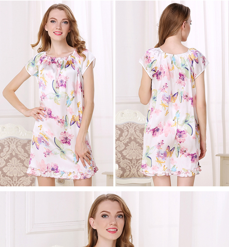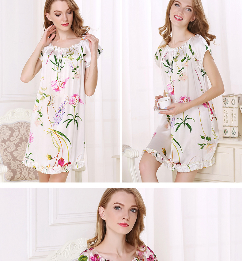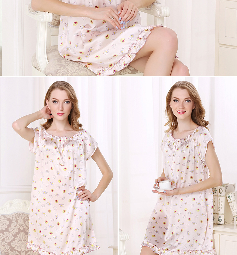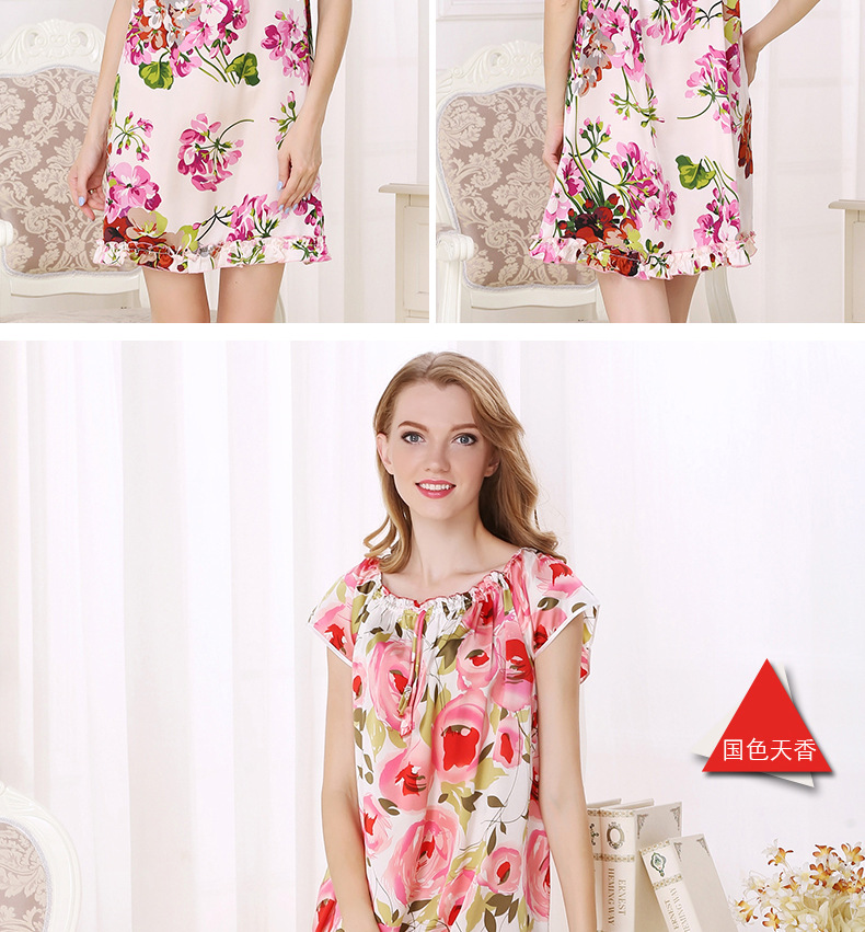 SK-S2509真丝睡衣女夏短袖桑蚕丝睡裙中裙大码宽松丝绸家居服S2509