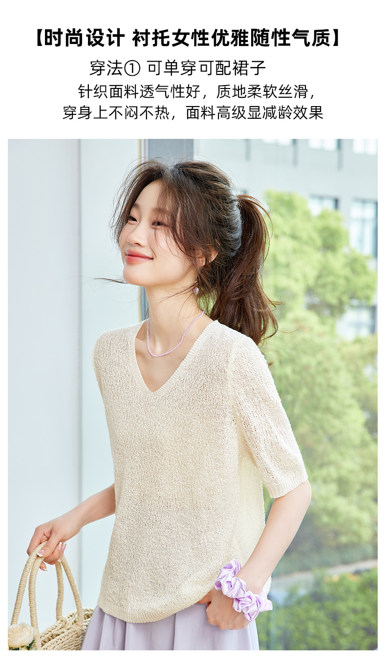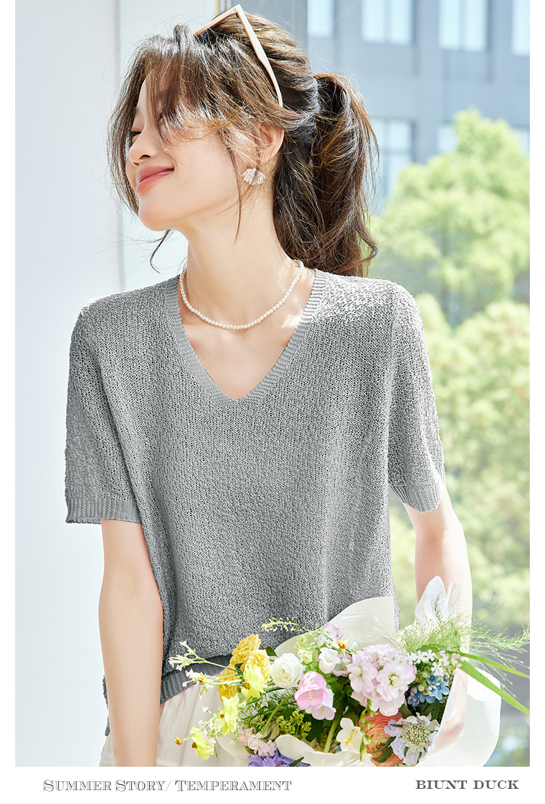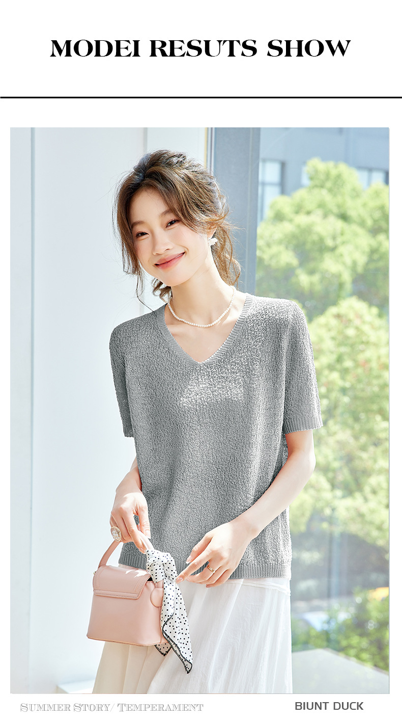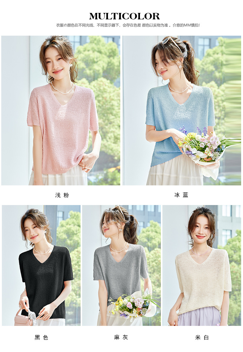 CC-SD7060 v领冰丝短袖t恤女夏季宽松配裙子港风针织衫正肩体恤上衣薄