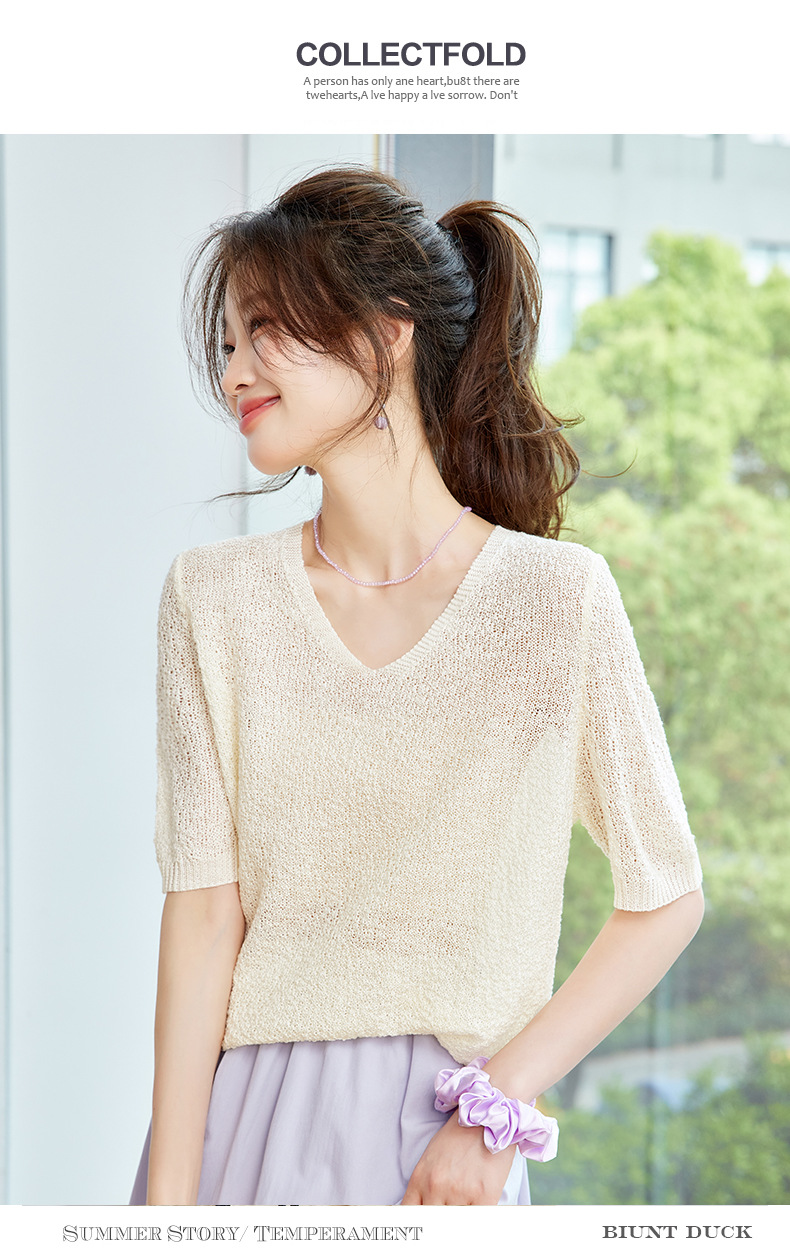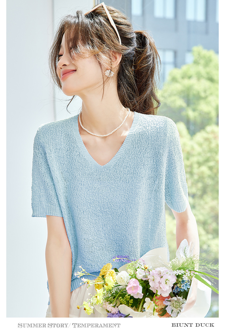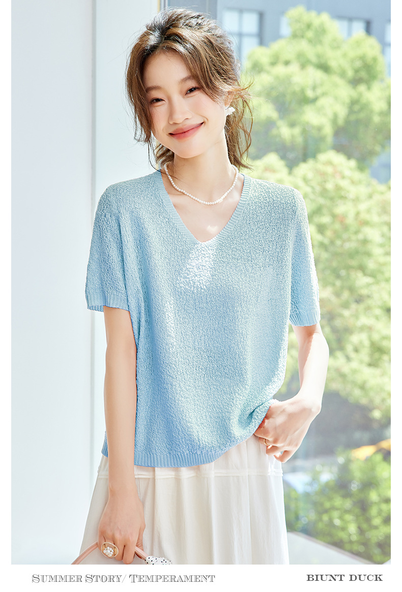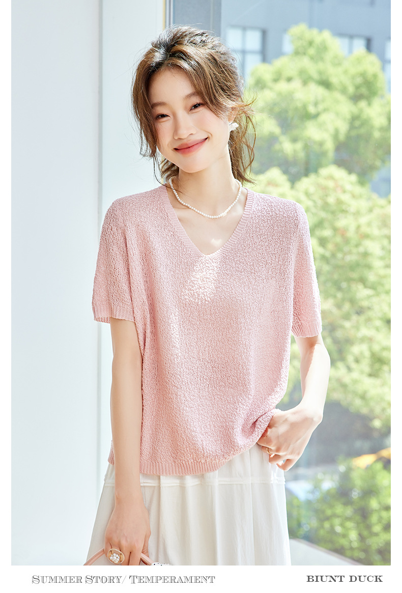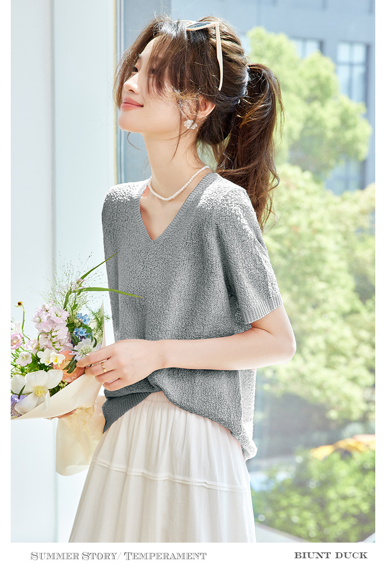 CC-SD7060 v领冰丝短袖t恤女夏季宽松配裙子港风针织衫正肩体恤上衣薄