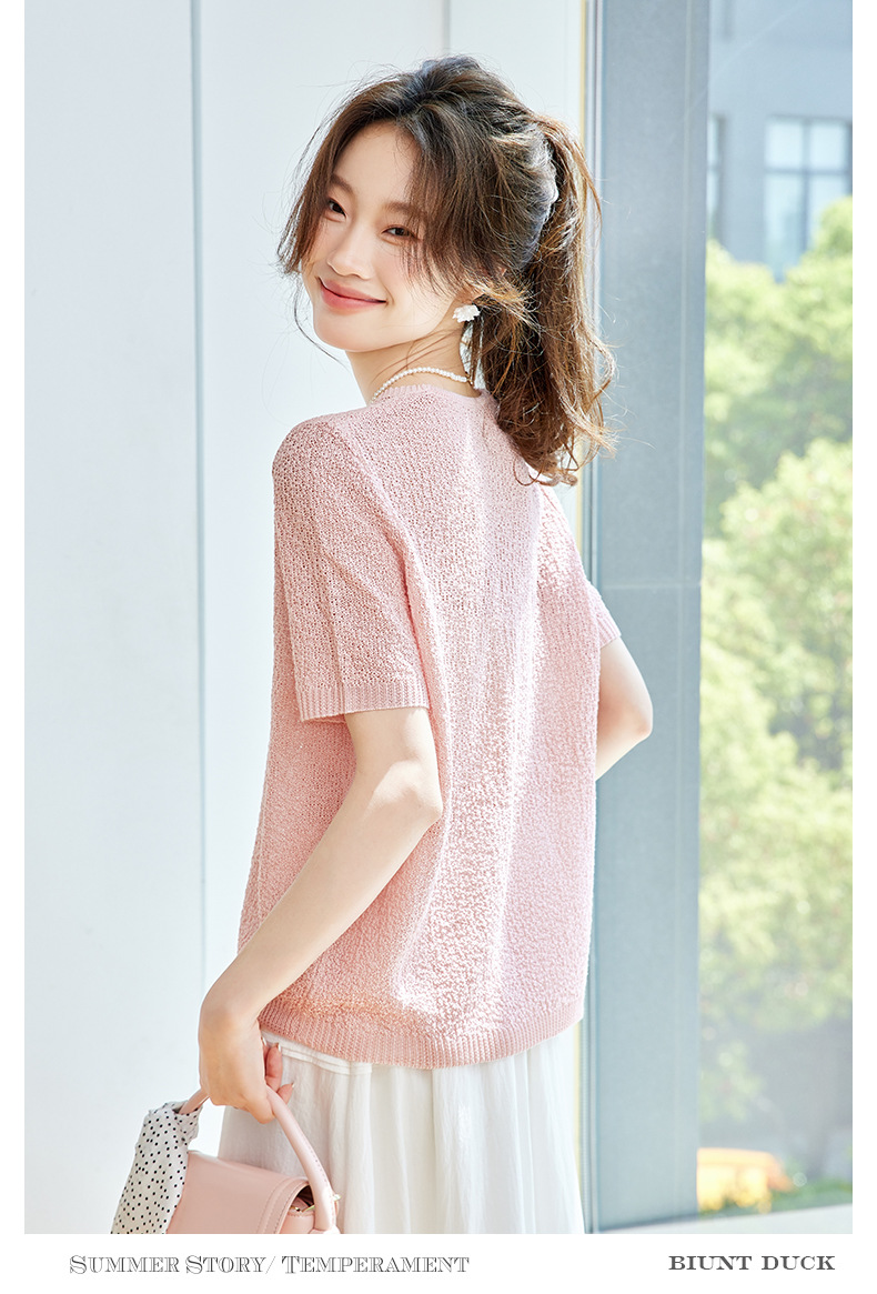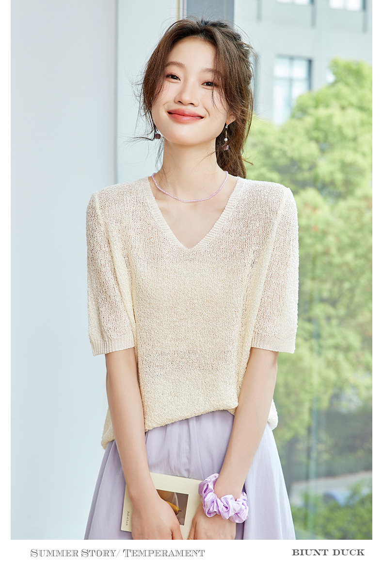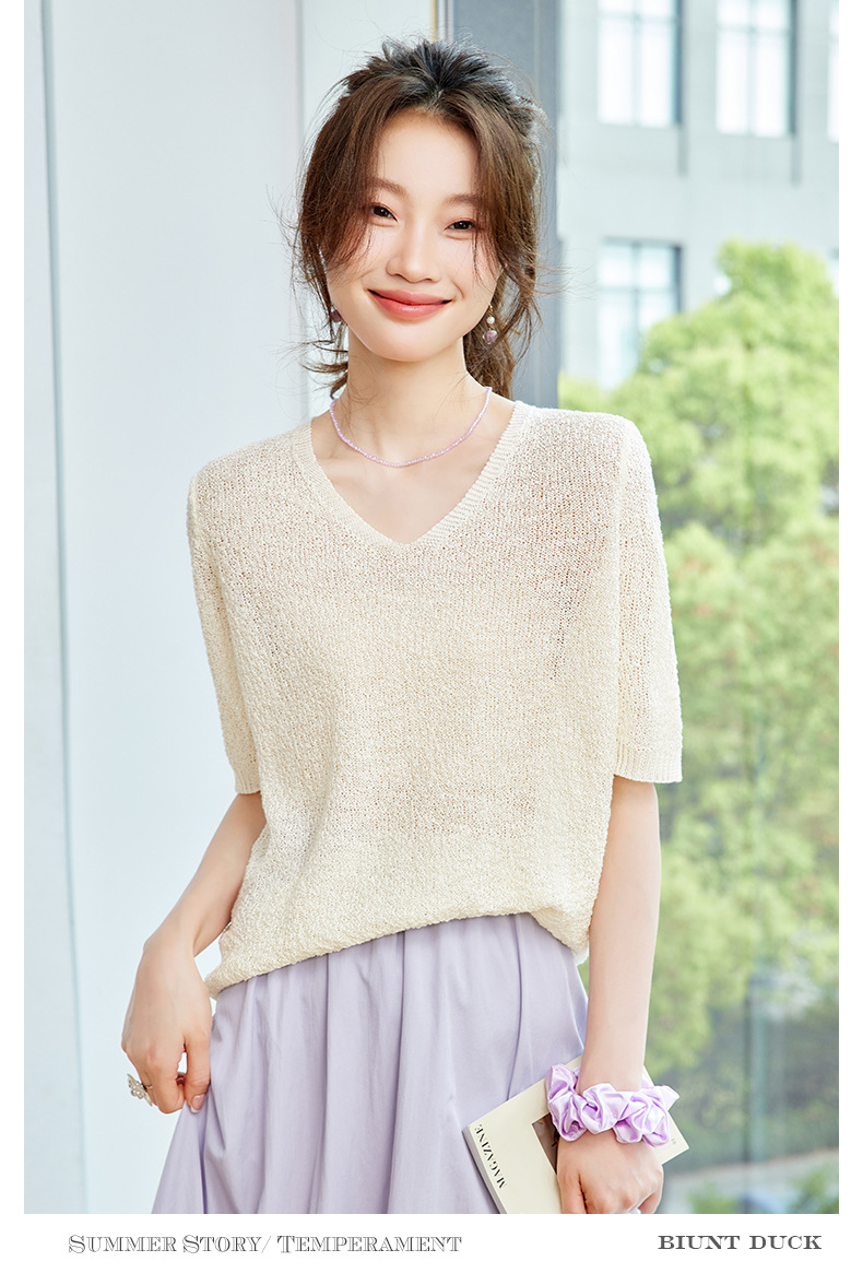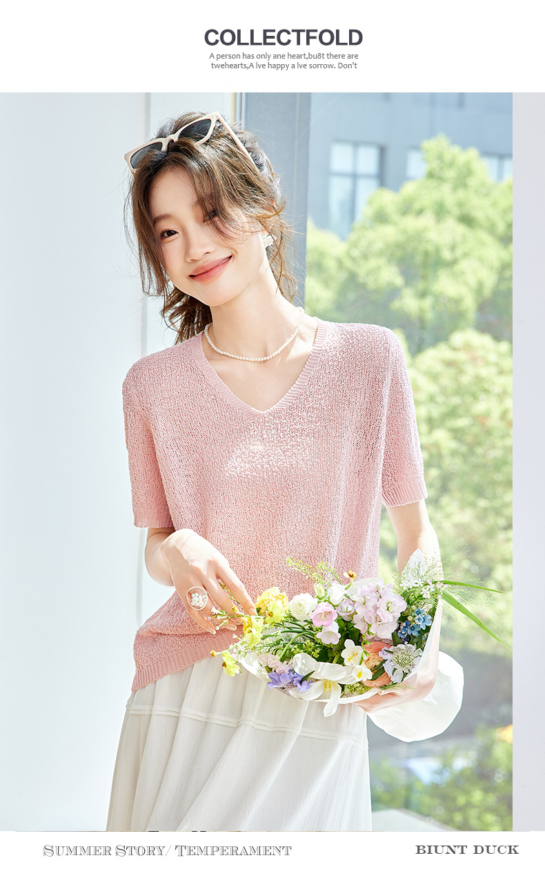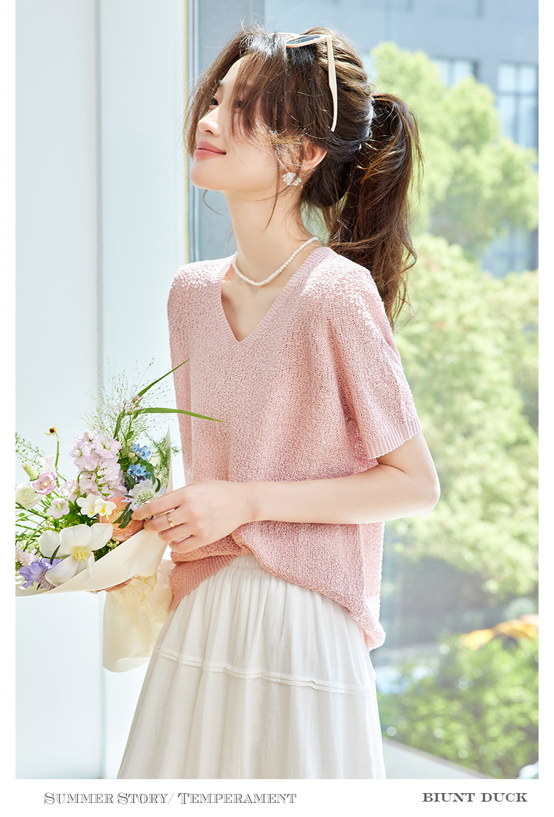 CC-SD7060 v领冰丝短袖t恤女夏季宽松配裙子港风针织衫正肩体恤上衣薄