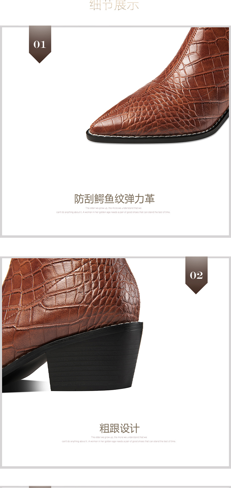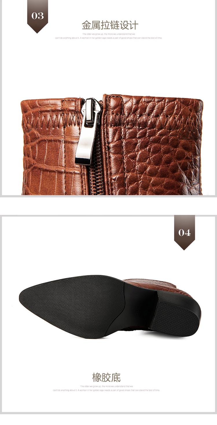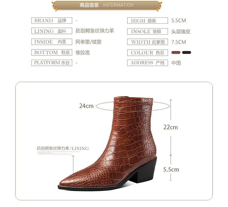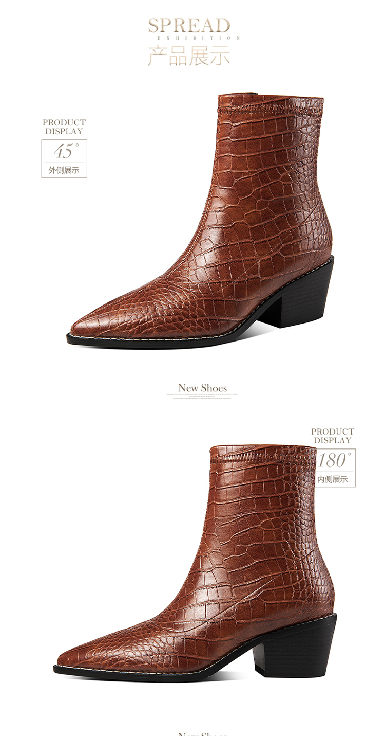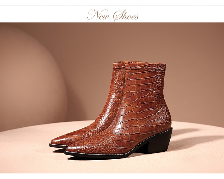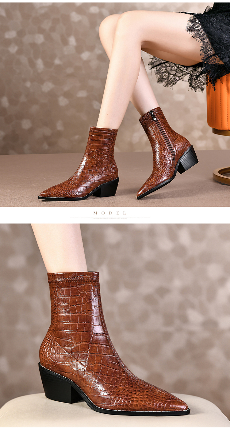 TJXY-XF8316C 秋季新款鳄鱼纹尖头粗跟中跟靴侧拉链时尚短筒气质百搭时装靴