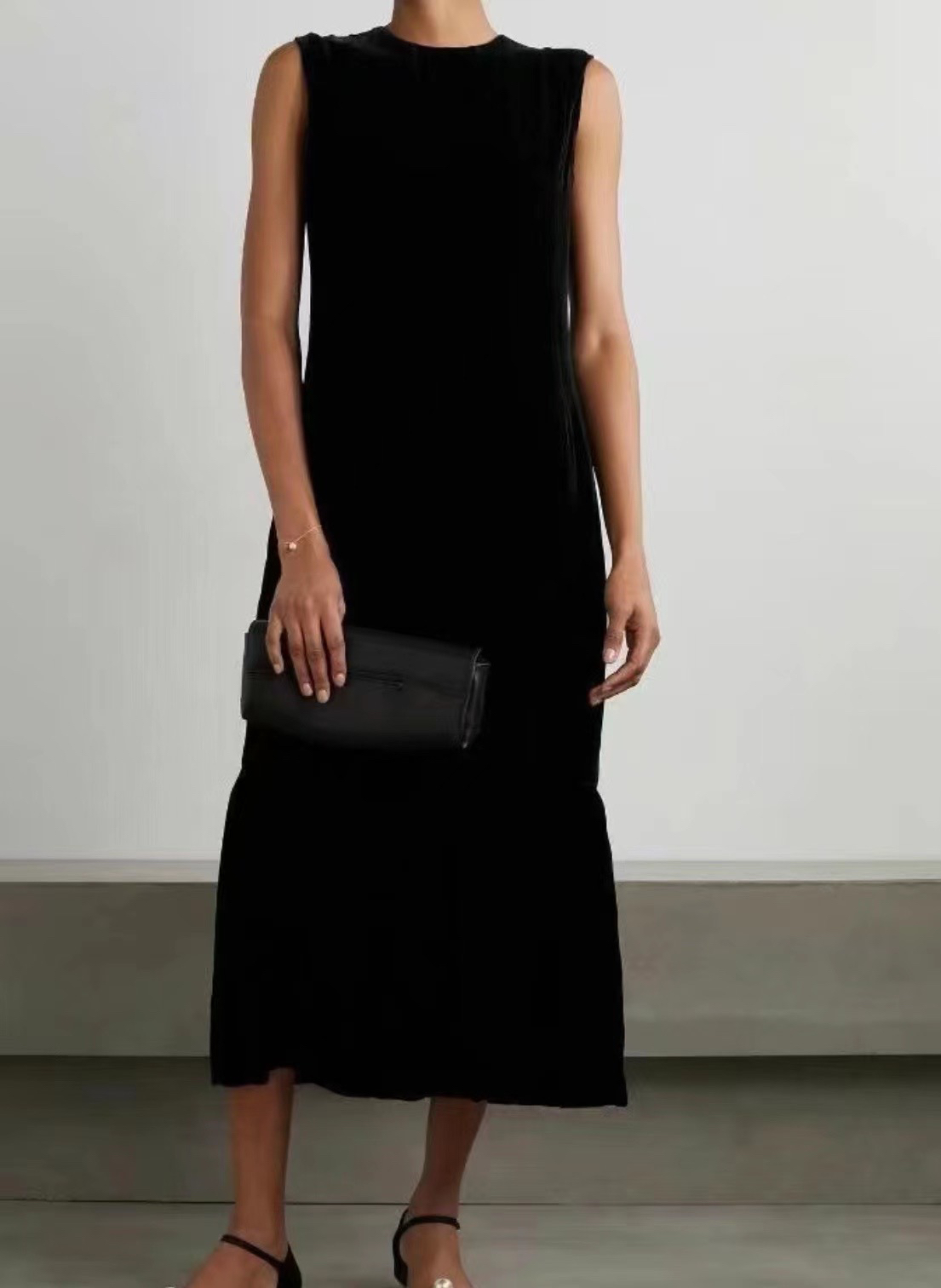 这款穿上美爆了,属于谁穿谁好看的款式,小个子穿也很合适,欧洲高端小众纯尾,实物不能更棒,一线代工厂出,客供进口真丝混纺丝绒面料,质地软糯垂感很好,恰到好处的小圆领,直筒舒适版型,褶皱拼接裙摆,裙长刚合适,做工细节无可挑剔,这样的款式搭配率高穿上优雅迷人气质出众,推荐!