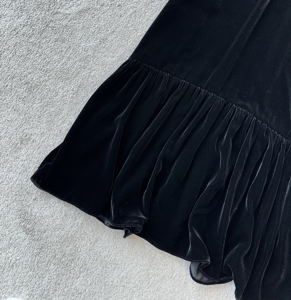 【à perles】小众高端尾优雅迷人真丝混纺丝绒连衣裙【3-5个工作日,不退换】