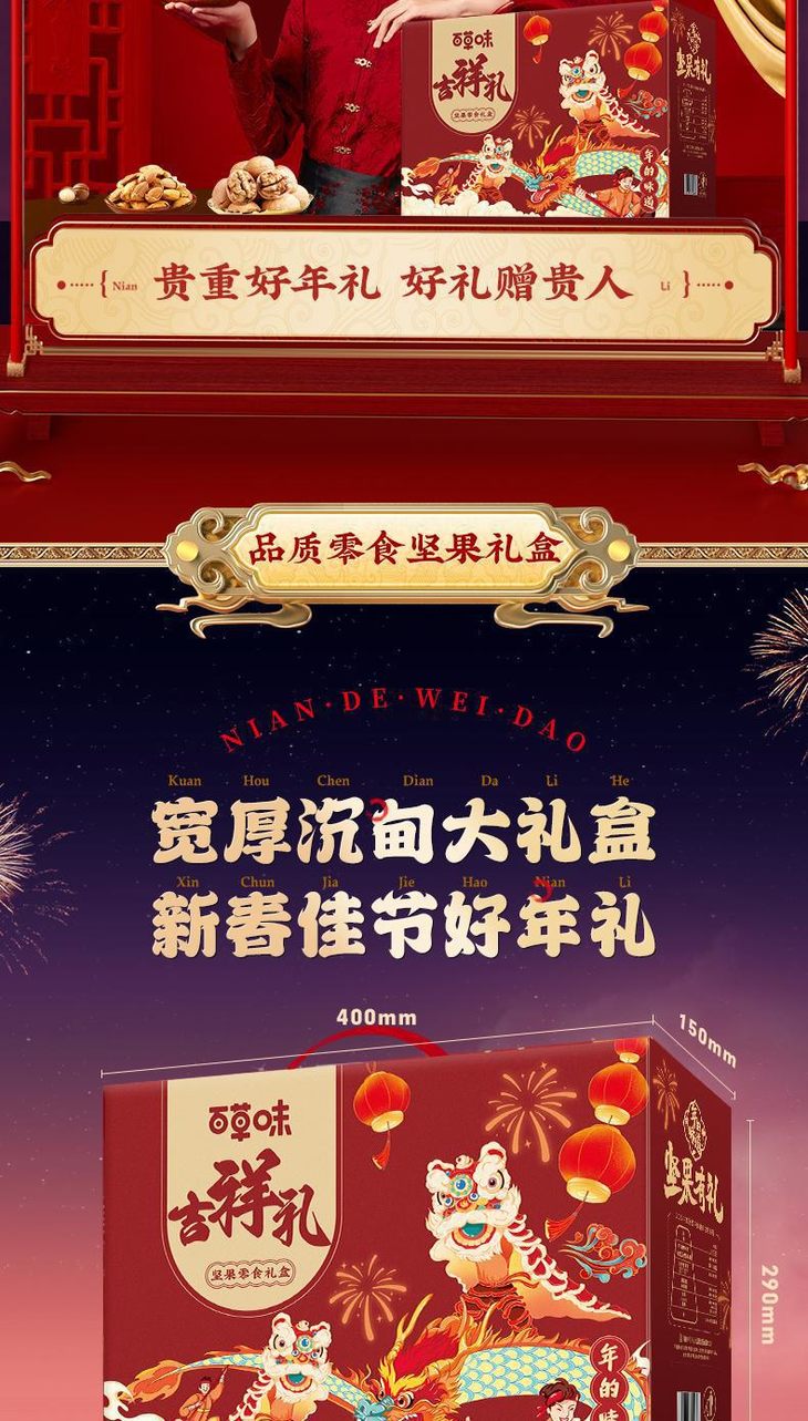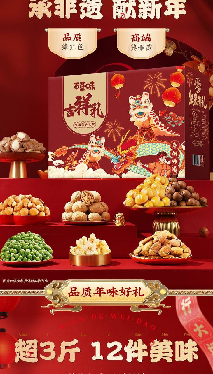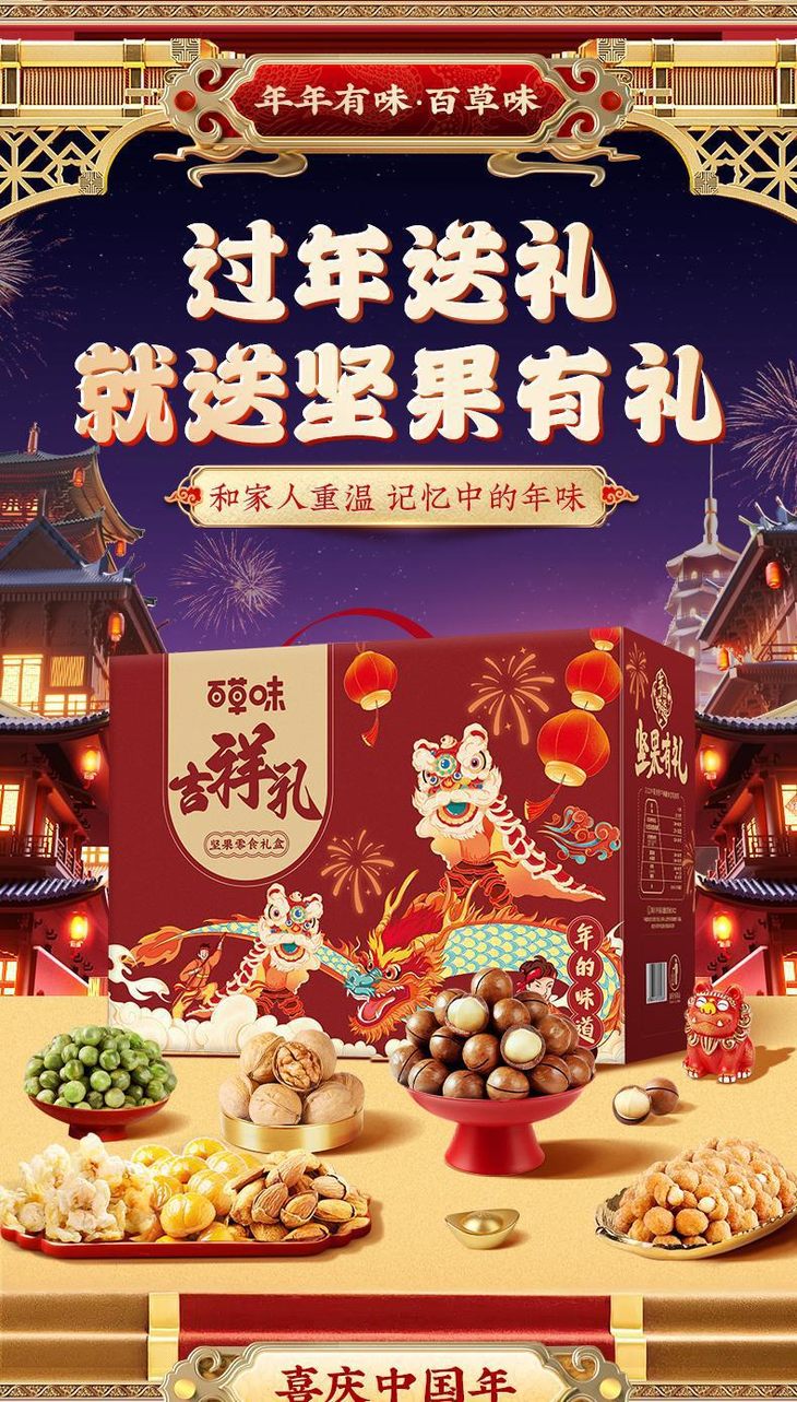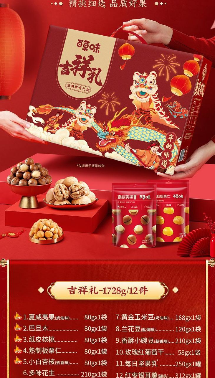 百草味坚果大礼包【吉祥礼-1728g14袋(含5坚果)】混合干果礼盒食品网红零食豪华送礼送长辈