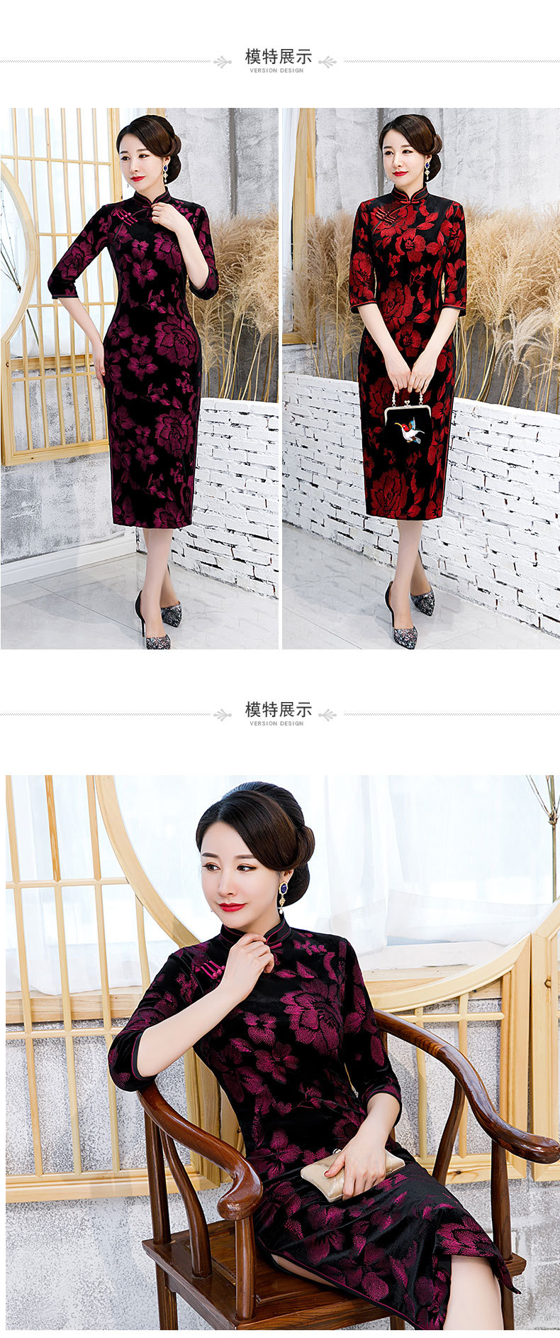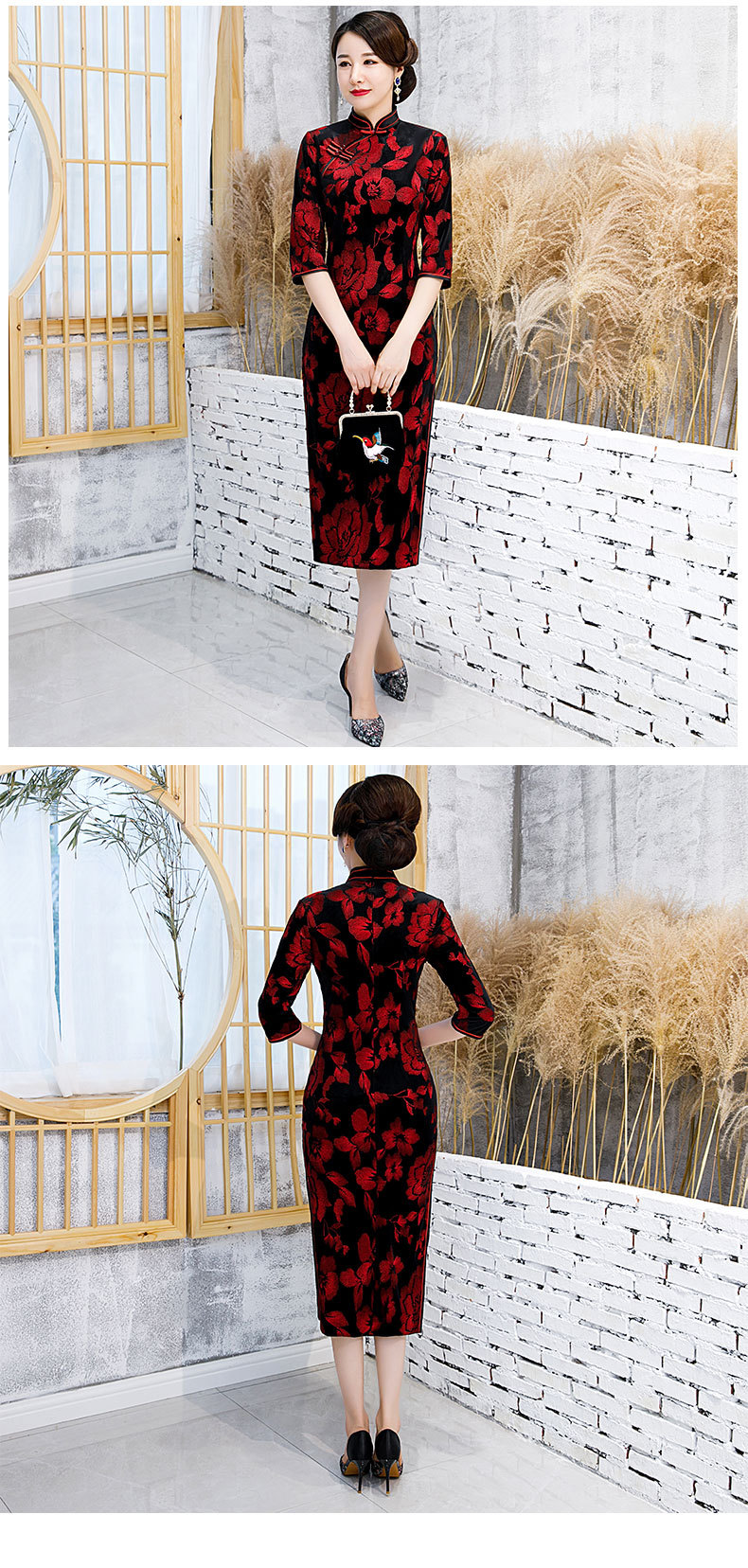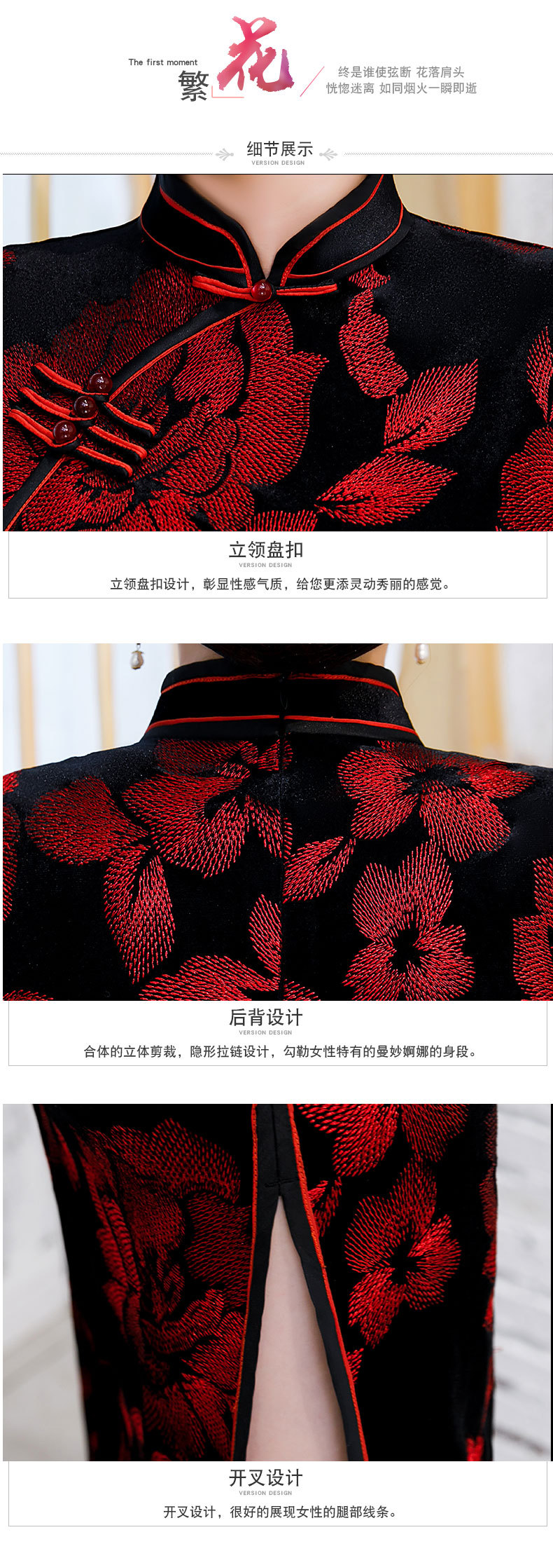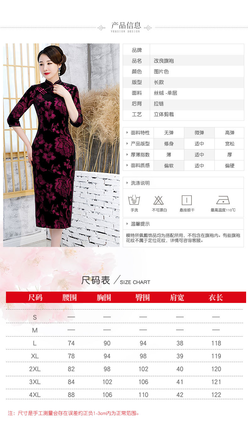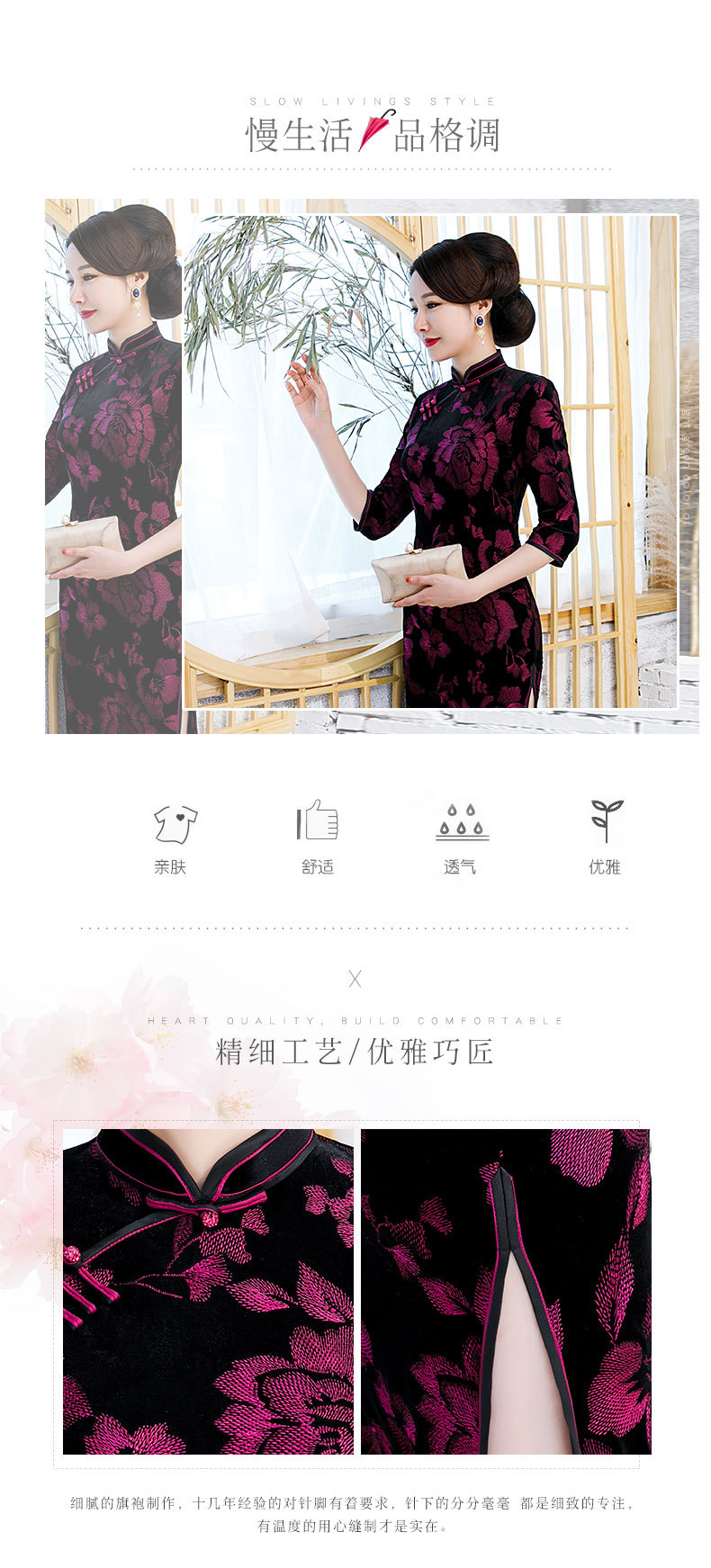 JLM-9025秋季新款丝绒旗袍长款绣花走秀旗袍