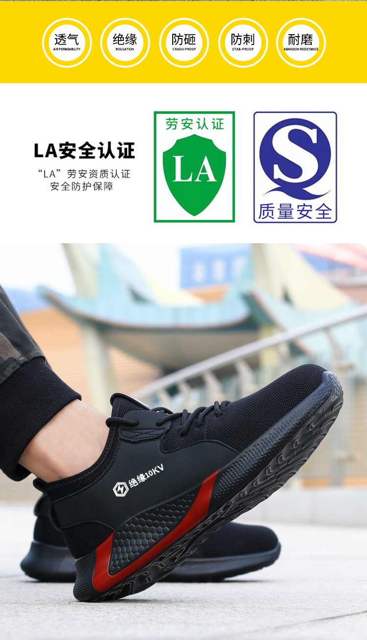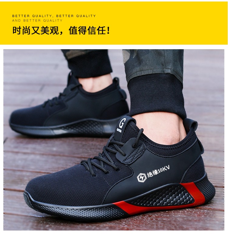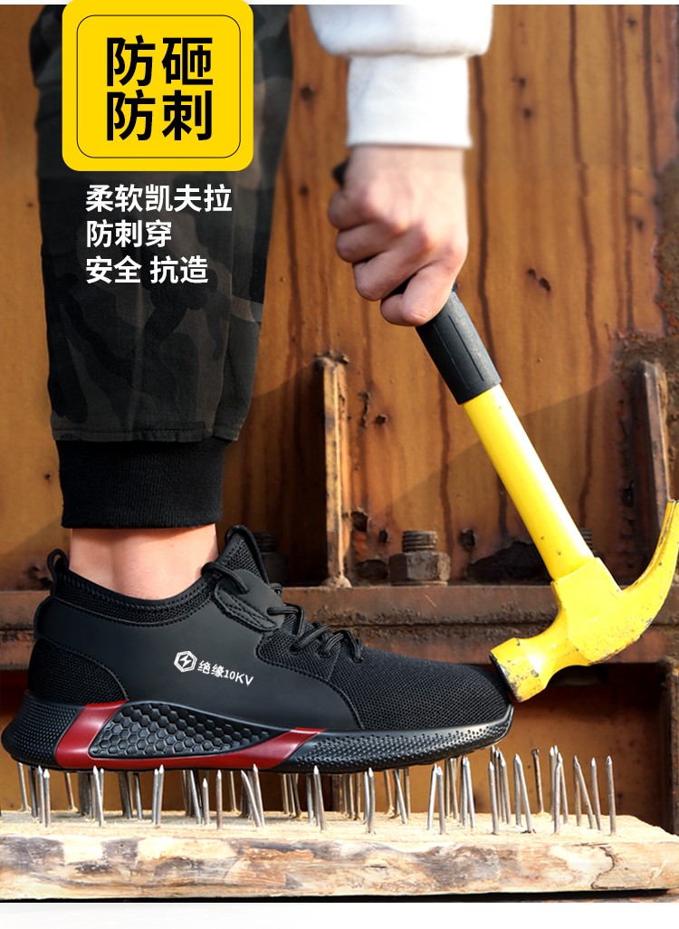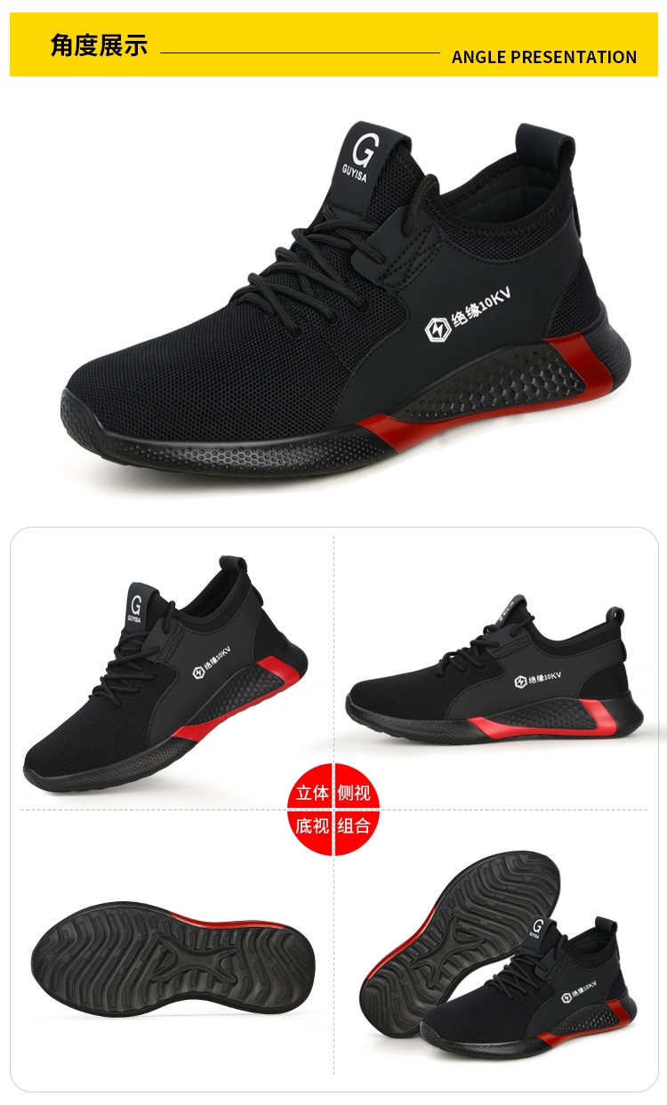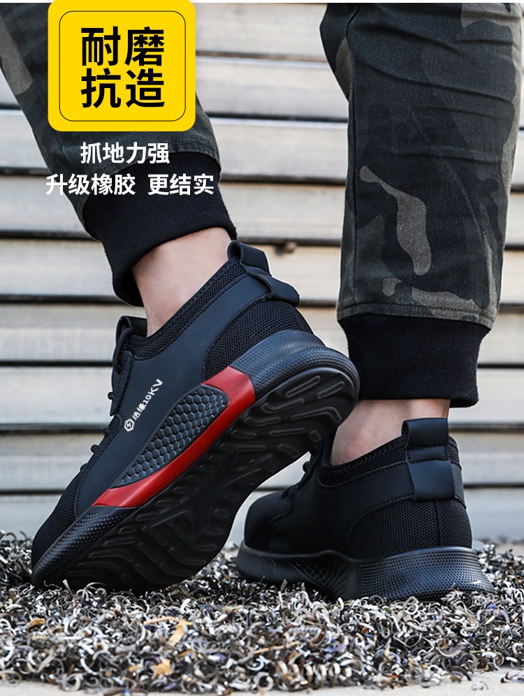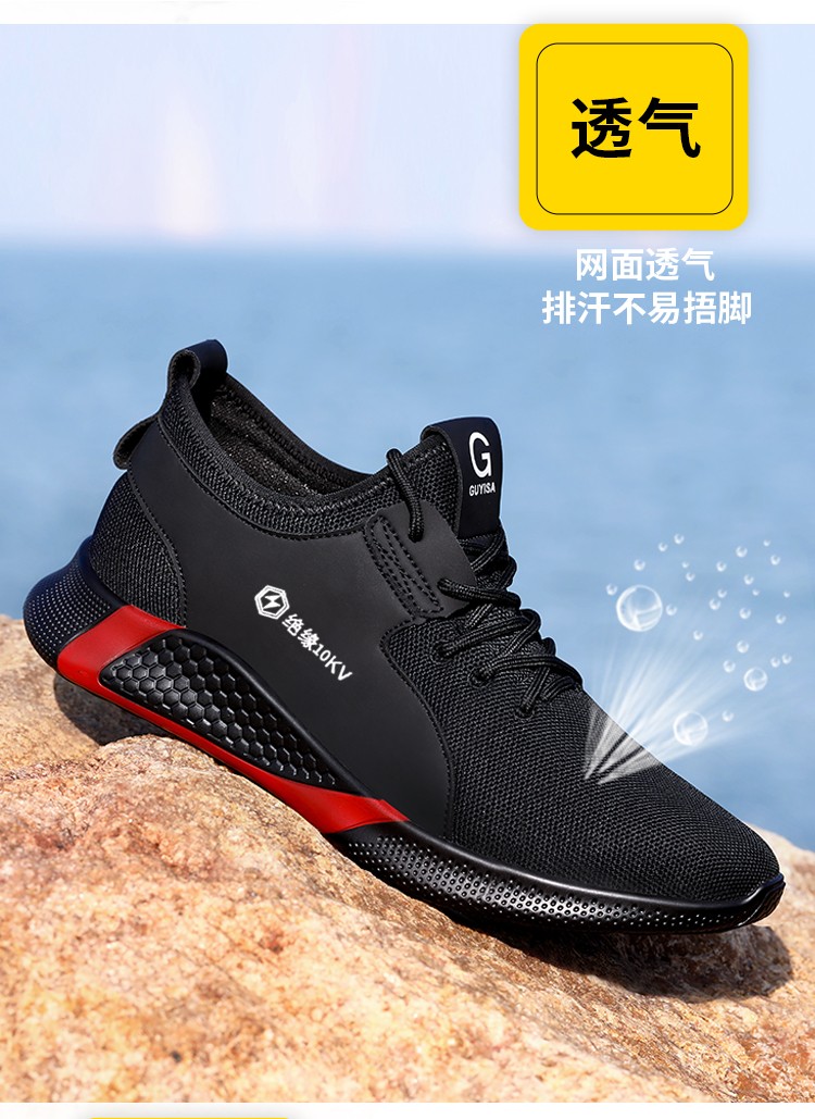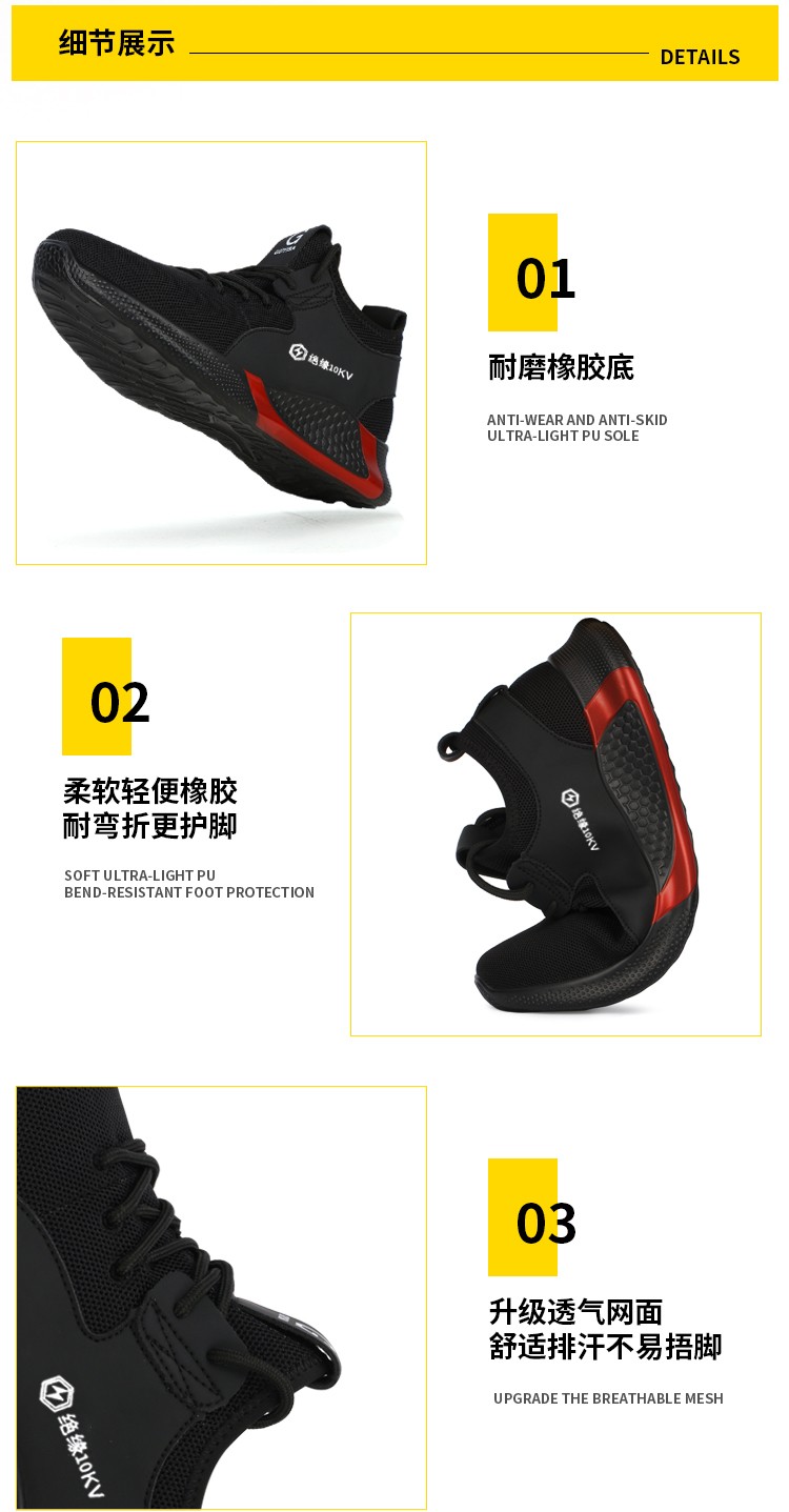 绝缘鞋10KV四季款透气网布耐磨橡胶底电工劳保鞋防砸防刺塑包头