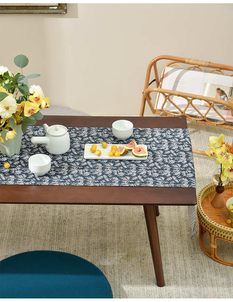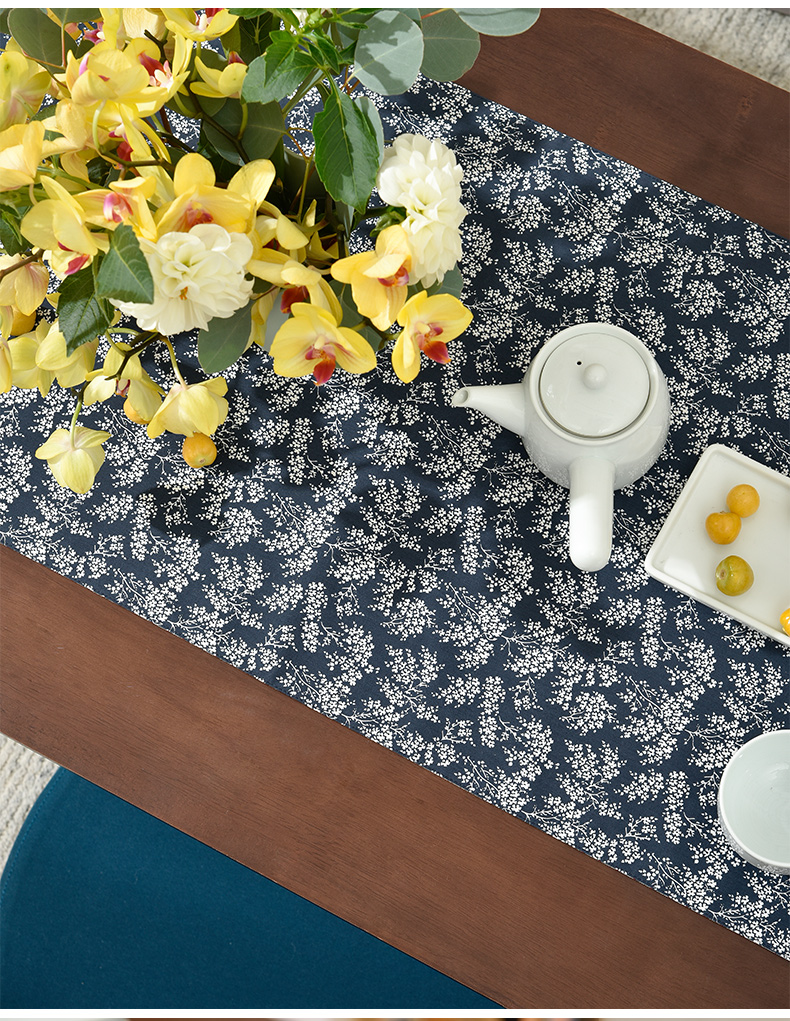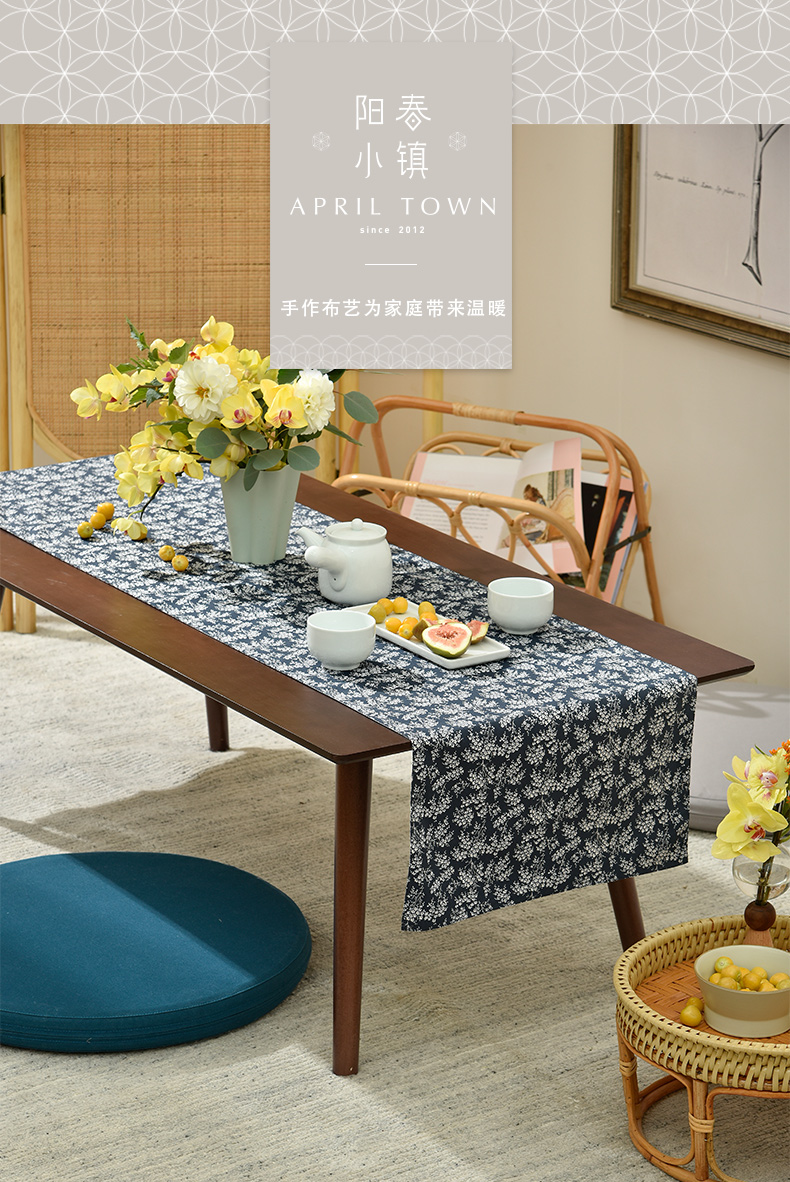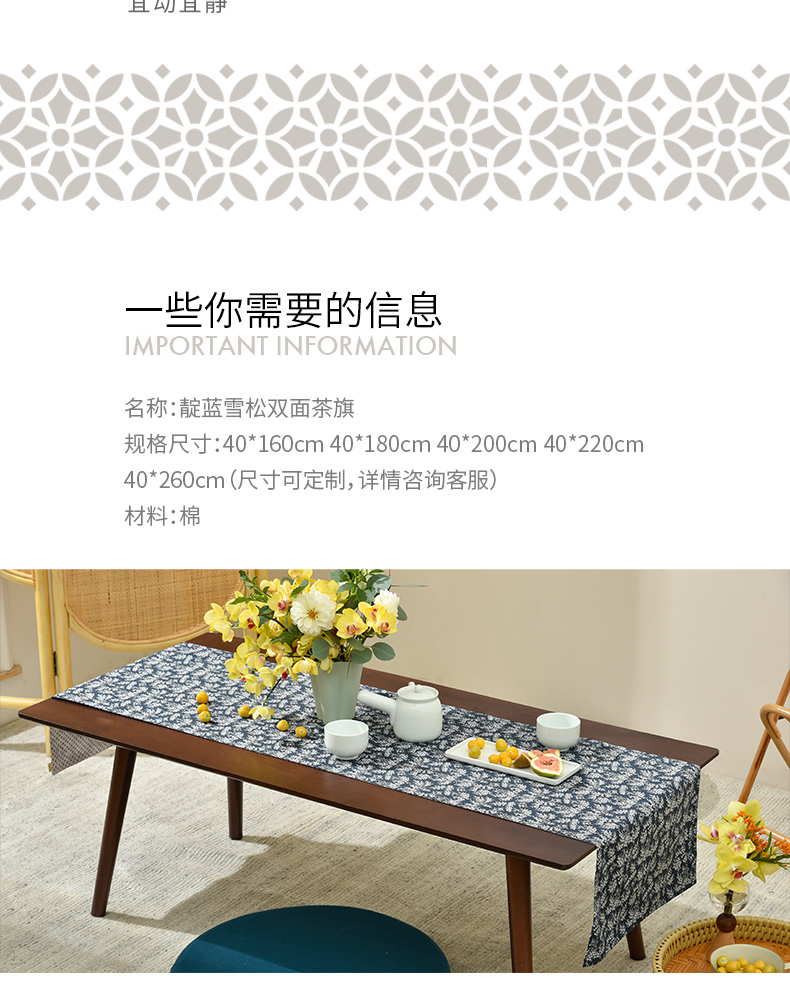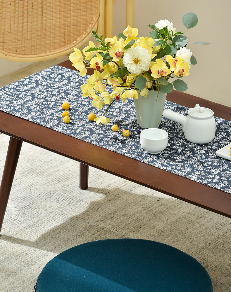靛蓝雪松碎花双面布艺茶旗