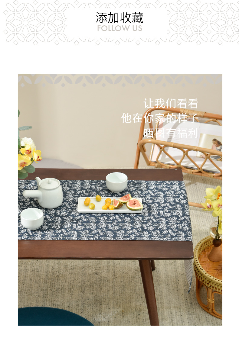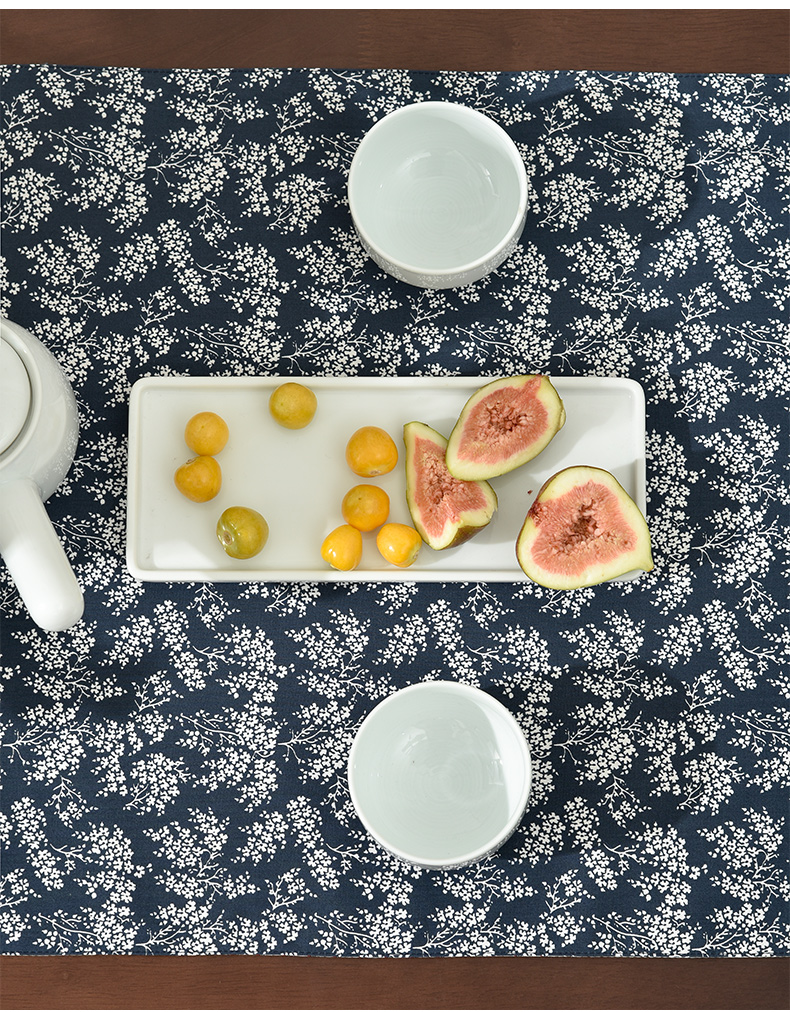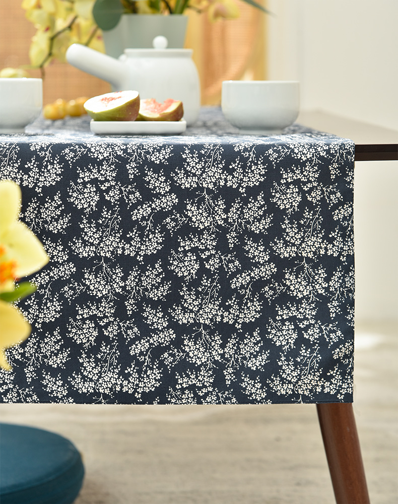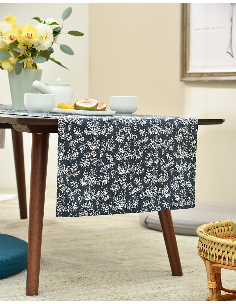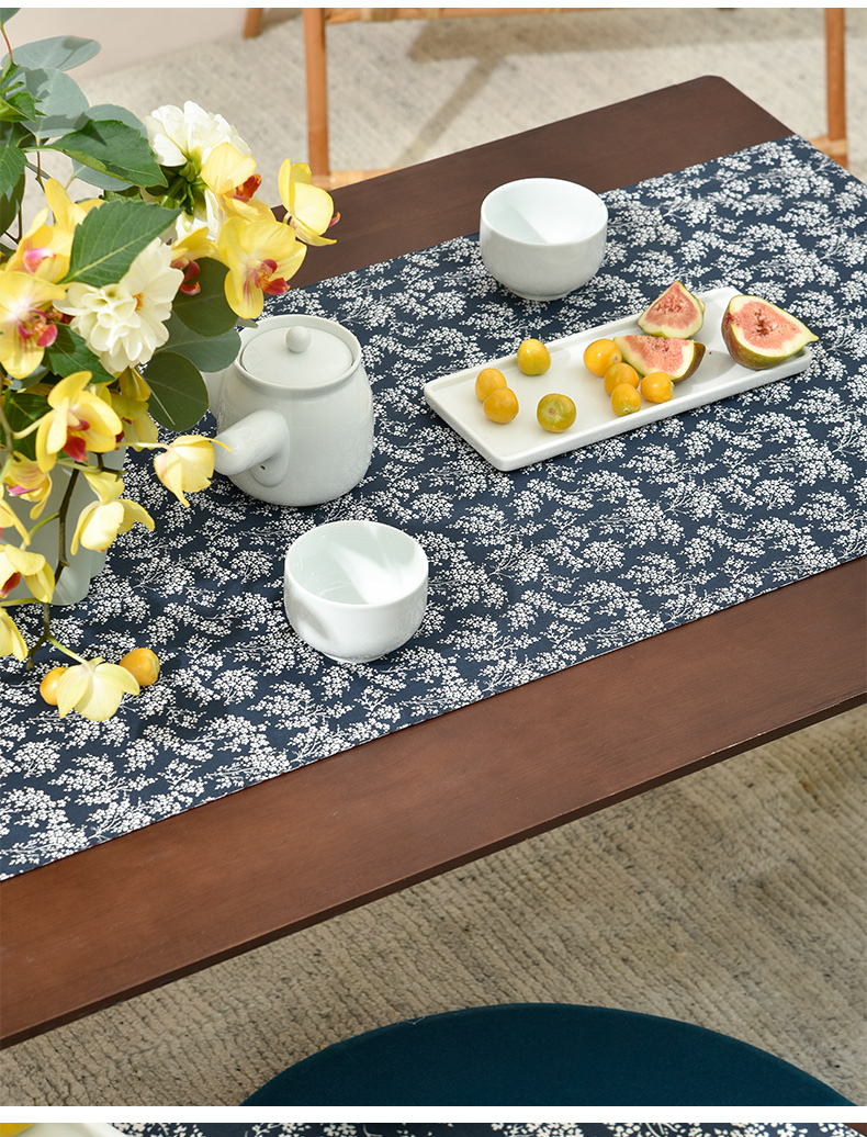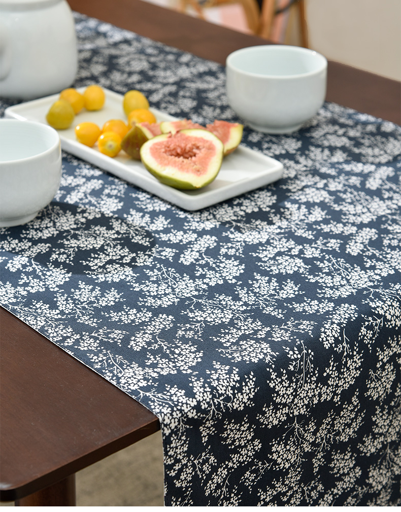 靛蓝雪松碎花双面布艺茶旗