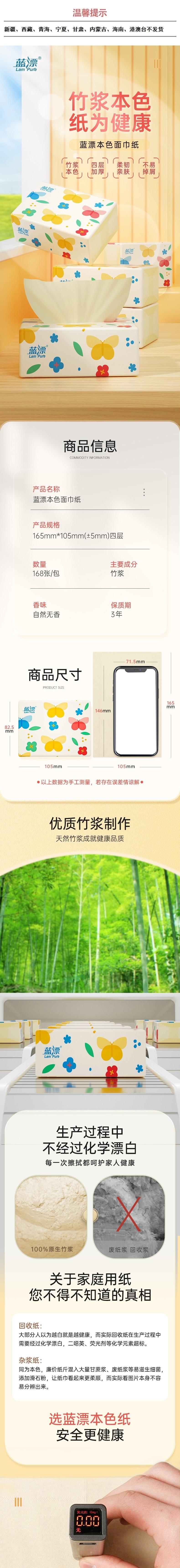 蓝漂 天府韵系列小号抽纸4层168张竹浆本色16包 LP-24379