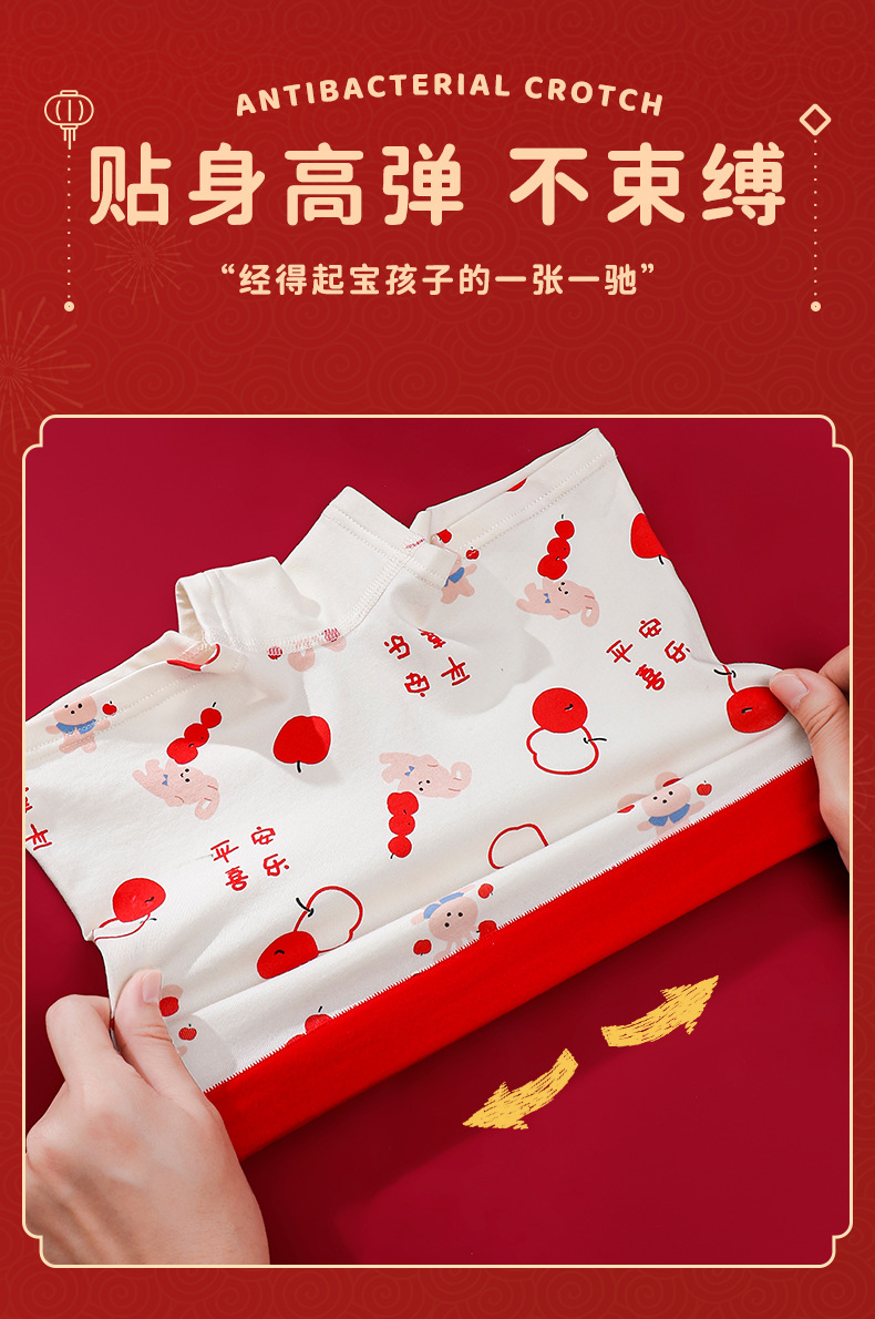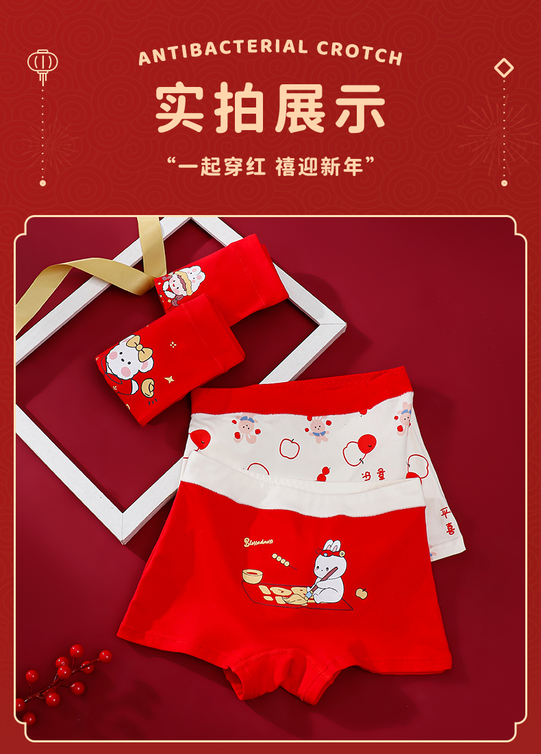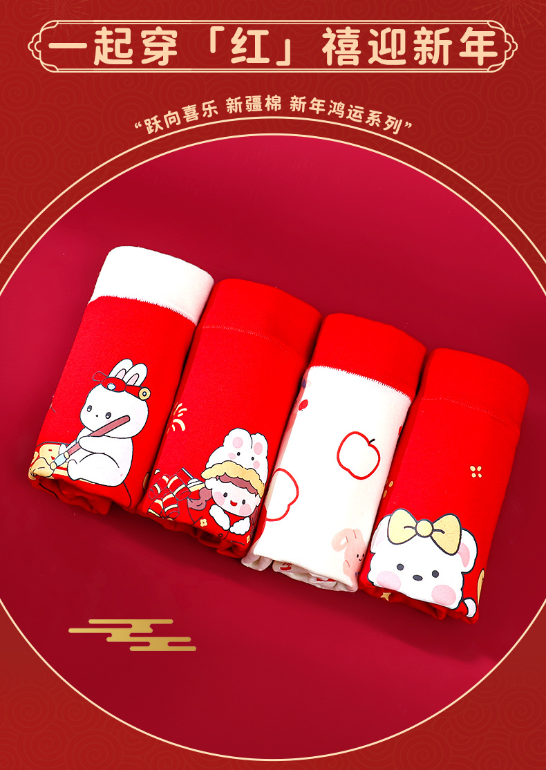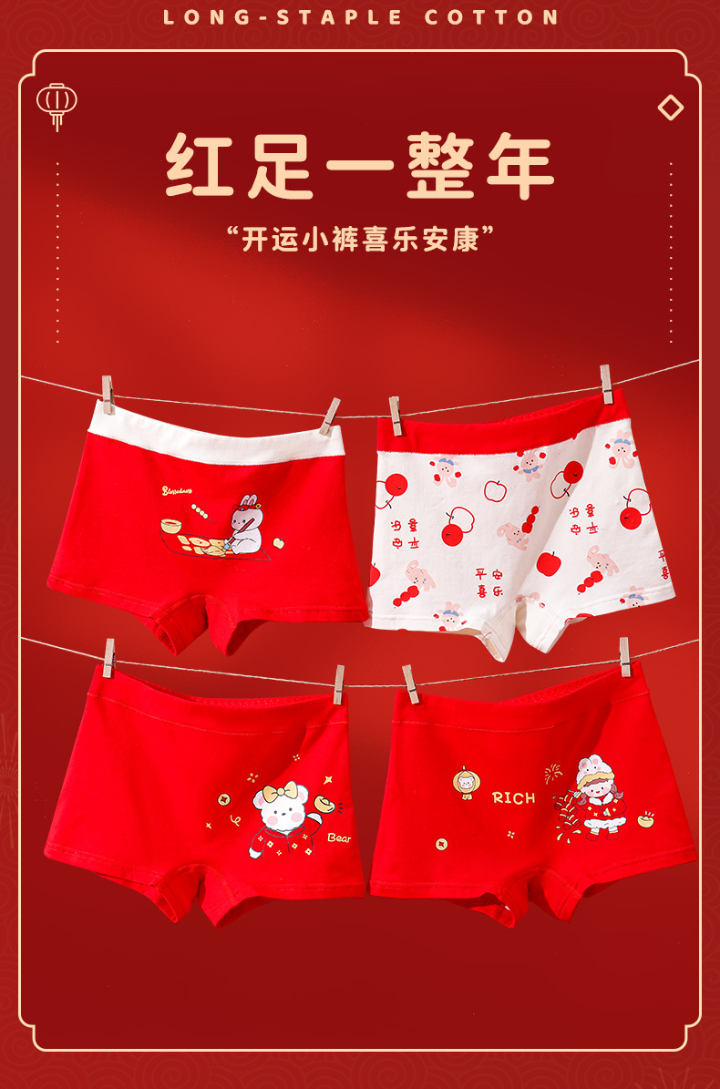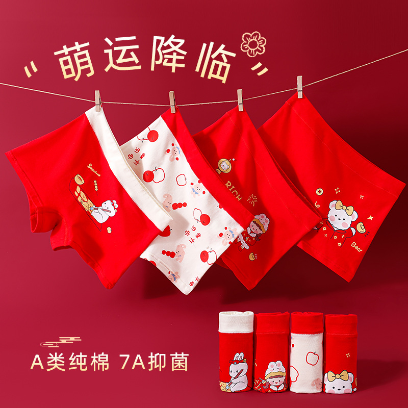【4条装】2026年马年新年璐童梦女童纯棉A类内裤本命年女童大红新年儿童四角裤适合35-105斤
