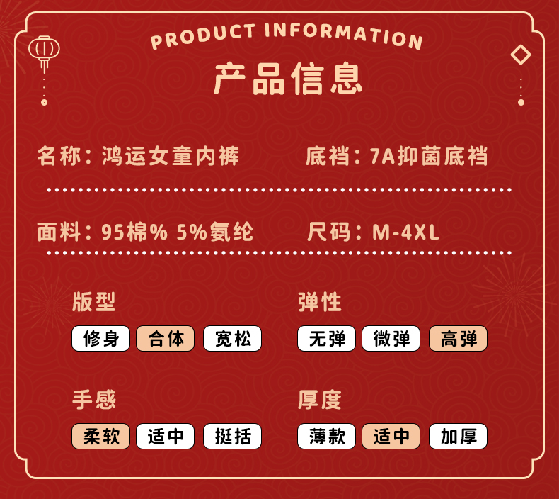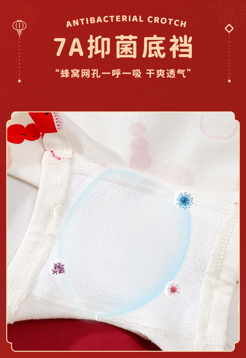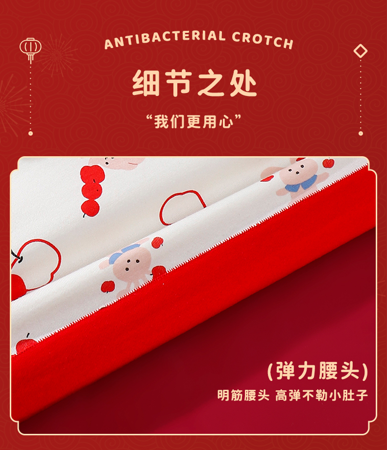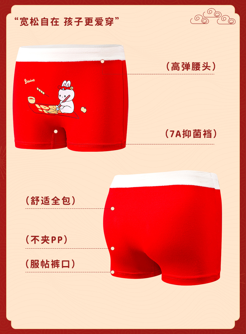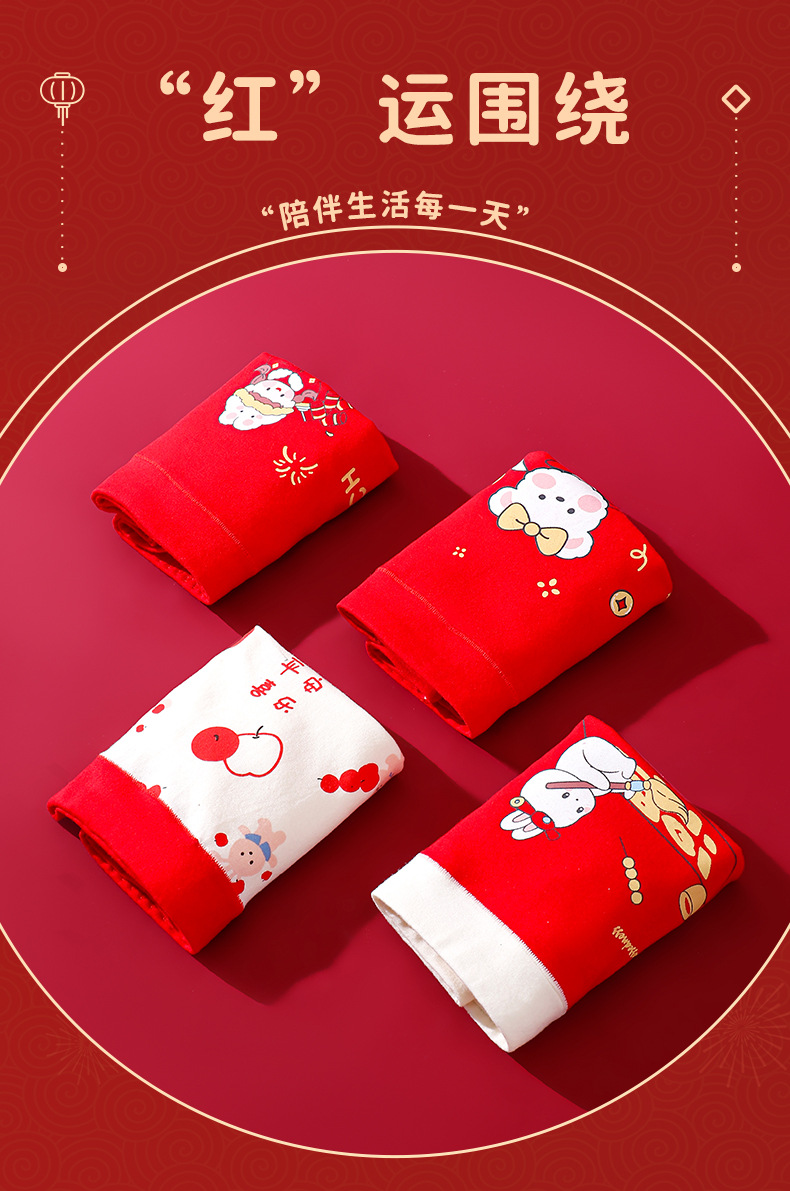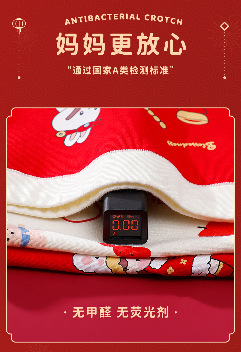 【4条装】2026年马年新年璐童梦女童纯棉A类内裤本命年女童大红新年儿童四角裤适合35-105斤