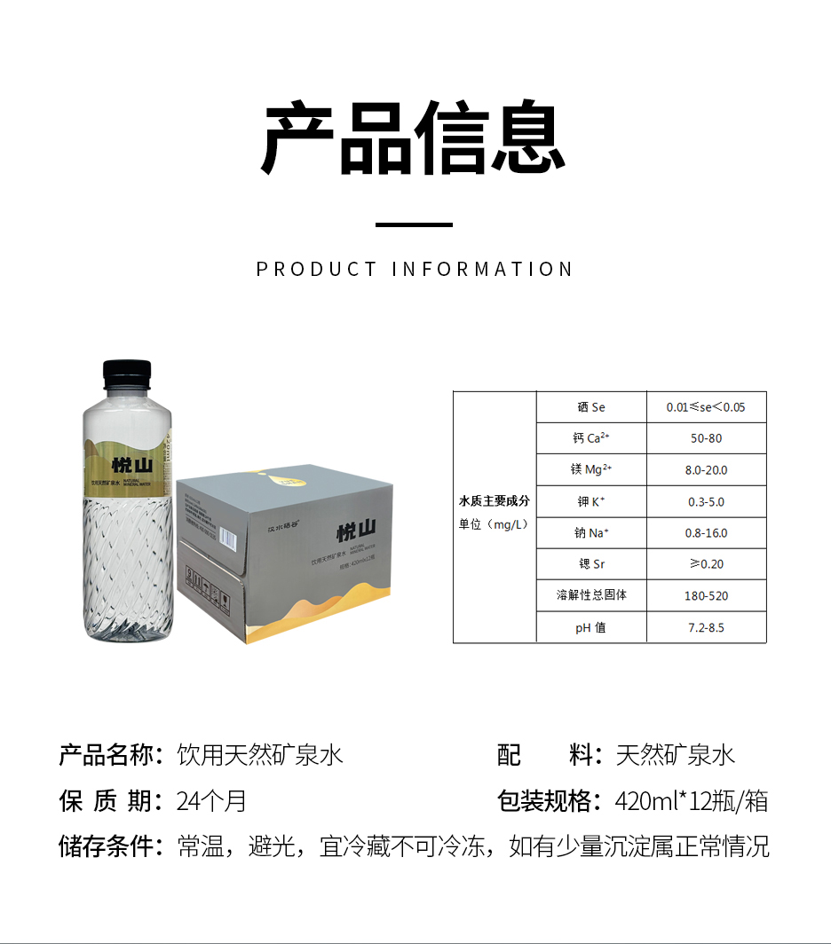 汉水硒谷·悦山 饮用天然矿泉水12瓶*3箱