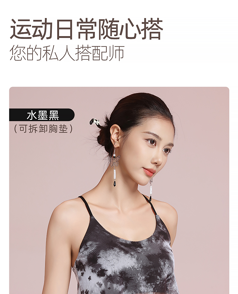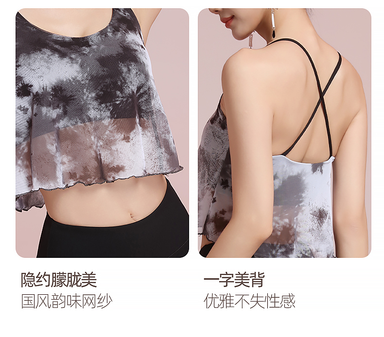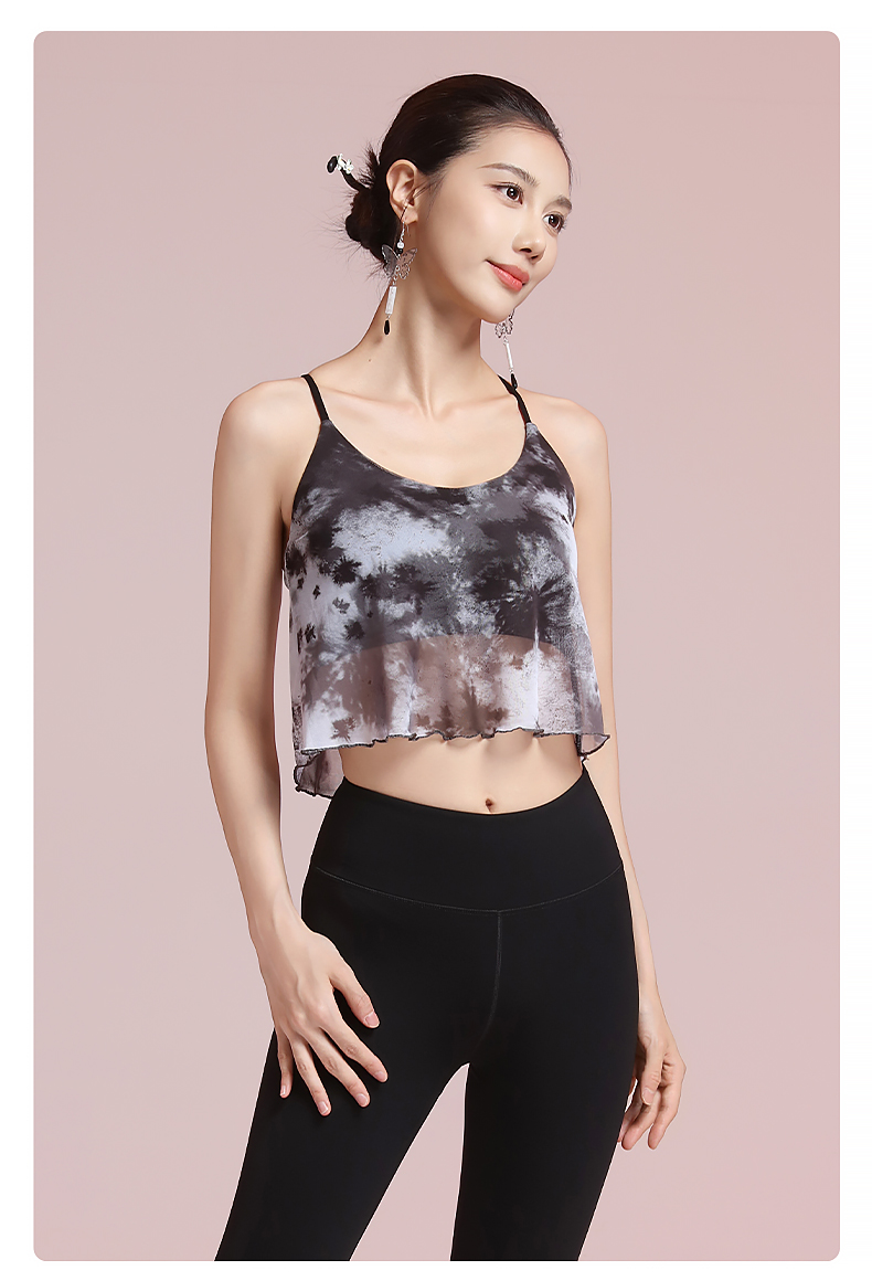 梵美人 F5267 瑜伽背心 可拆卸胸垫 网纱印花+裸感面料