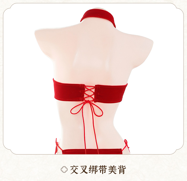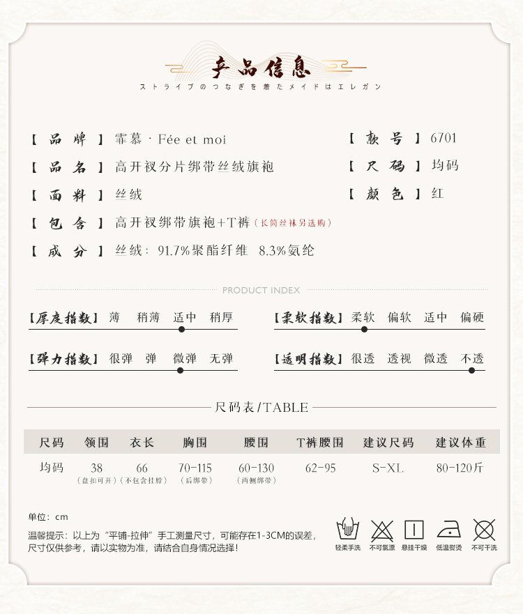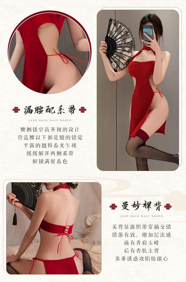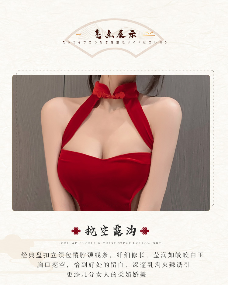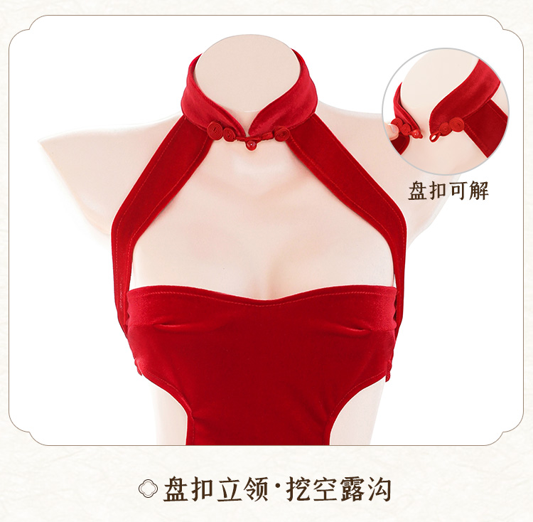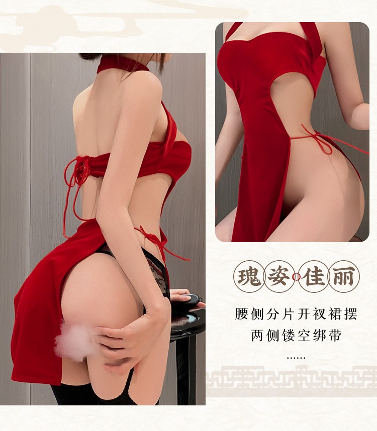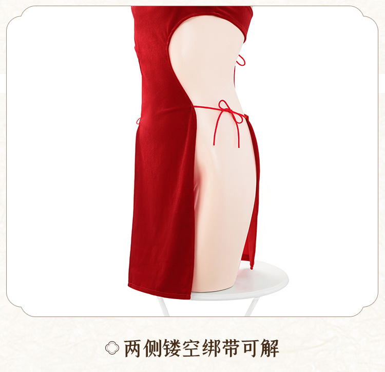 【情趣内衣】霏慕 高开衩分片绑带丝绒旗袍6701