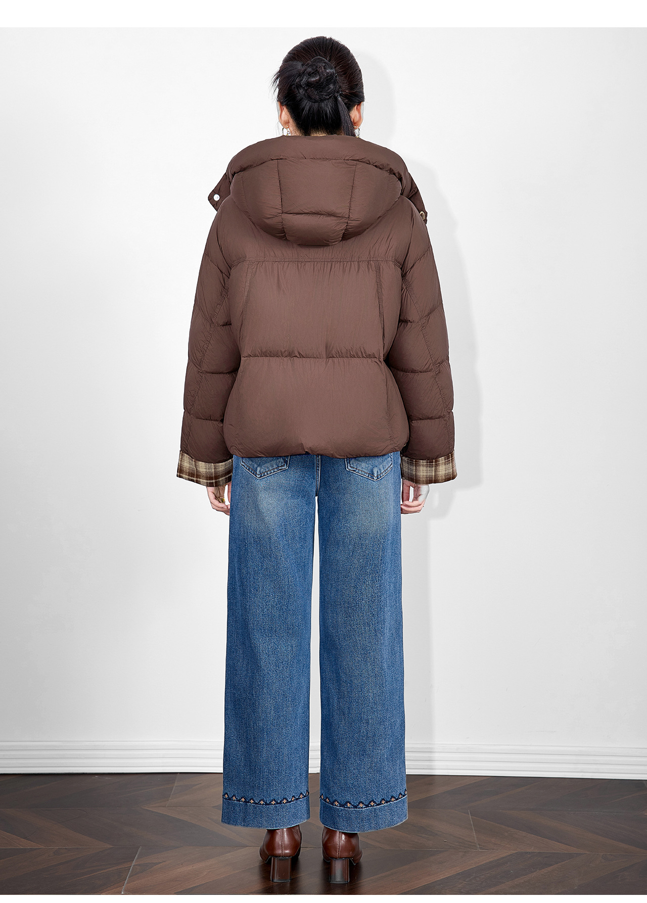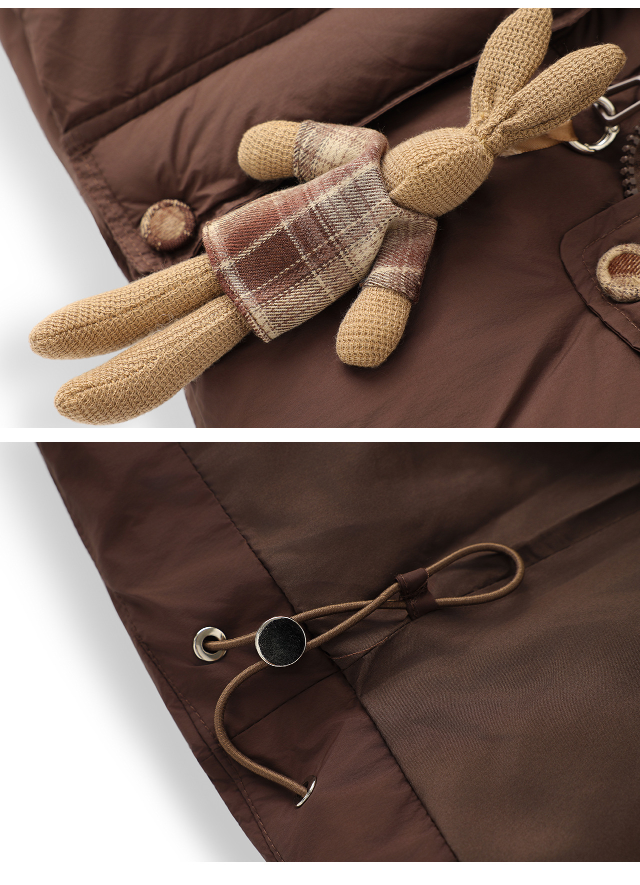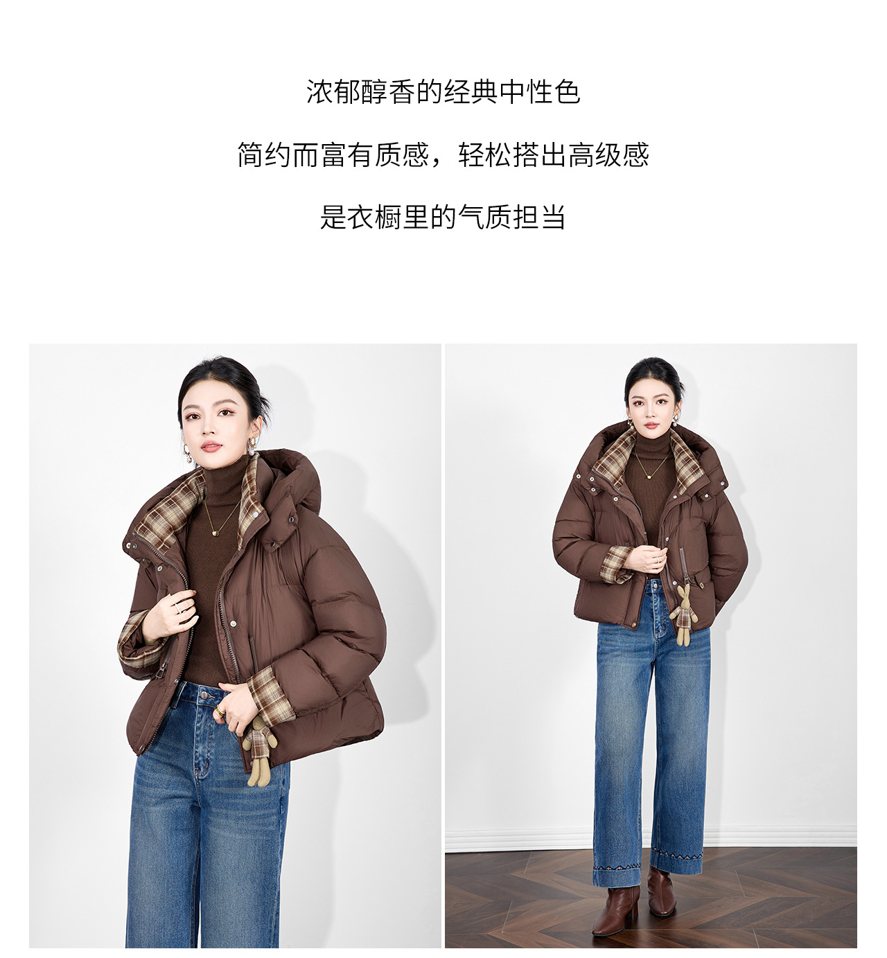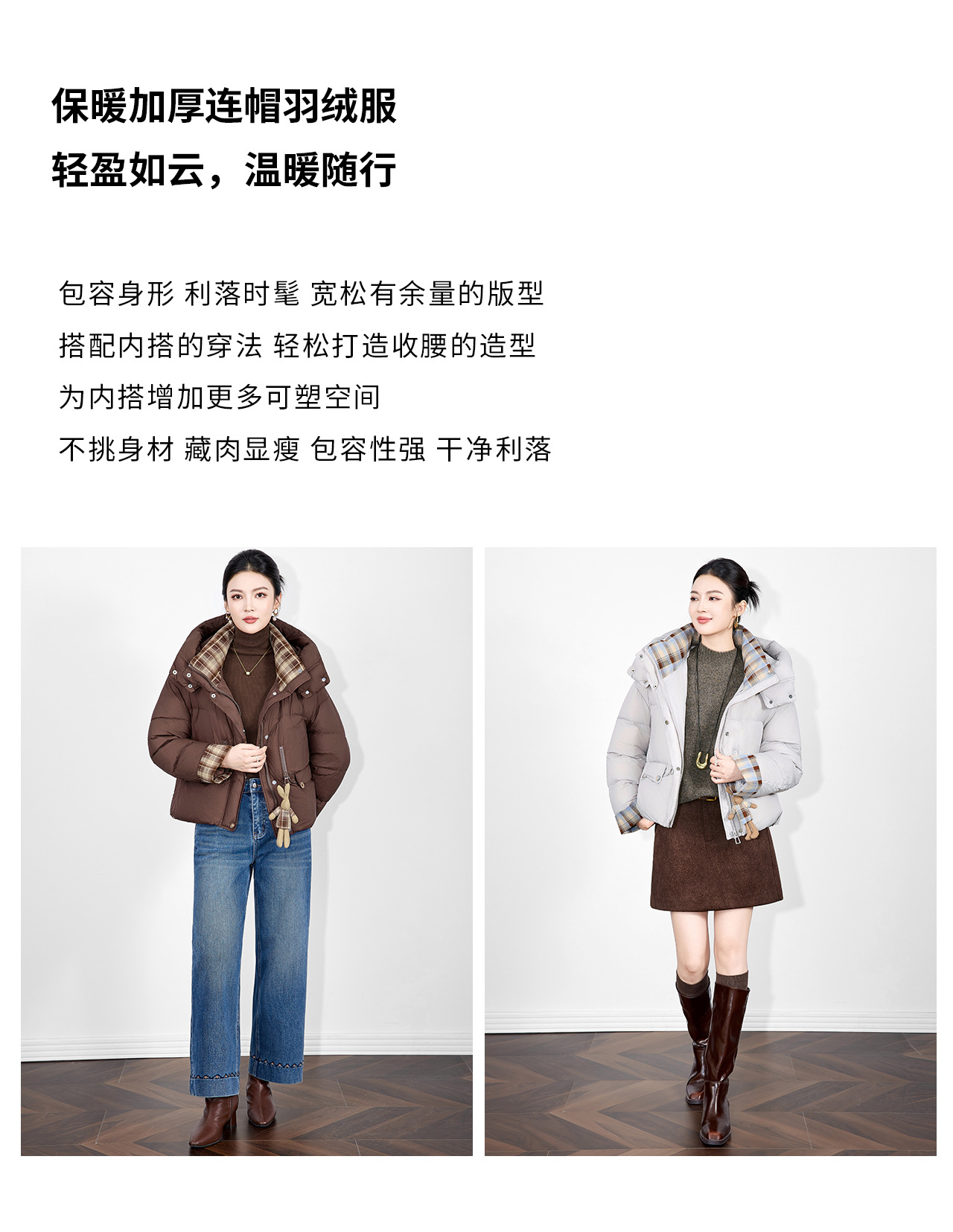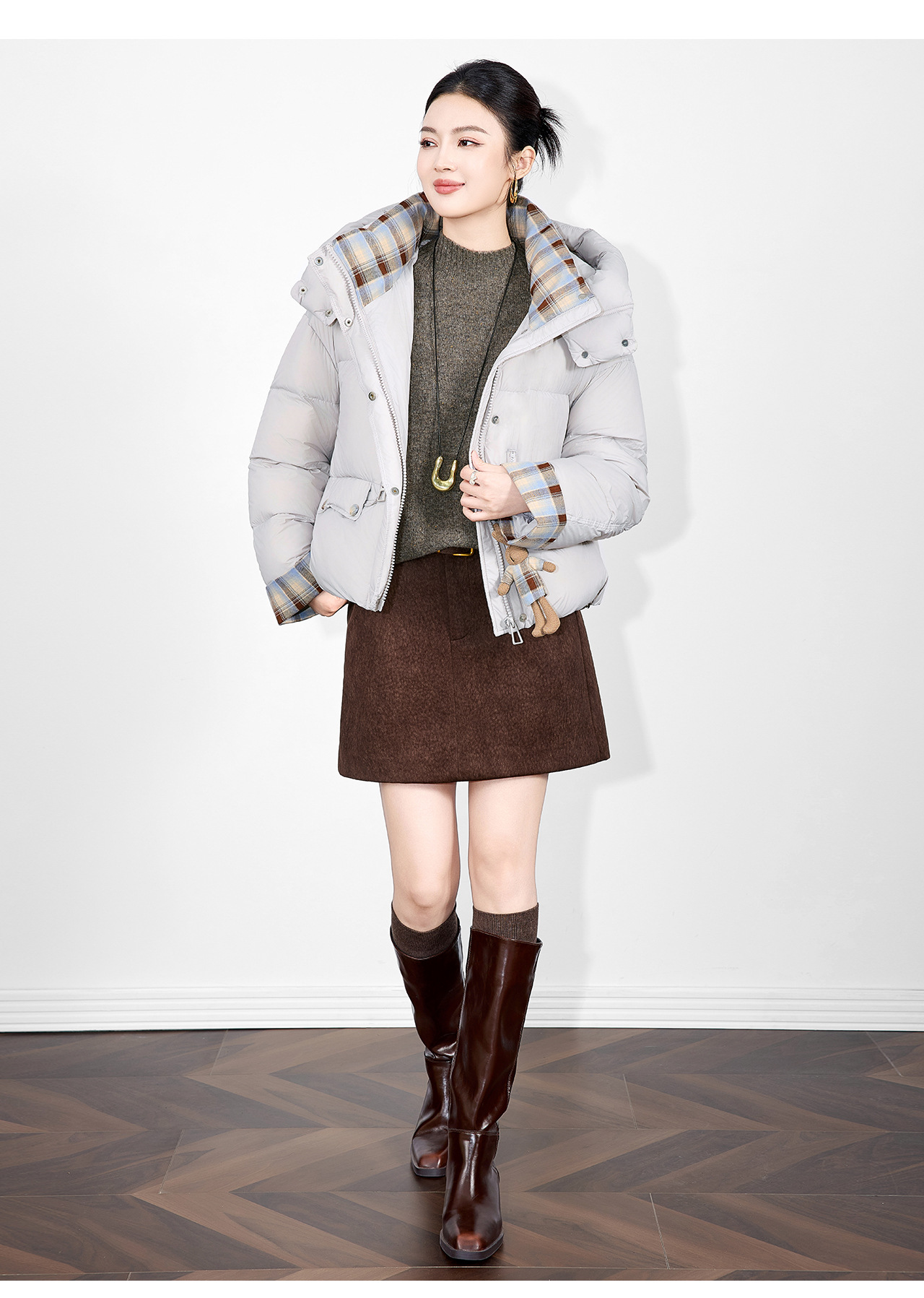 「高货wl」全新升级【铂金会员588/天猫799/差价211】(01933)洛诗琳连帽泡芙小熊挂饰羽绒服2025冬季格纹撞色保暖外套
