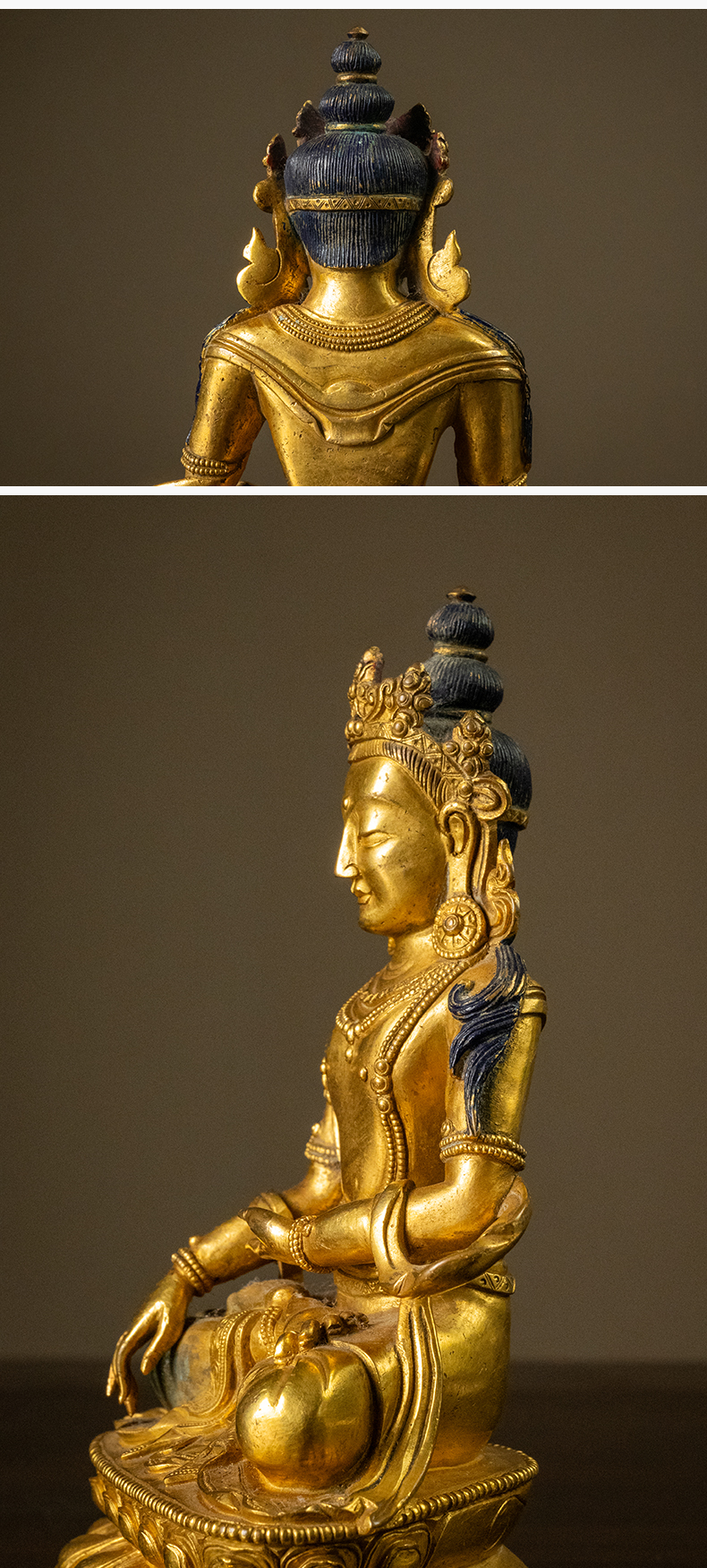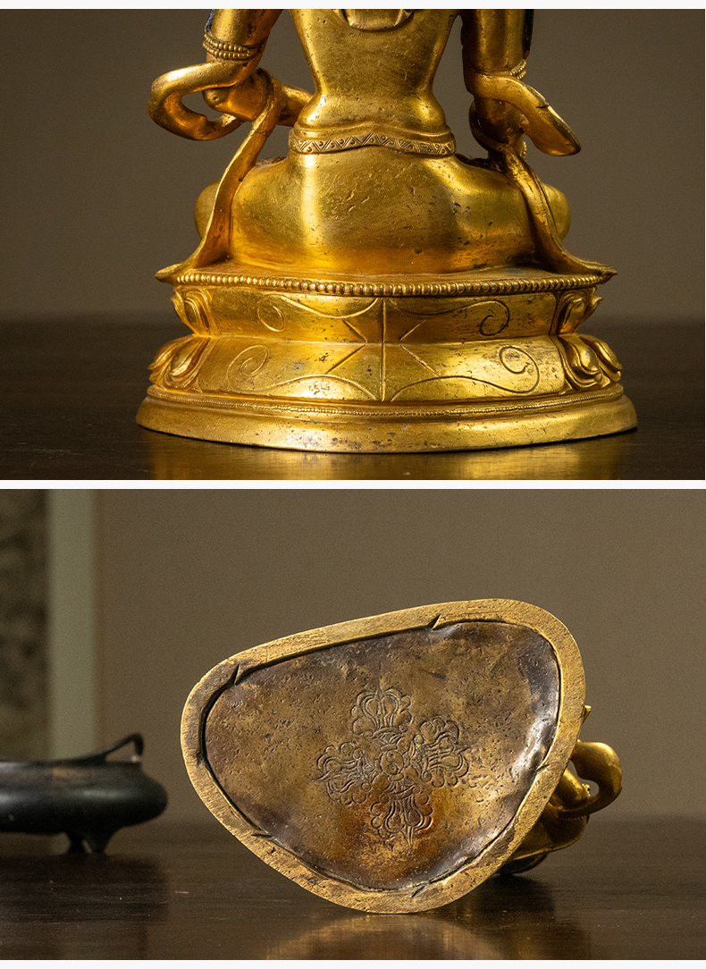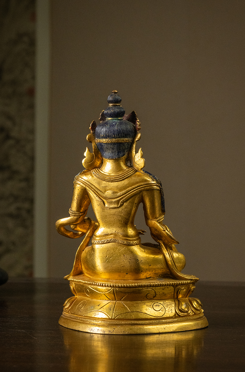 清 青金石嵌绿松石莲花盖盒(红木座)