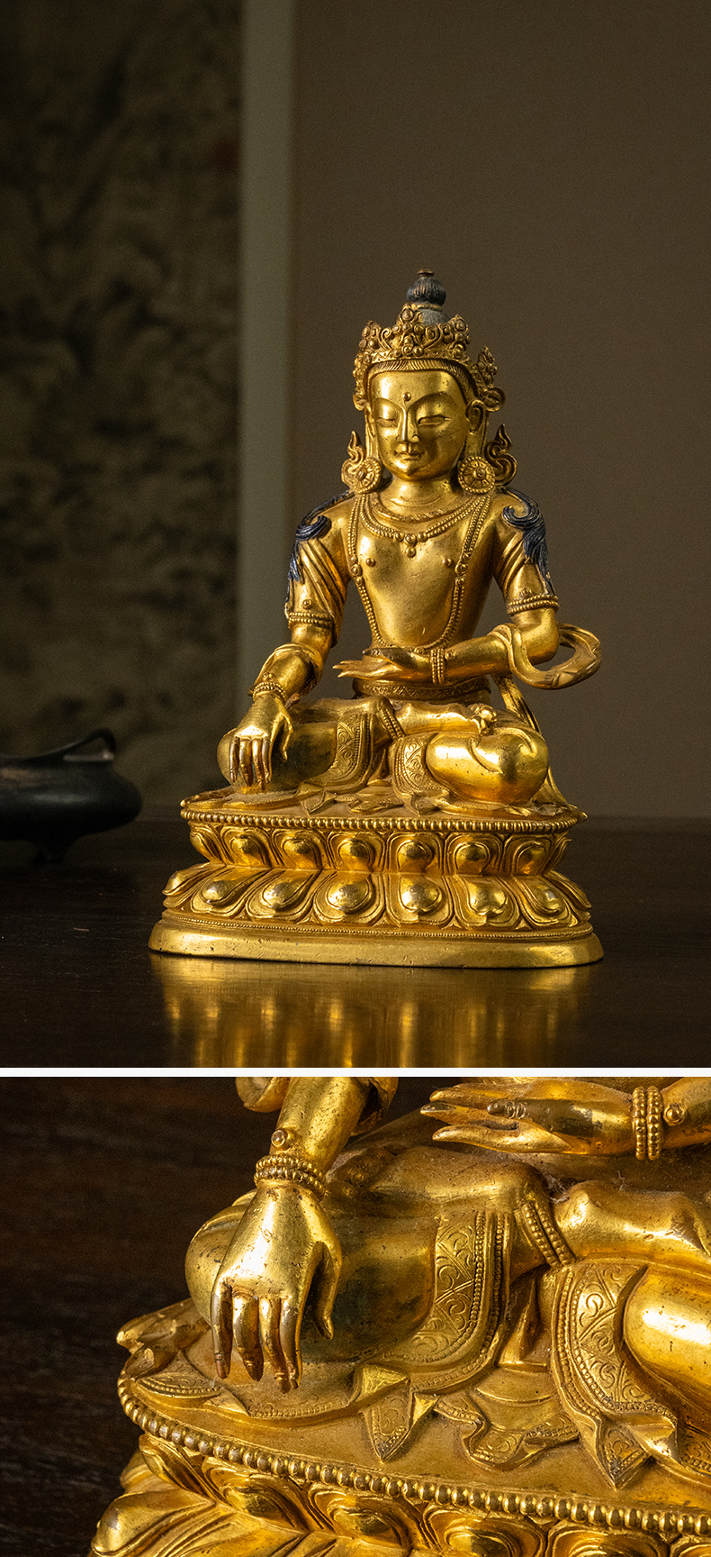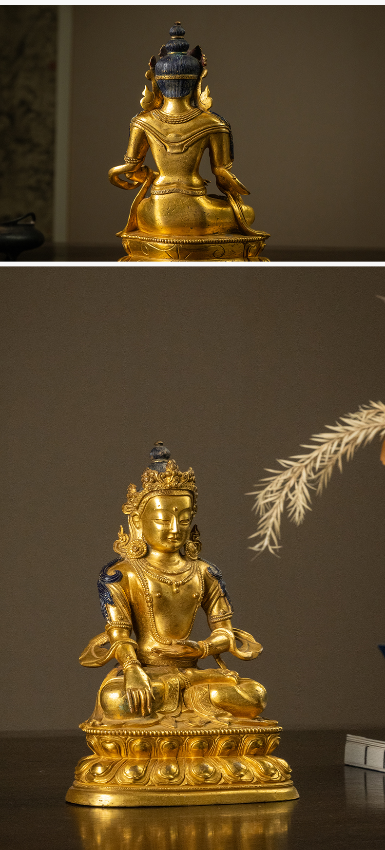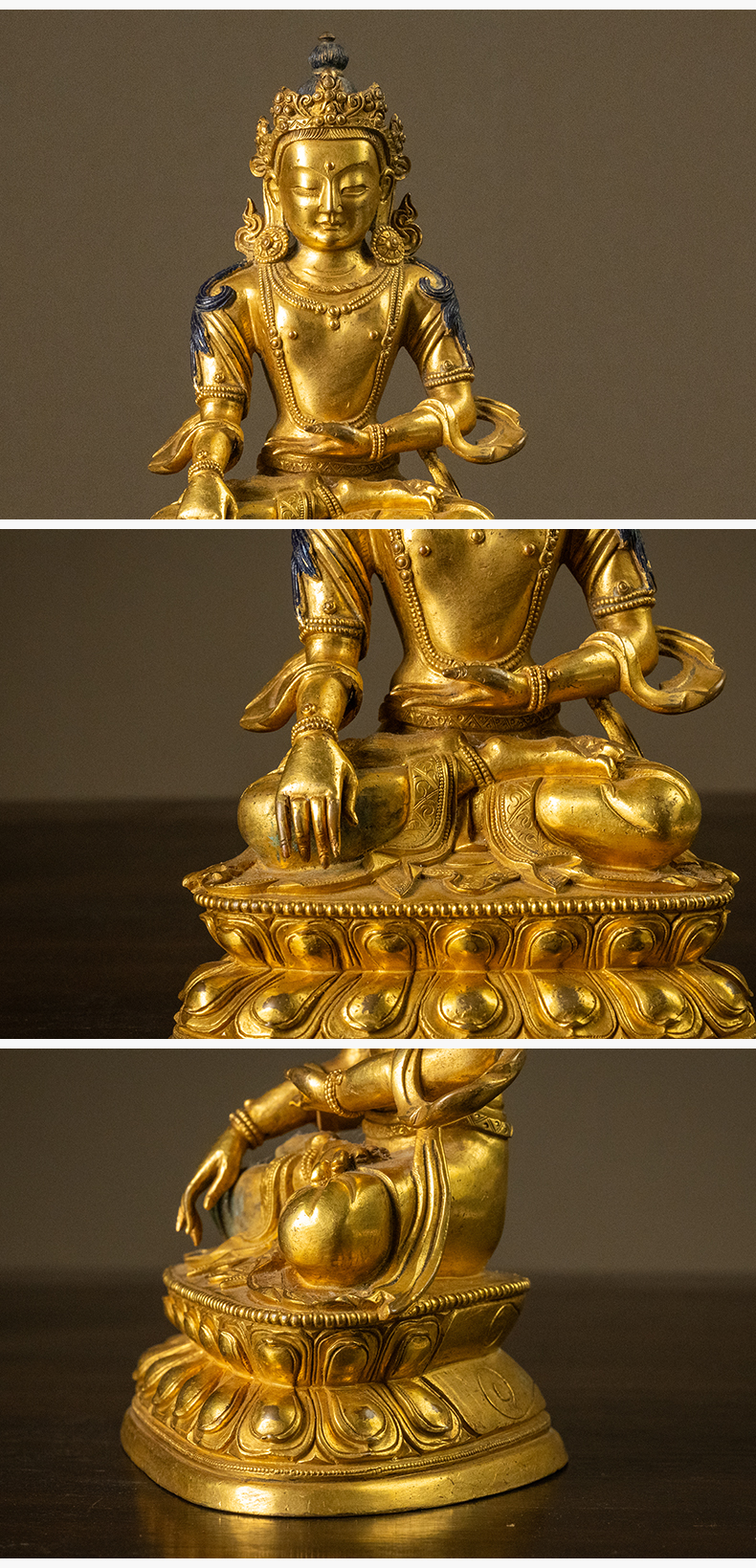 清 青金石嵌绿松石莲花盖盒(红木座)