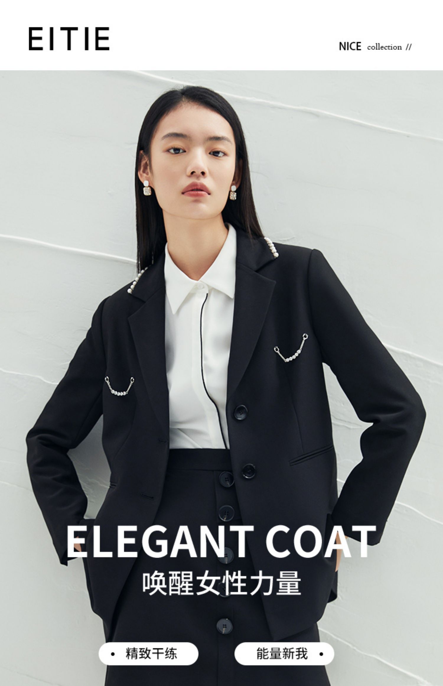 EITIE爱特爱春季新款时尚职业通勤百搭显瘦干练西装外套女A2203915