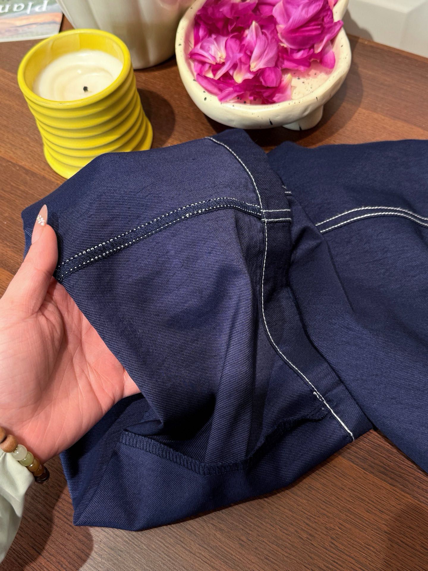 纯植物染色 经过长时间的发酵 才有这般纯粹的蓝!触感顺滑绵密 挺括有型!
