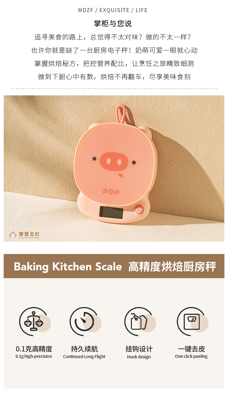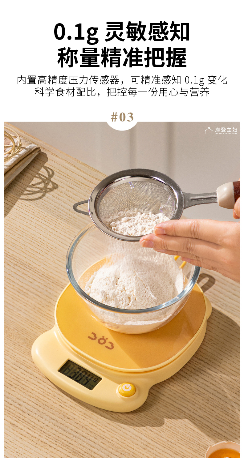 摩登主妇电子秤精准0.1g小型称重秤家用烘焙食物秤辅食克秤厨房秤