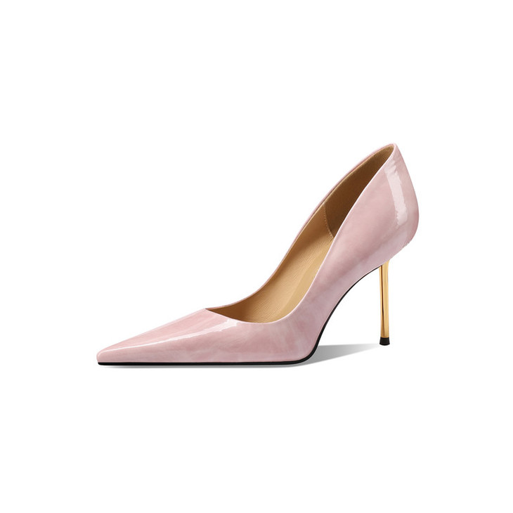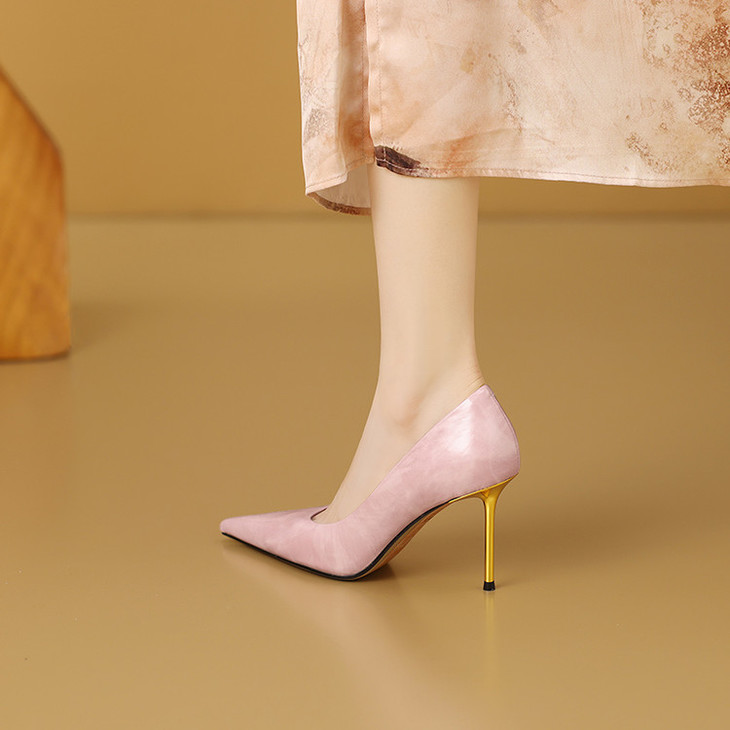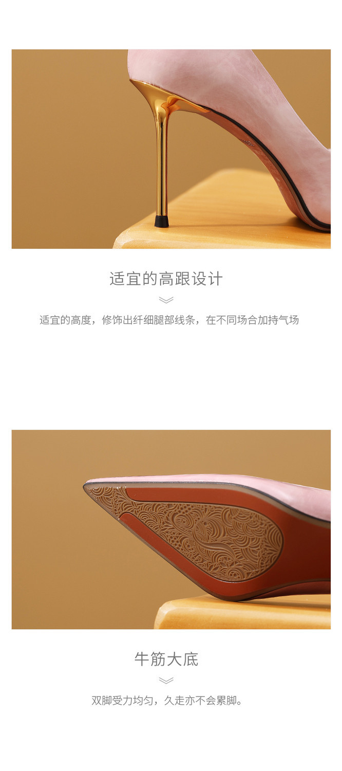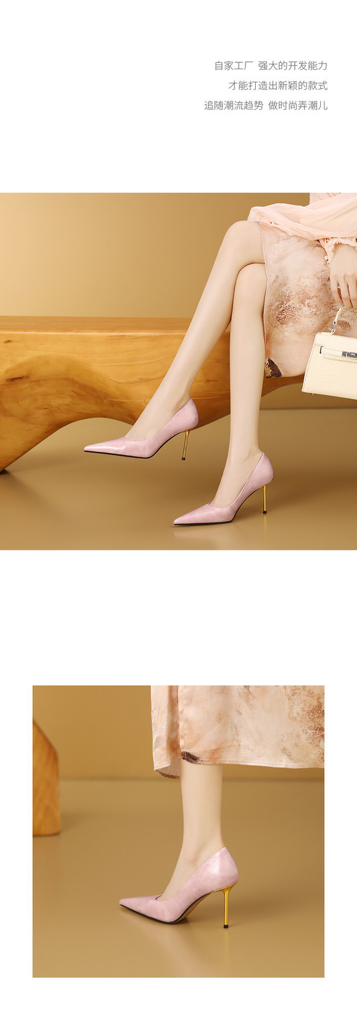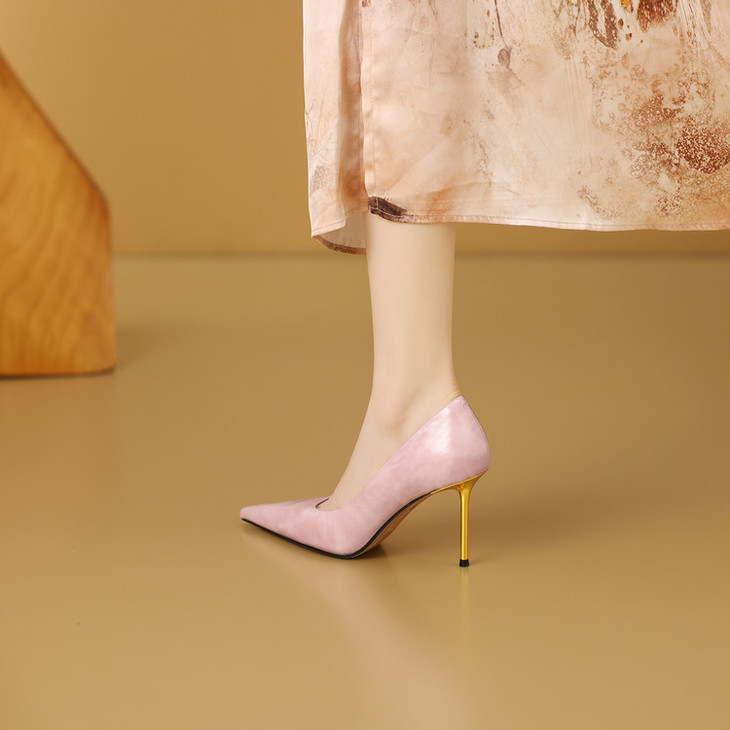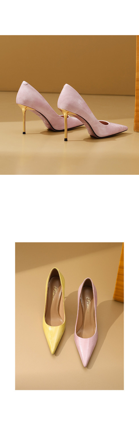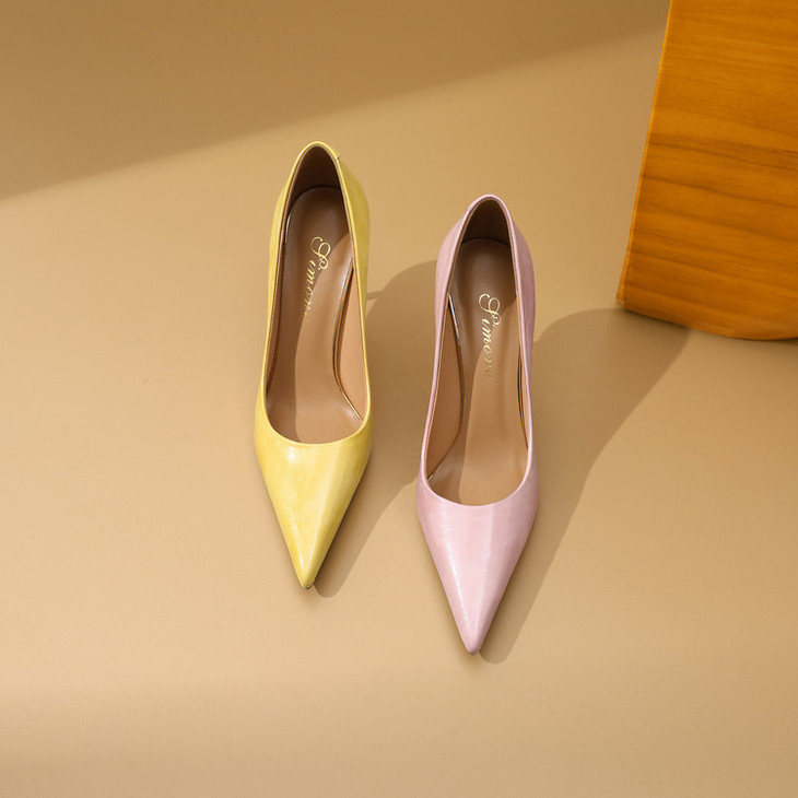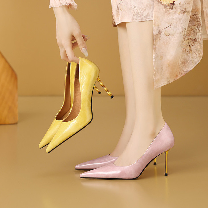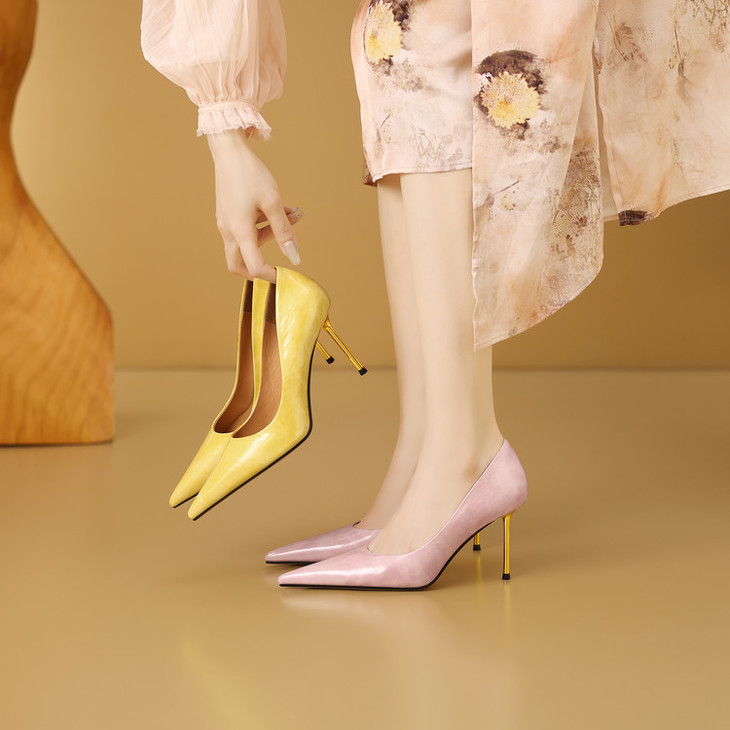 【预售7天】法式真皮尖头细跟高跟鞋女春秋新款性感职场黄色浅口单鞋时装女鞋CX&CX081-1