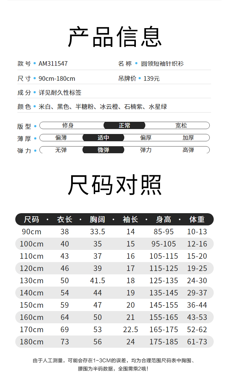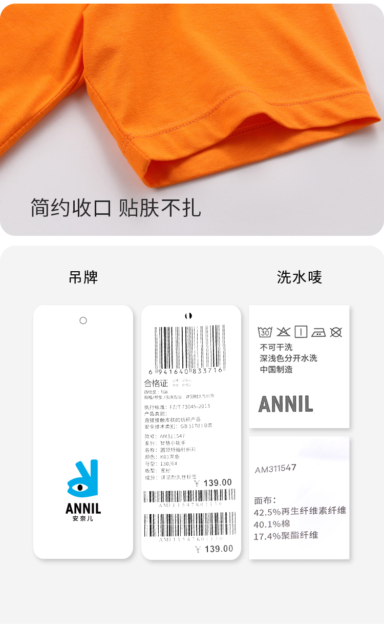 【清仓】【实体店同款】男女童圆领短袖T恤夏新款亲子装透气安奈儿童装AM311547