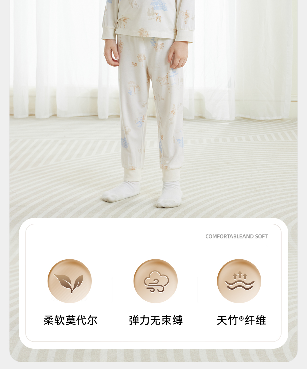 【商场同款】英氏儿童睡衣夏季透气竹纤维家居服套装男女新款
