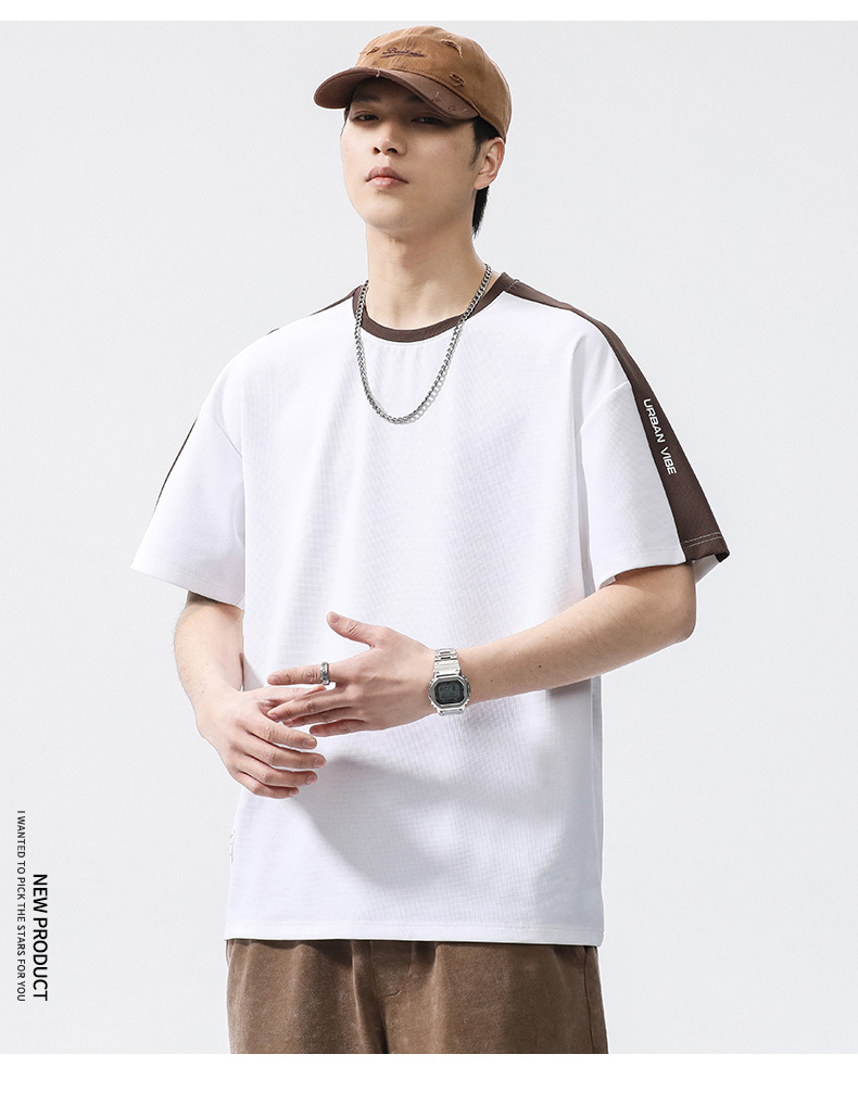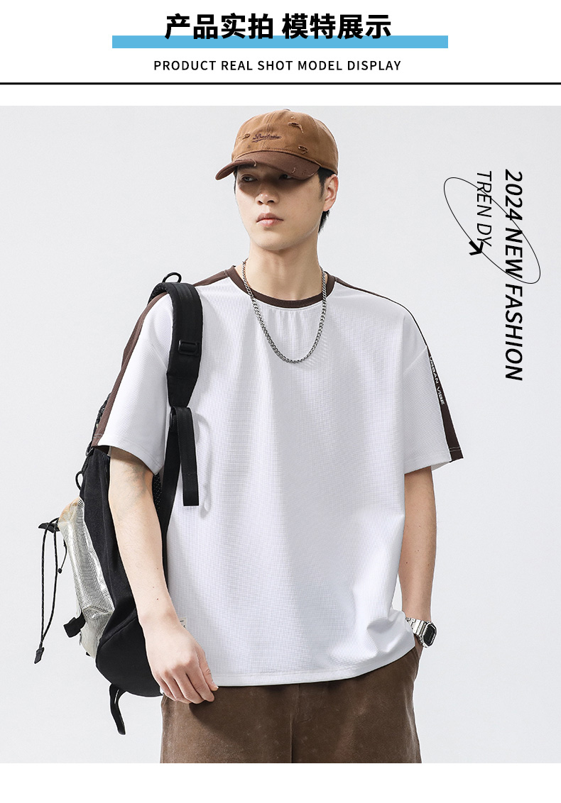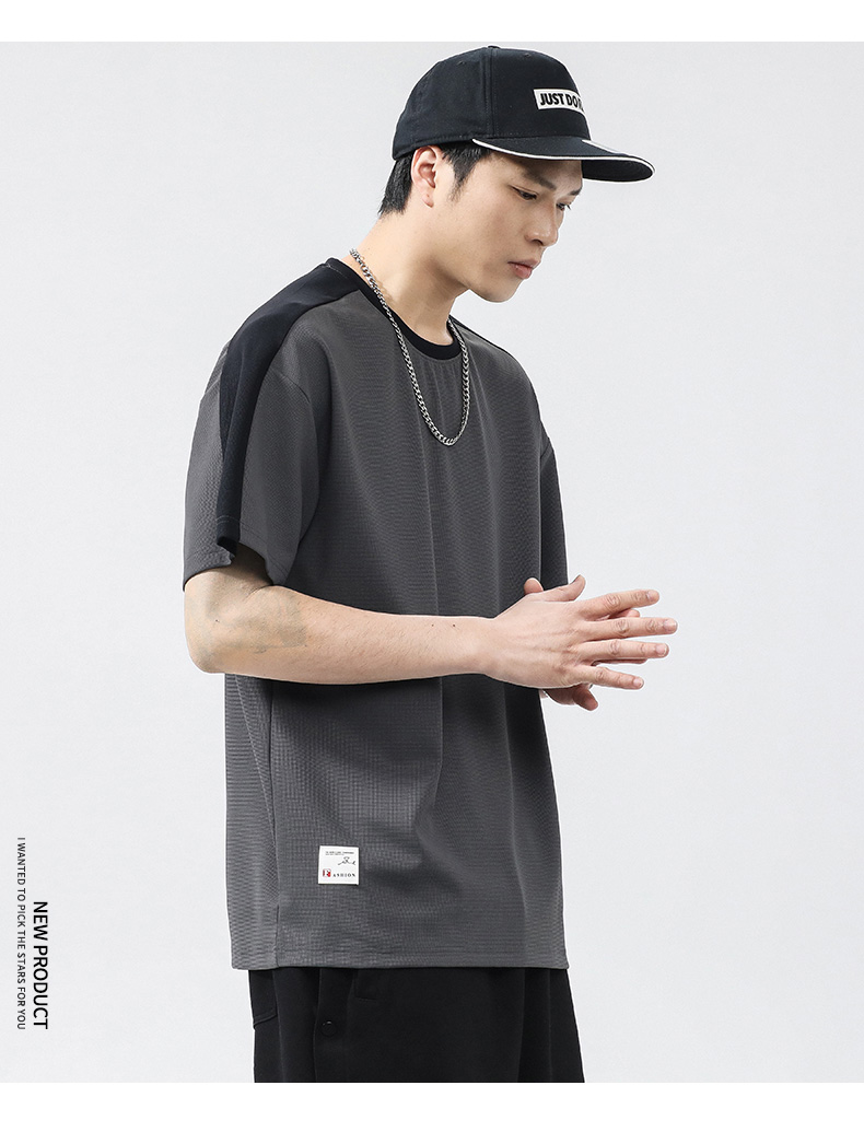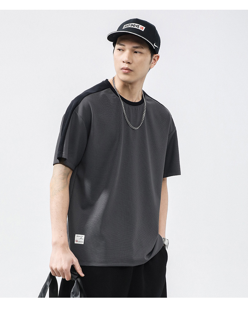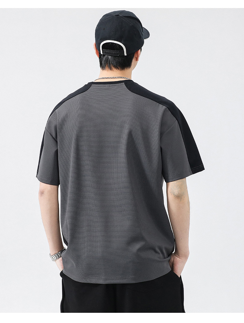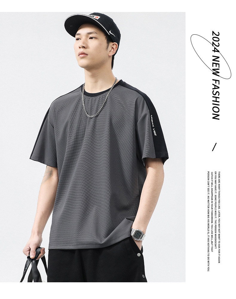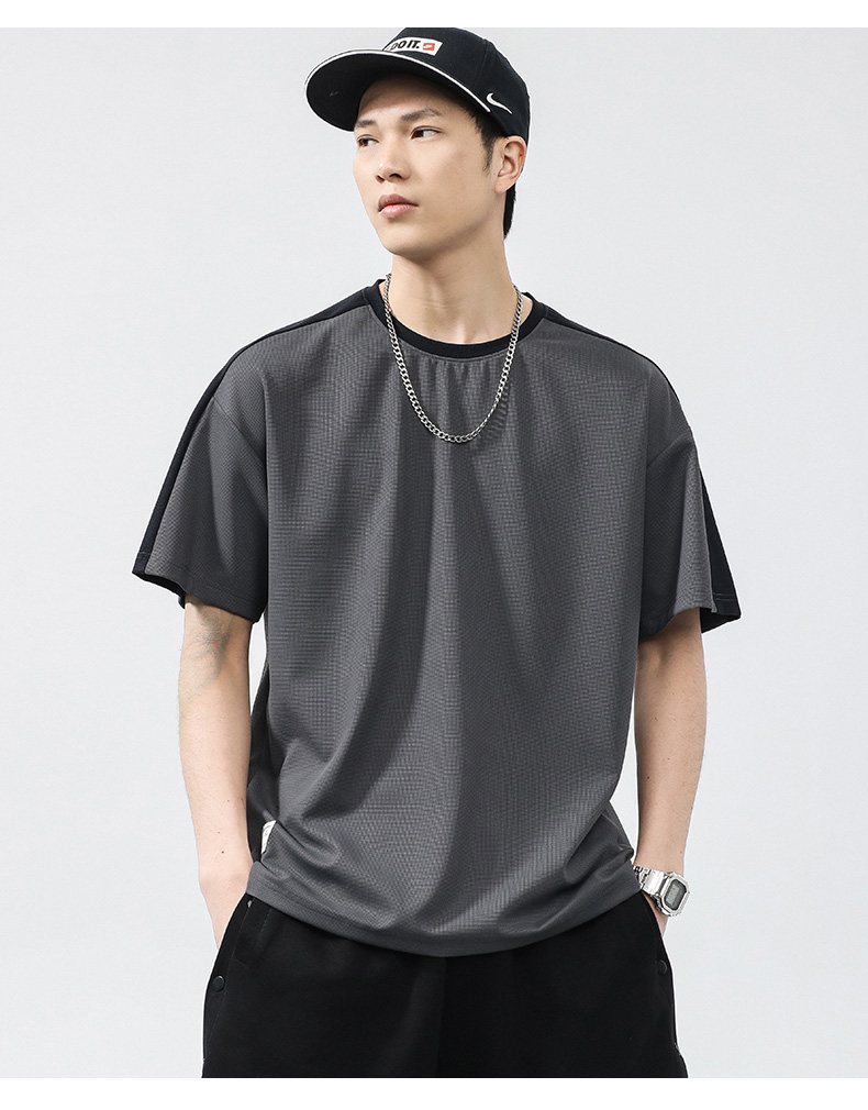 【一口价】【冰丝高弹】【新款DQ】大依优型大码短袖T恤圆领拼接加肥加大男士大号弹力透气舒适半袖夏装潮款