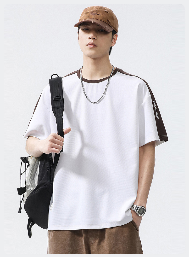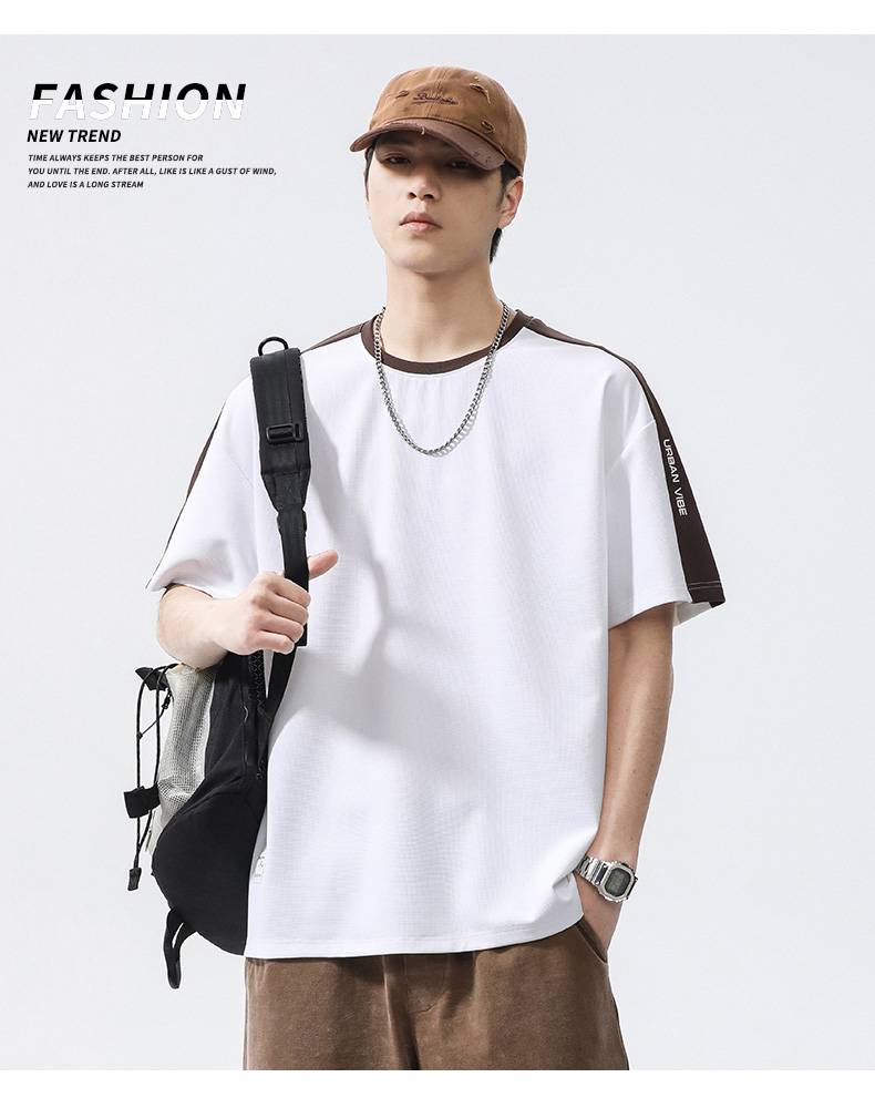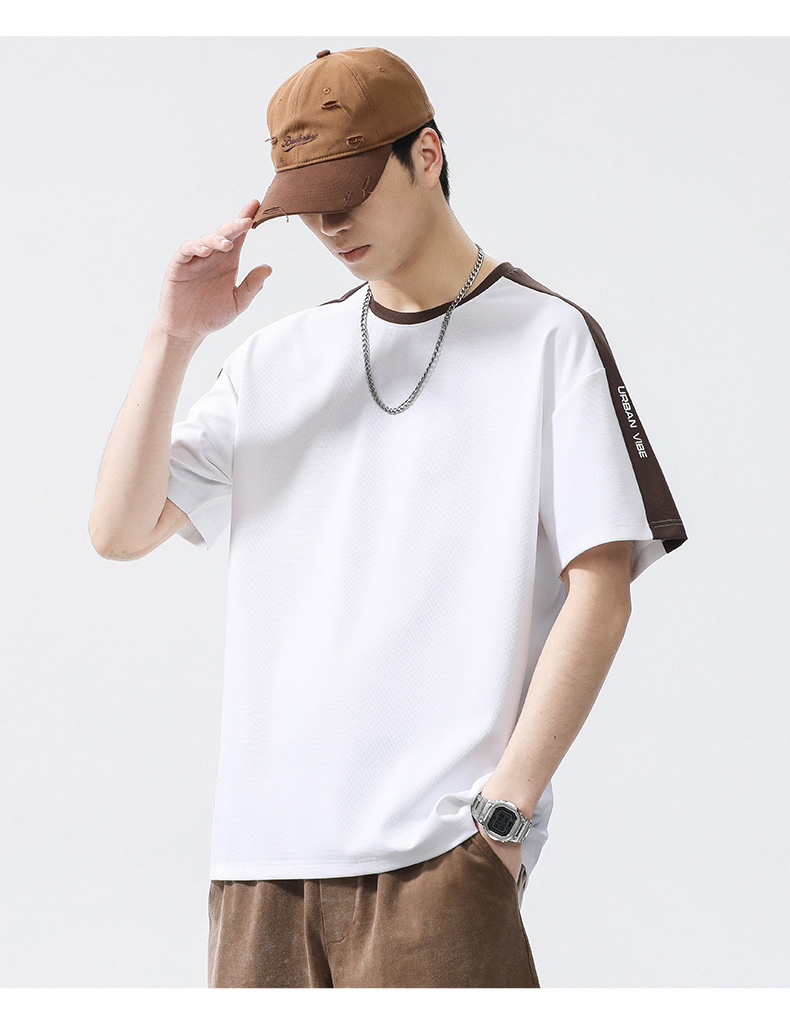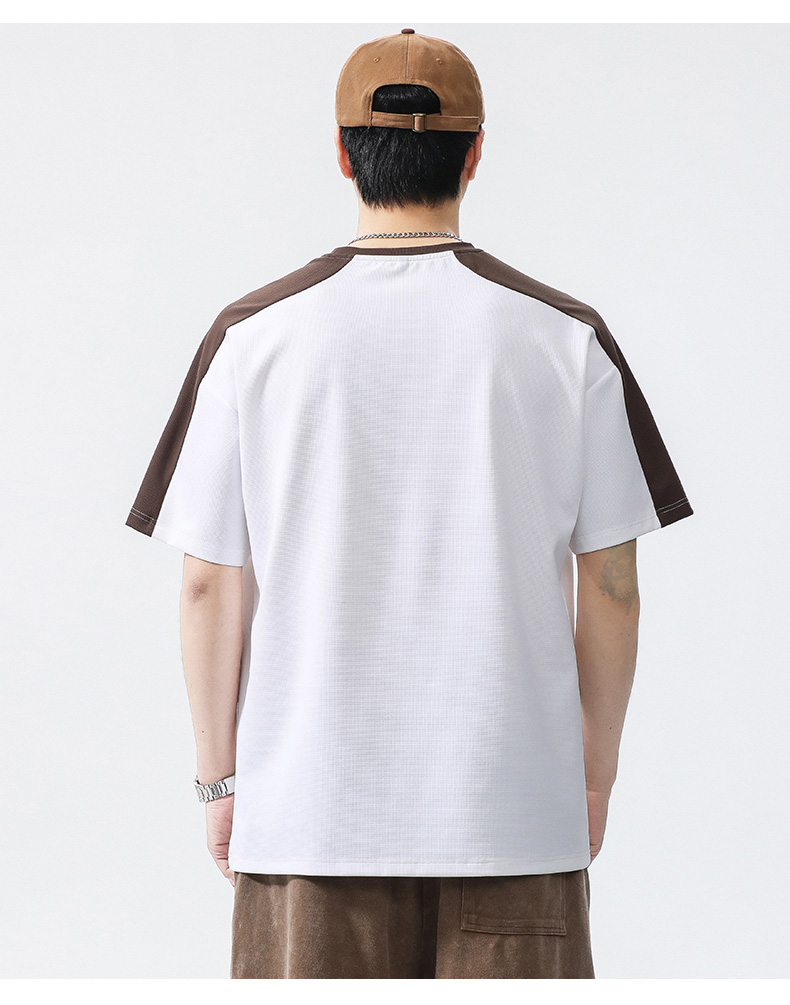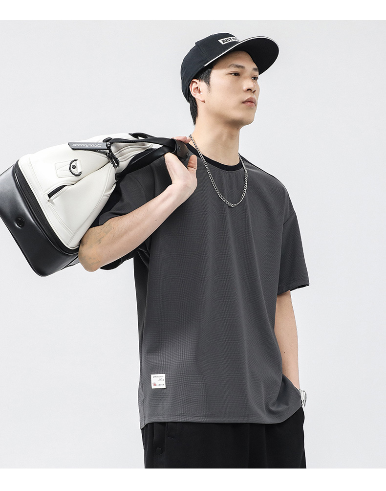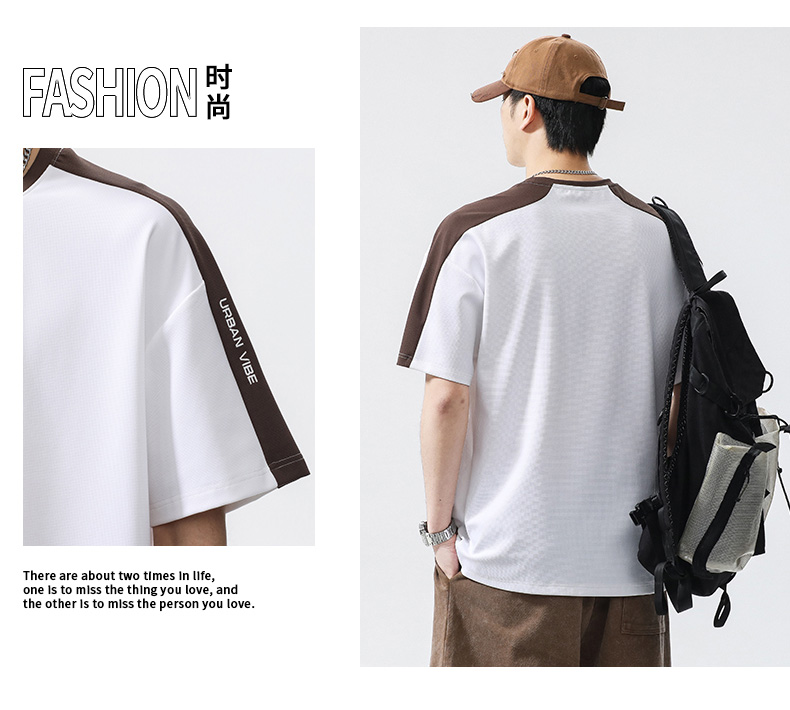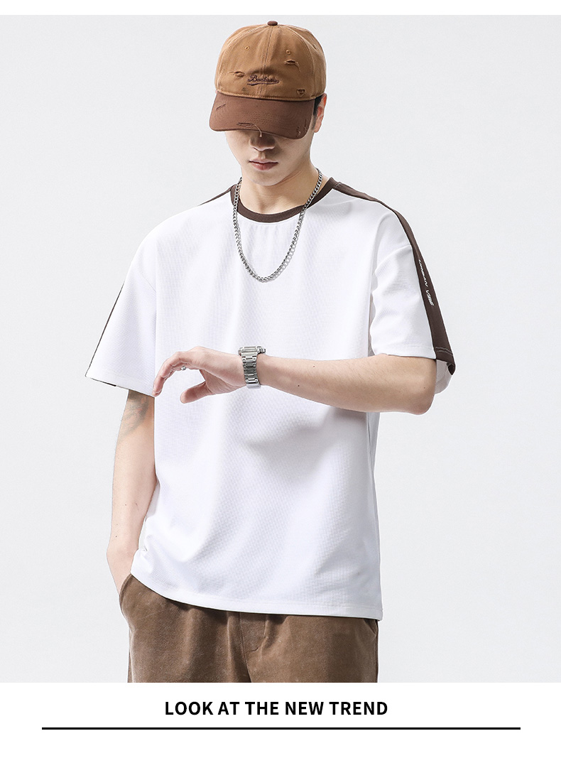 【一口价】【冰丝高弹】【新款DQ】大依优型大码短袖T恤圆领拼接加肥加大男士大号弹力透气舒适半袖夏装潮款