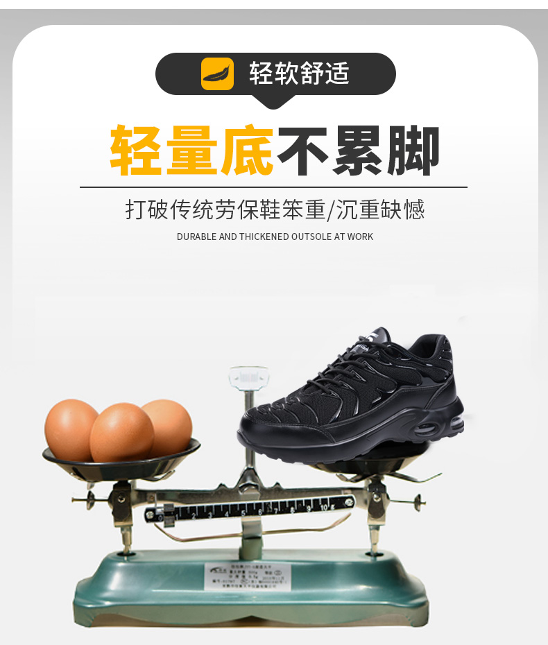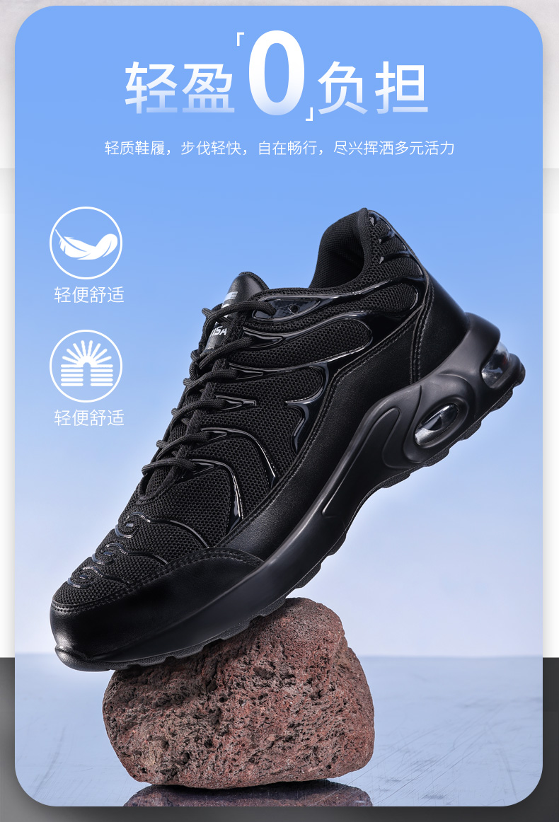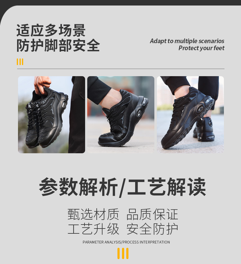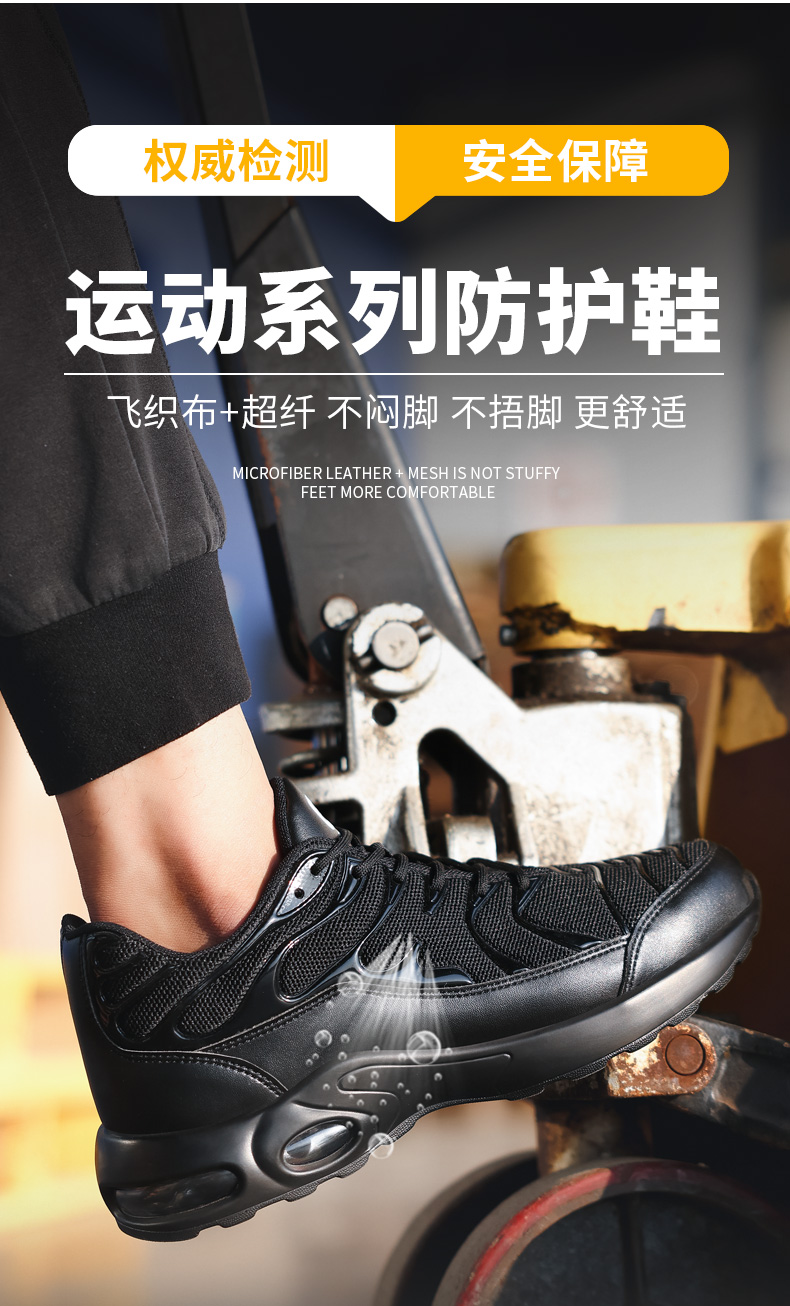 新品四季款轻便透气劳保鞋欧标钢头防砸防刺穿PU气垫款舒适轻底