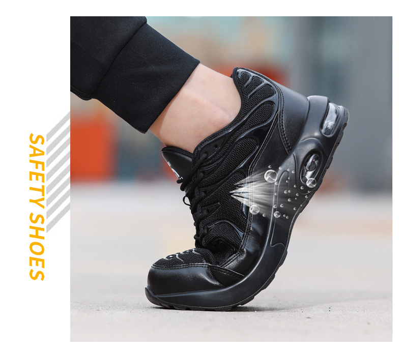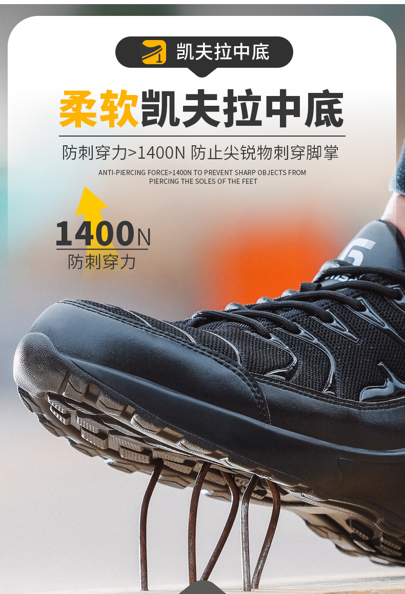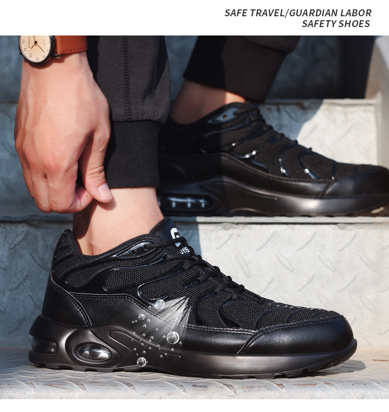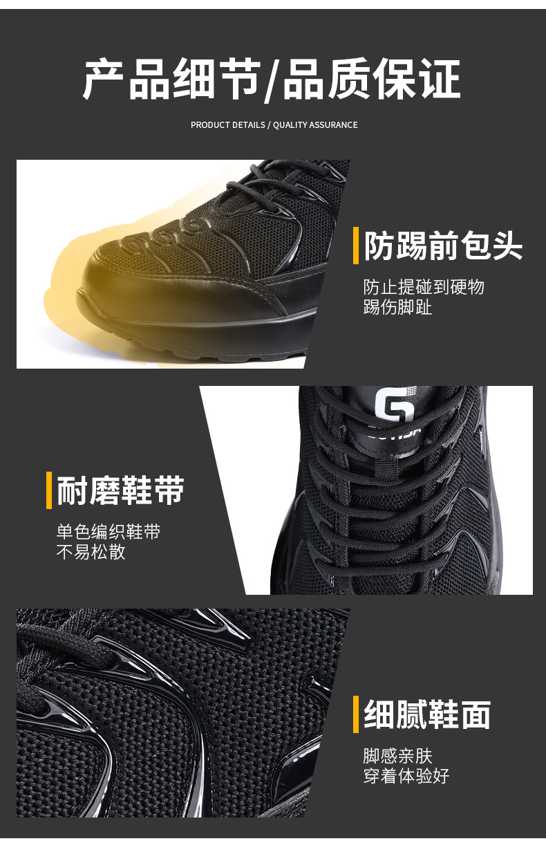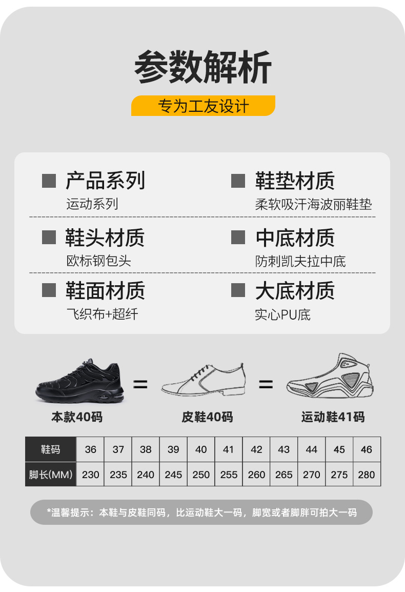 新品四季款轻便透气劳保鞋欧标钢头防砸防刺穿PU气垫款舒适轻底