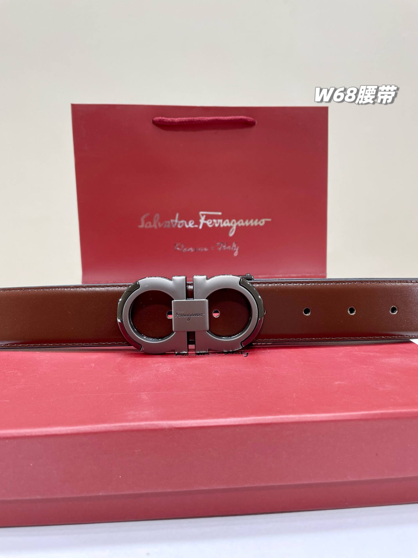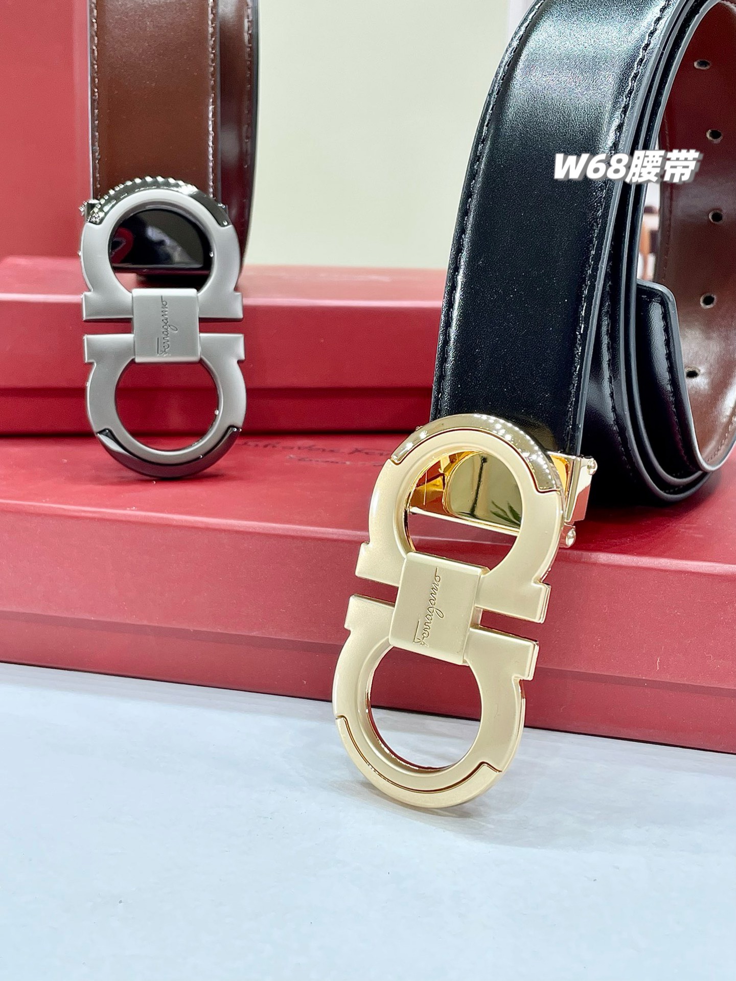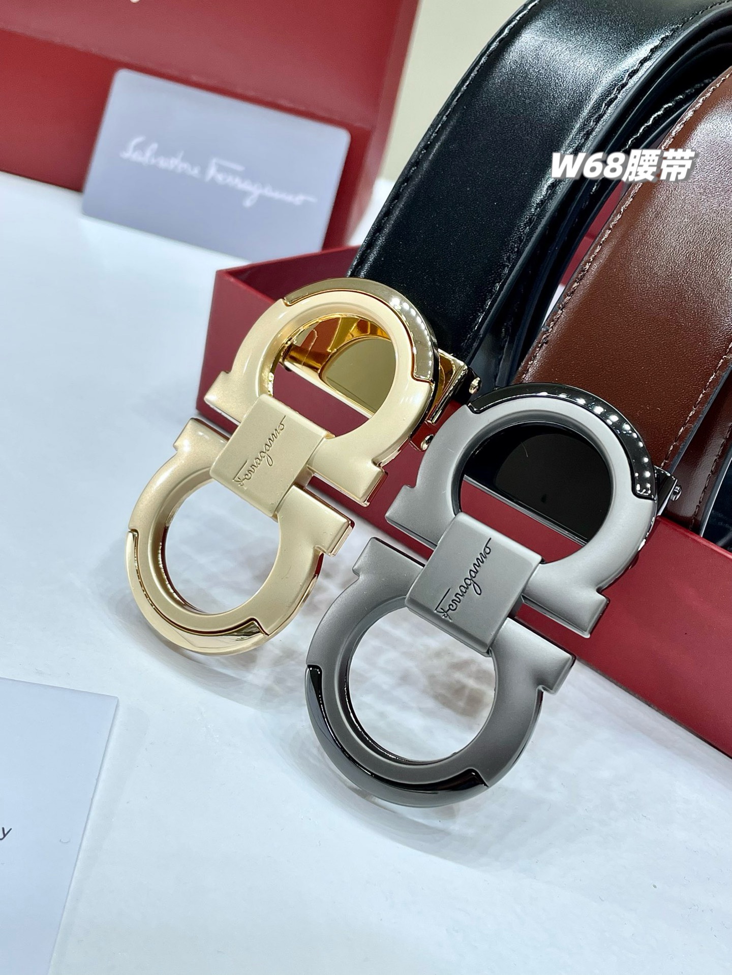 2026春季新款菲拉格慕双头腰带男士腰带,大家可以看一下这个腰带的品质..也不用吹牛皮...必入的菲拉格慕男士最新款腰带,头层牛皮,双面可用,手感质感绝对完美!!!双面可用皮带,一面棕色一面纯黑,一盒一根皮带➕2个扣头。金色、枪色两个头,随意搭配,均码长度120cm,可裁剪...腰带宽度 3.5cm...超级完美...送人绝对利器...疯狂好腰带..每个细节 做工 手感都恰到好处....达到量身定制般的修身效果。全套包装,质感超群!!!再来细节,大图直接呈现!!n年过去,依然屹立不倒的菲拉格慕8字扣!扣头感觉低调奢华,这才是真正的菲拉格慕。腰带头的寓意很好,8象征着发,代表腰缠万贯,所以不管你是商务精英还是生意达人,这个是不二选择。男人必入的爆款腰带…男士必入的象征,绝对给力完美!!!