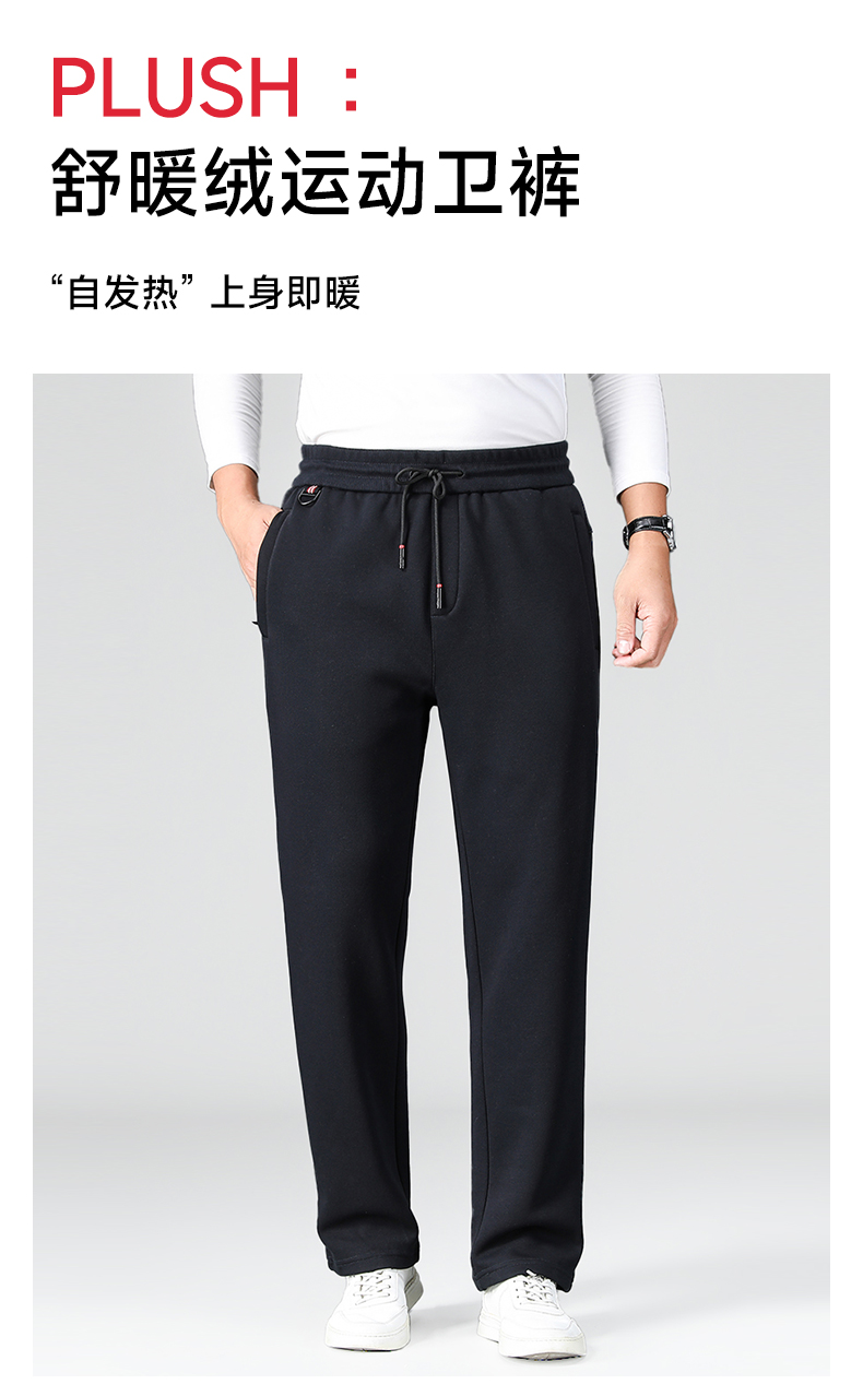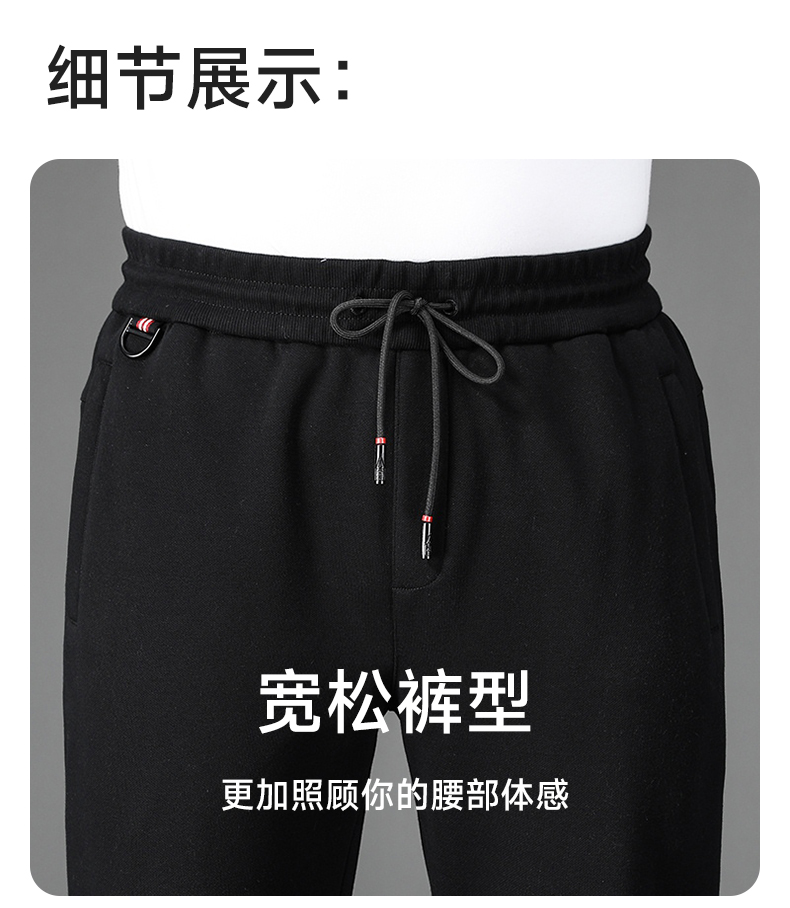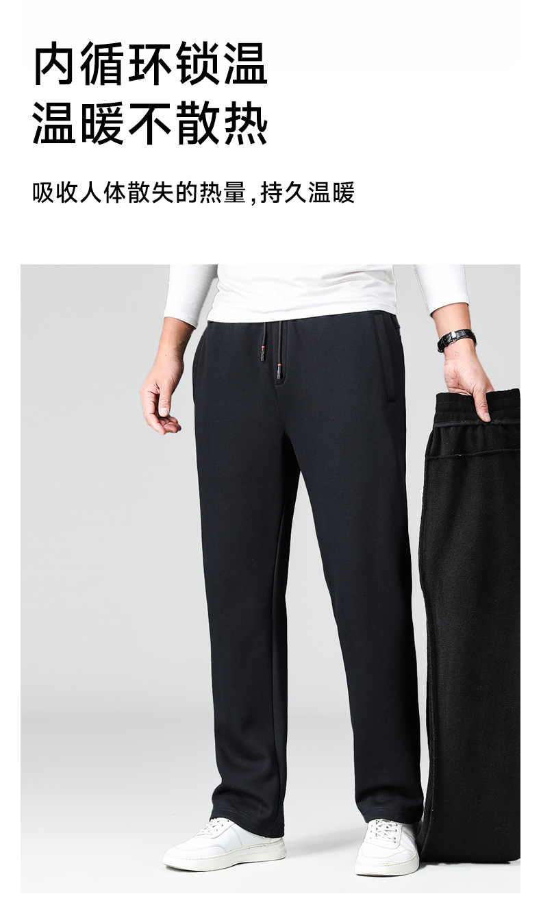 【新款DZP】大依优型大码加绒休闲裤松紧腰直口束口加肥加大宽松舒适运动裤男装加绒裤子长裤